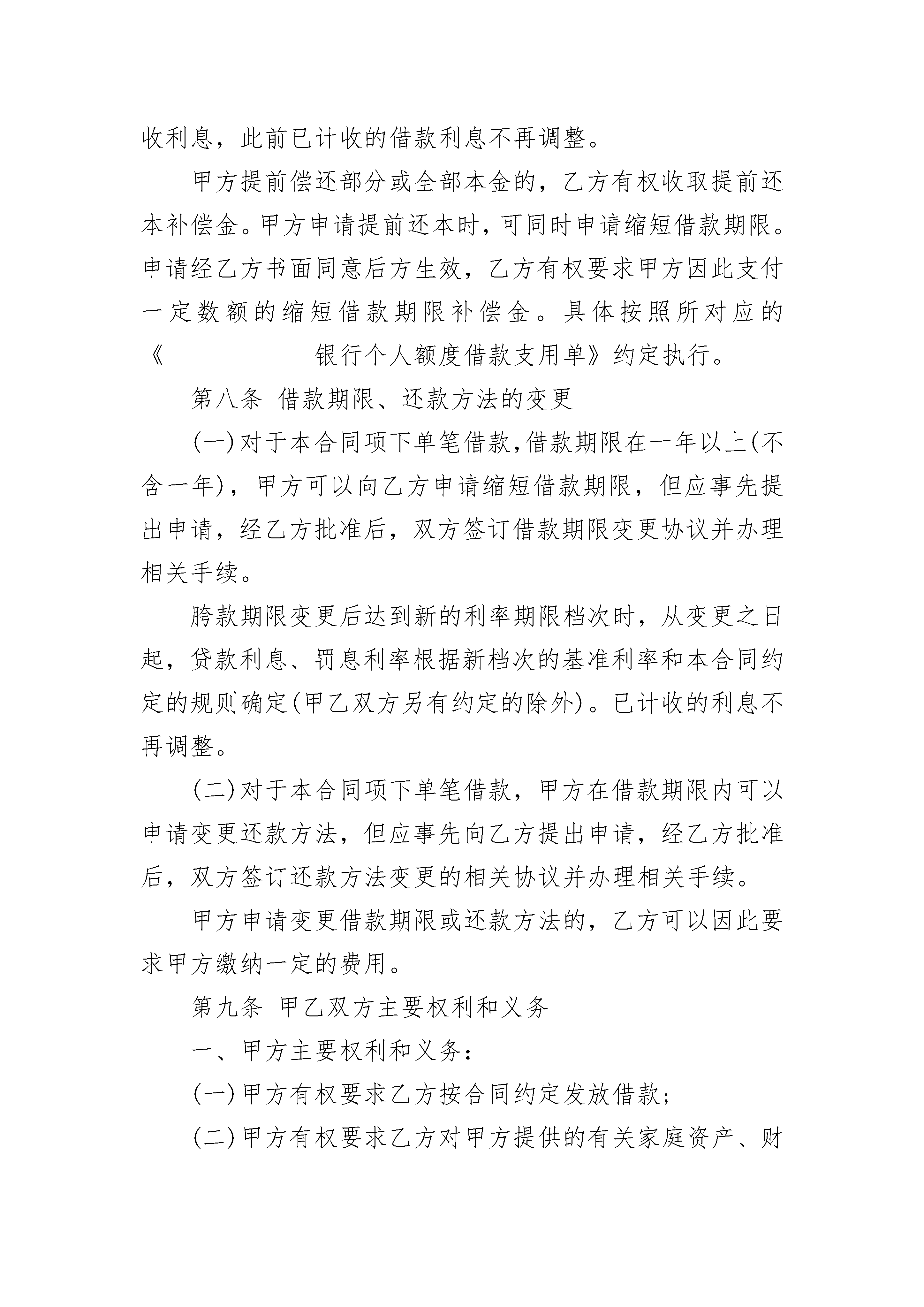 最高额度借款合同_个人额度借款合同--最高额度借款合同_个人额度借款合同贷款人借款人抵押人经贷款人、借款人和抵押人充分协商,根据国家法律法规规定,签订如下最高额抵押借款合同:第一条贷款人同意向借款人发放如下内容的借款:1、借款种类:2、借款用途:3、借款期间:年月日至年月日。4、借款最高余额:人民币元(大写)。5、利率为月息‰。6、还款方式:按月偿还利息;单笔借款到期,清息还本。第二条借款人的义务:1、向贷款人提供真实的借款申请资料;2、按照合同约定及时足额偿还借款本息;3、按照合同约定的借款用途使用借款