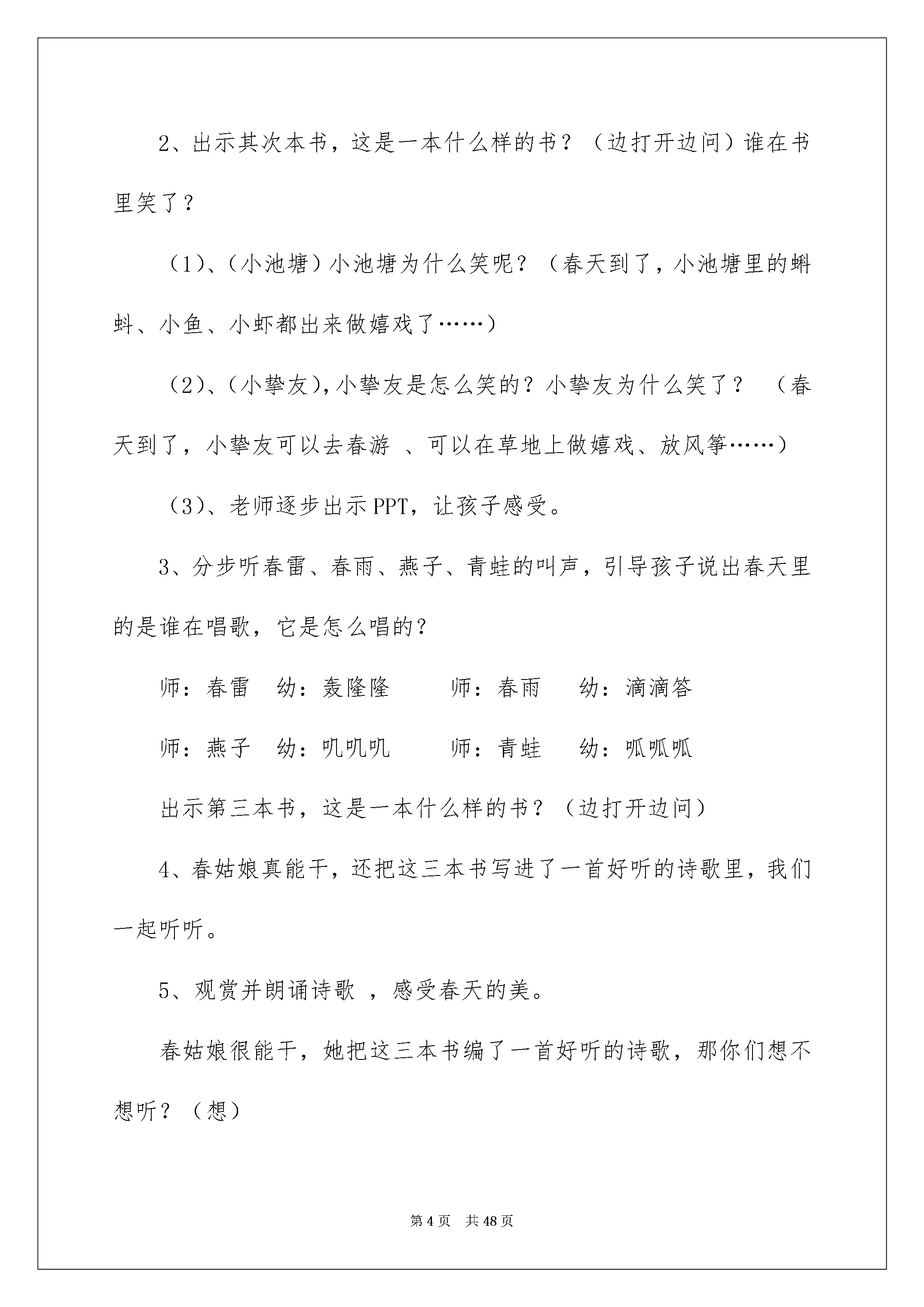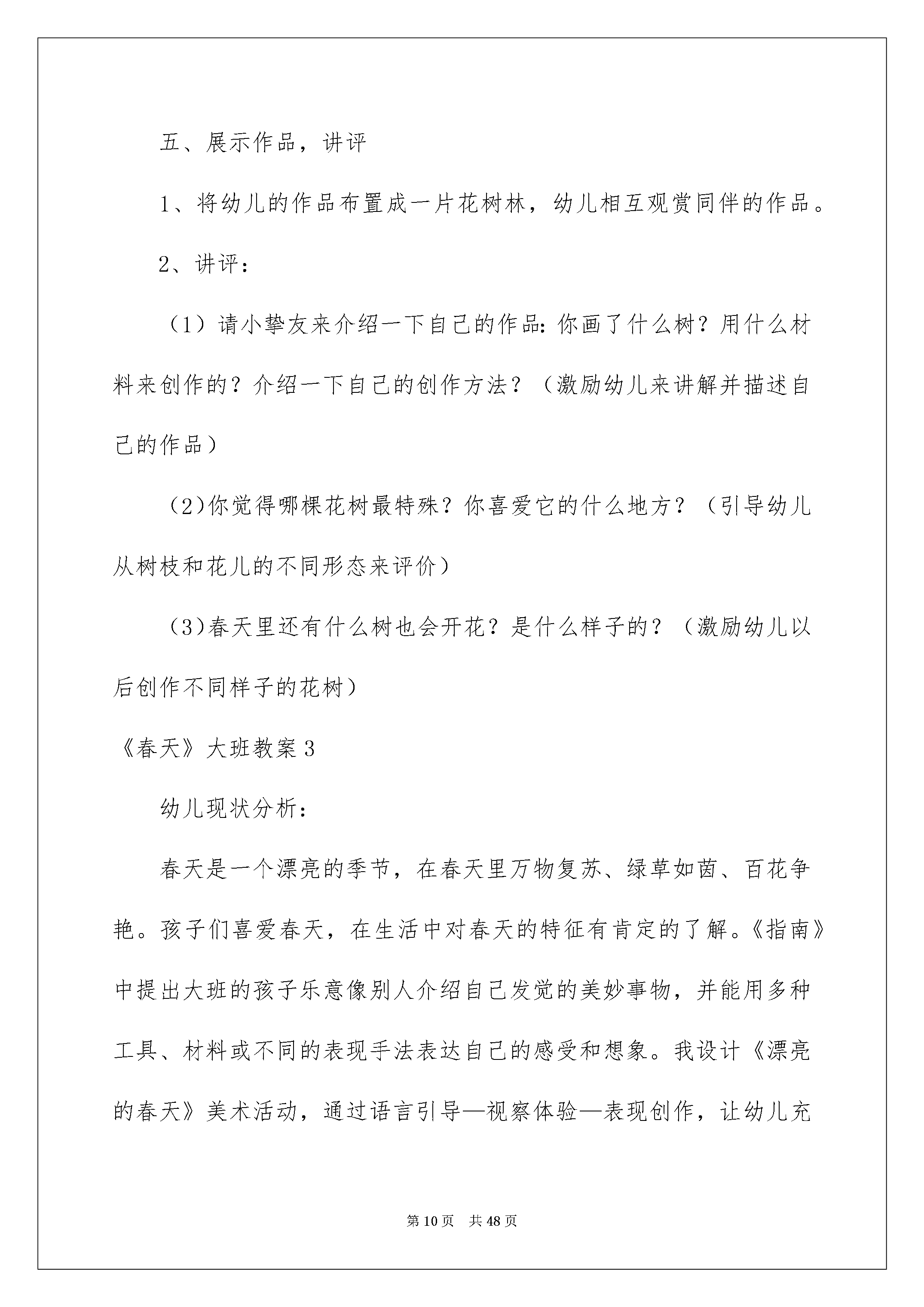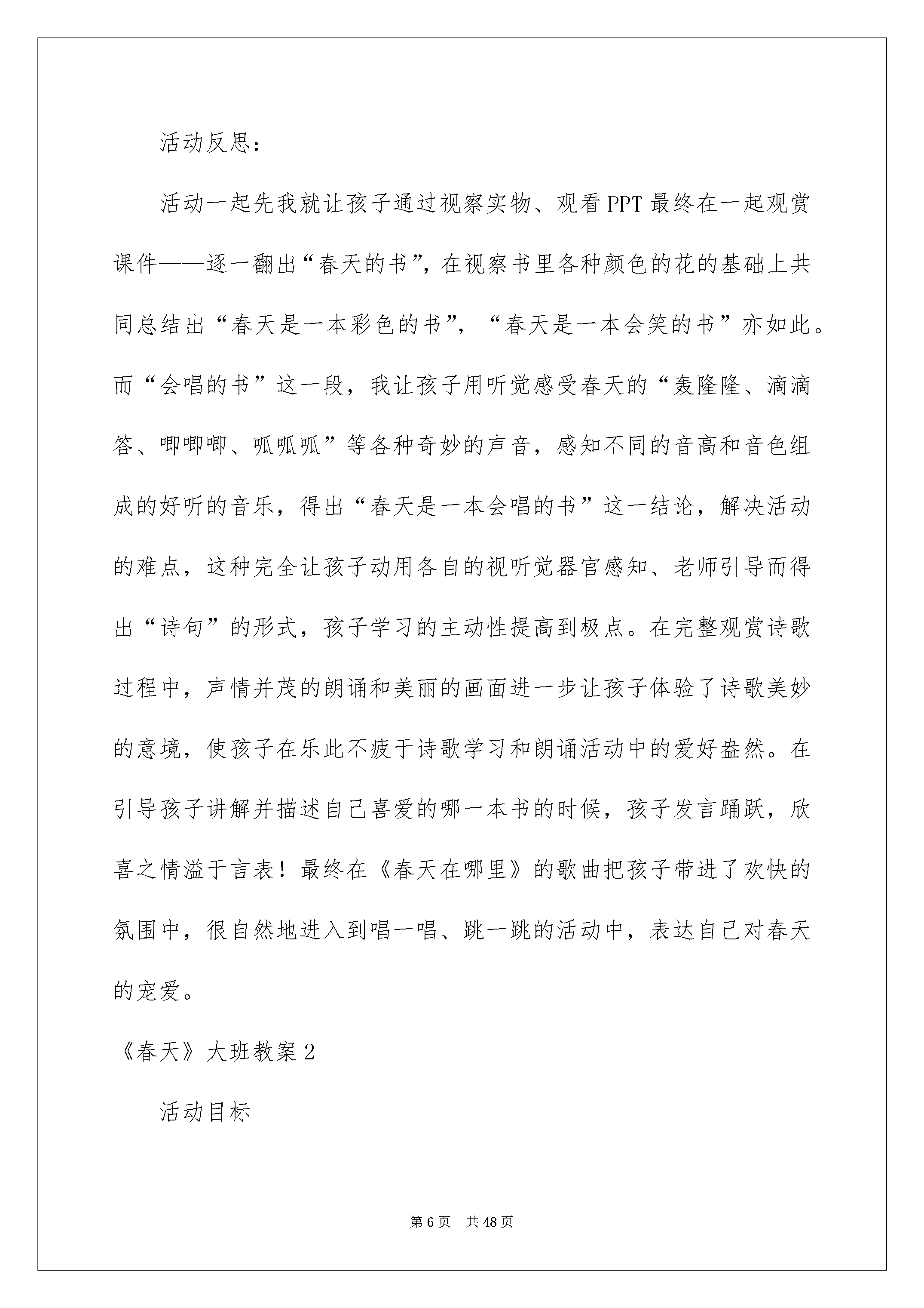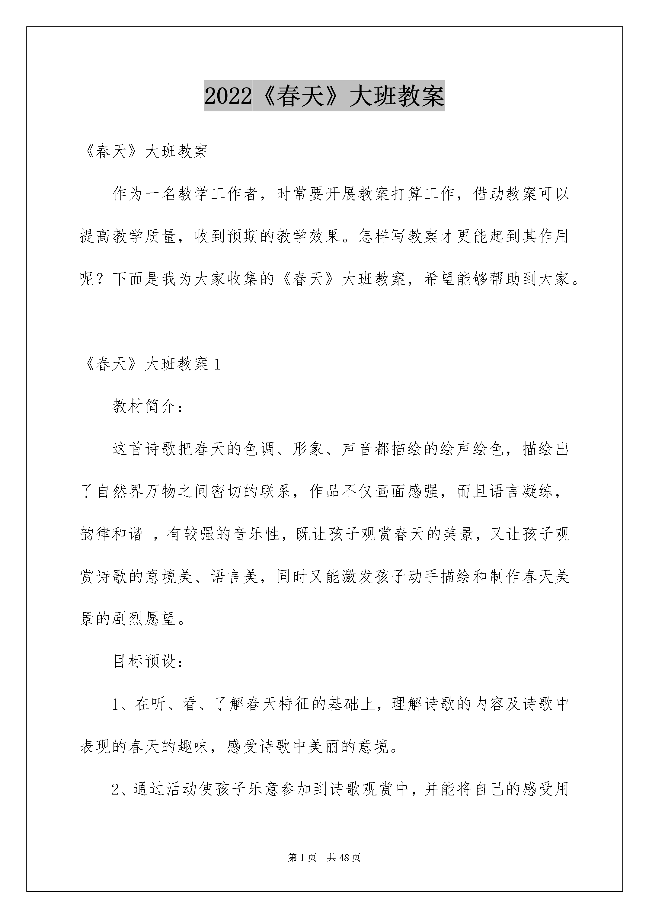 2022《春天》大班教案《春天》大班教案作为一名教学工作者时常要开展教案打算工作借助教案可以提高教学质量收到预期的教学效果。怎样写教案才更能起到其作用呢?下面是我为大家收集的《春天》大班教案希望能够帮助到大家。《春天》大班教案