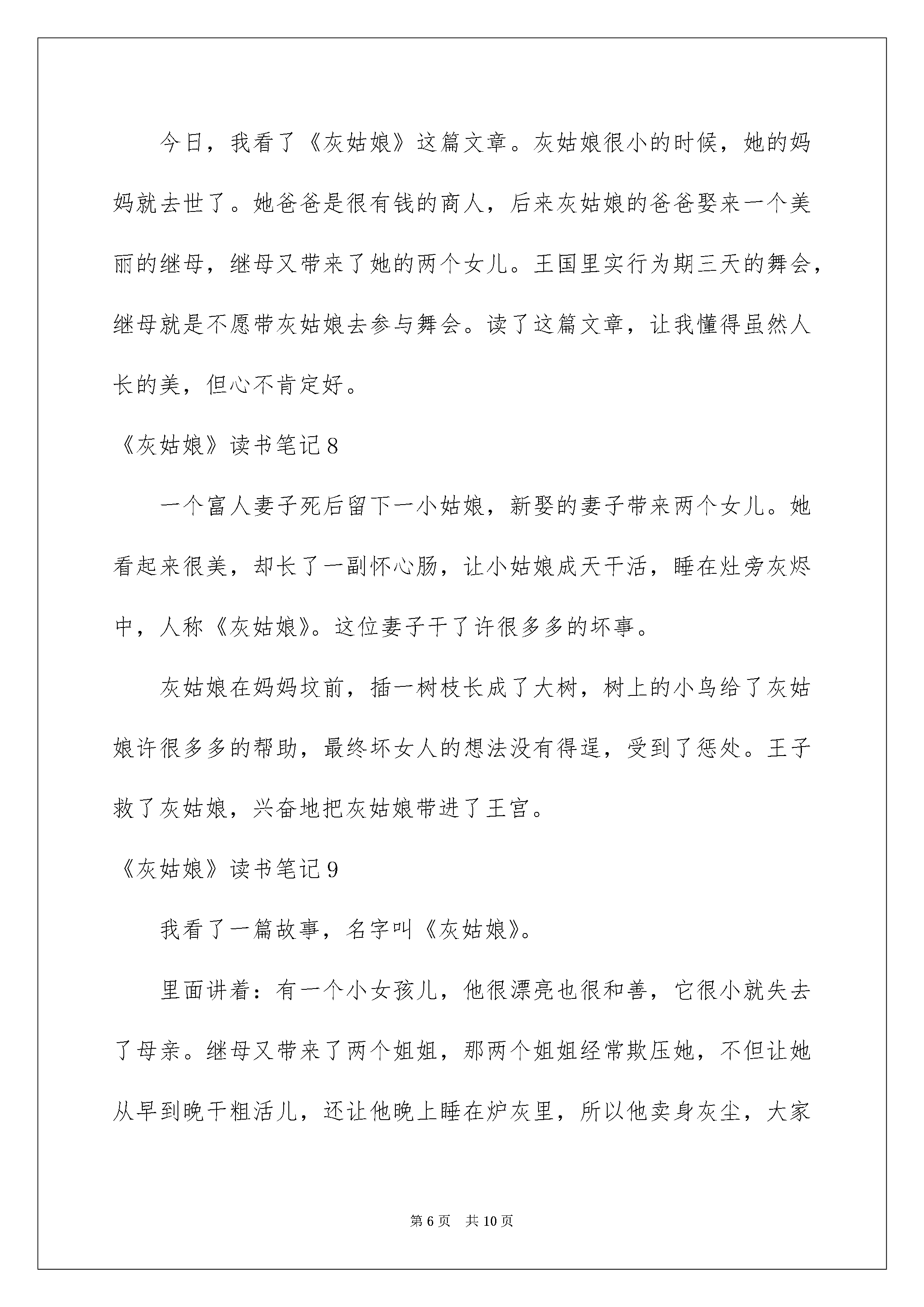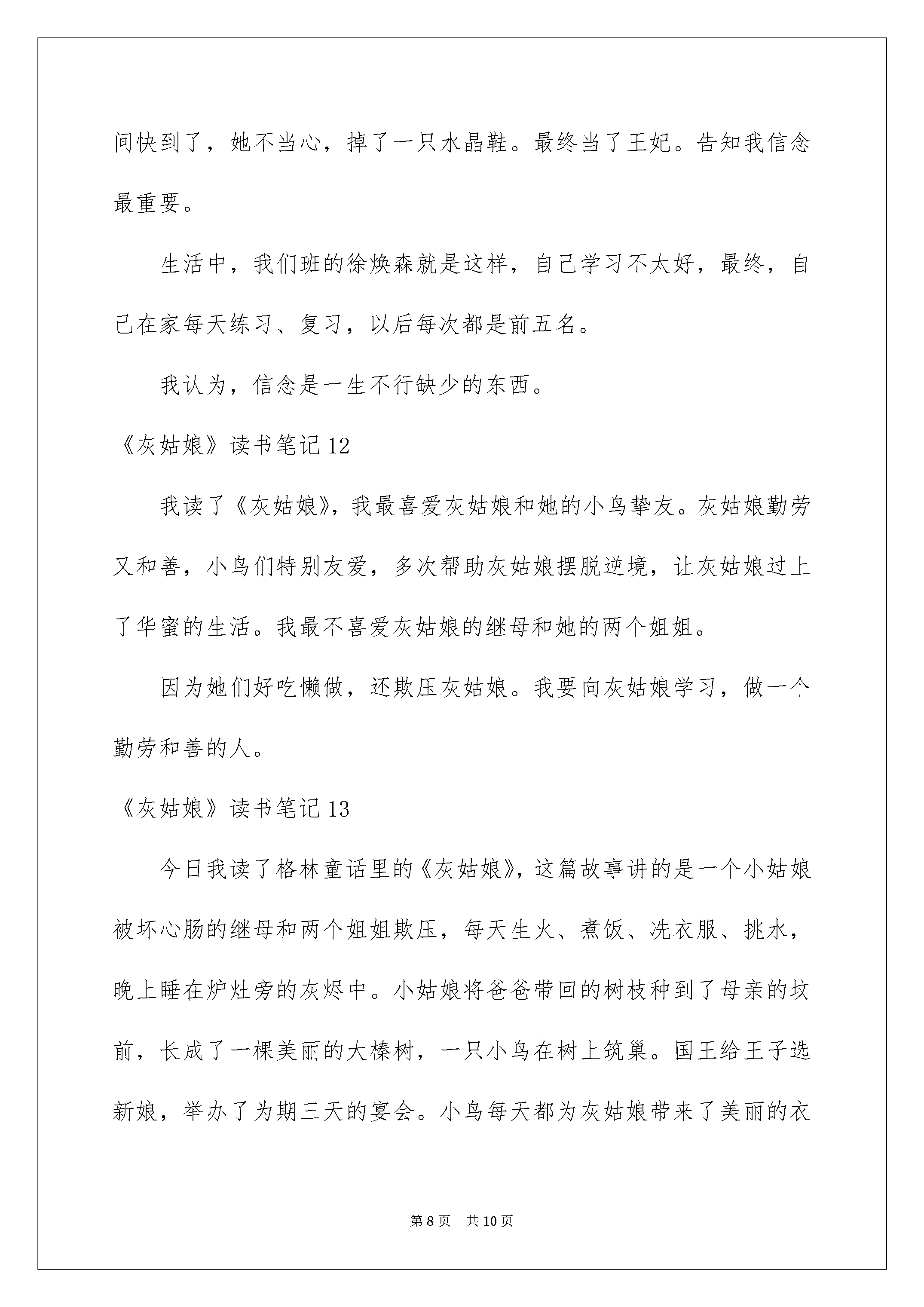 2022《灰姑娘》读书笔记《灰姑娘》读书笔记15篇当品尝完一本著作后,信任大家肯定领悟了不少东西,此时须要仔细思索读书笔记如何写了哦。究竟应如何写读书笔记呢?下面是我整理的《灰姑娘》读书笔记,欢迎阅读,希望大家能够喜爱。《灰姑娘》读书笔记1今日我读了一篇童话,名字叫《灰姑娘》。《灰姑娘》一文中主要讲解并描述了一个漂亮、和善的小姑娘,因为爱她的母亲去