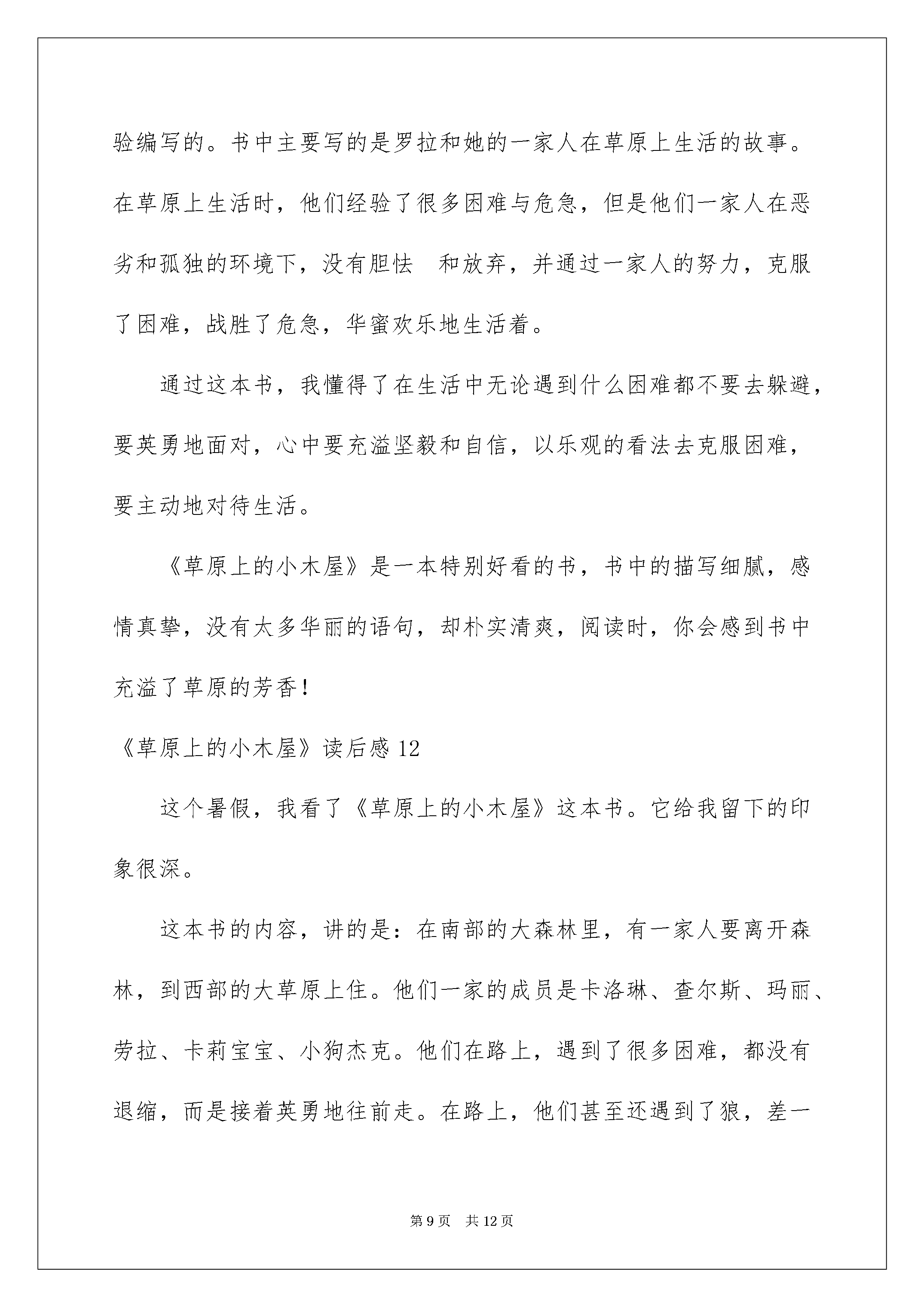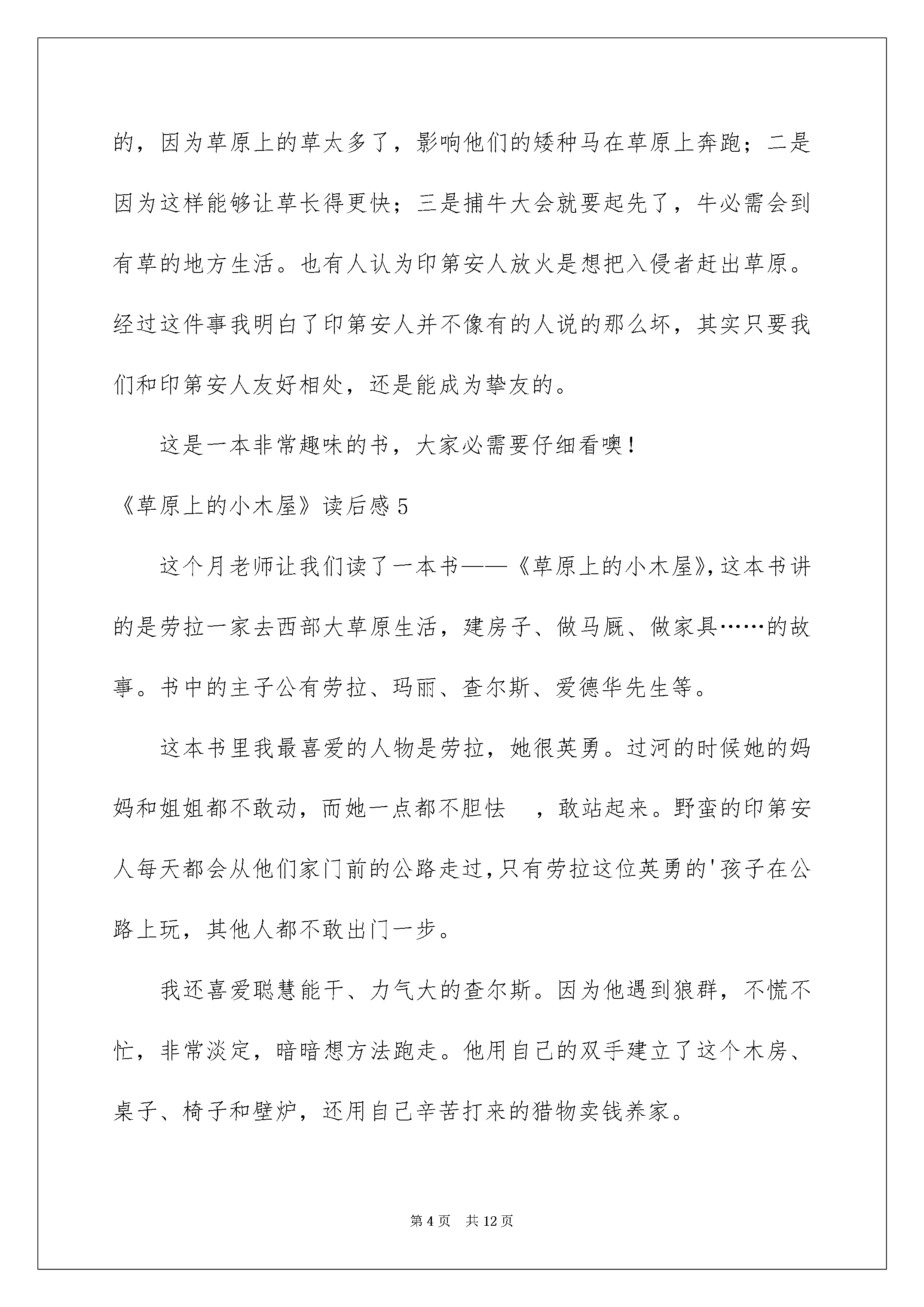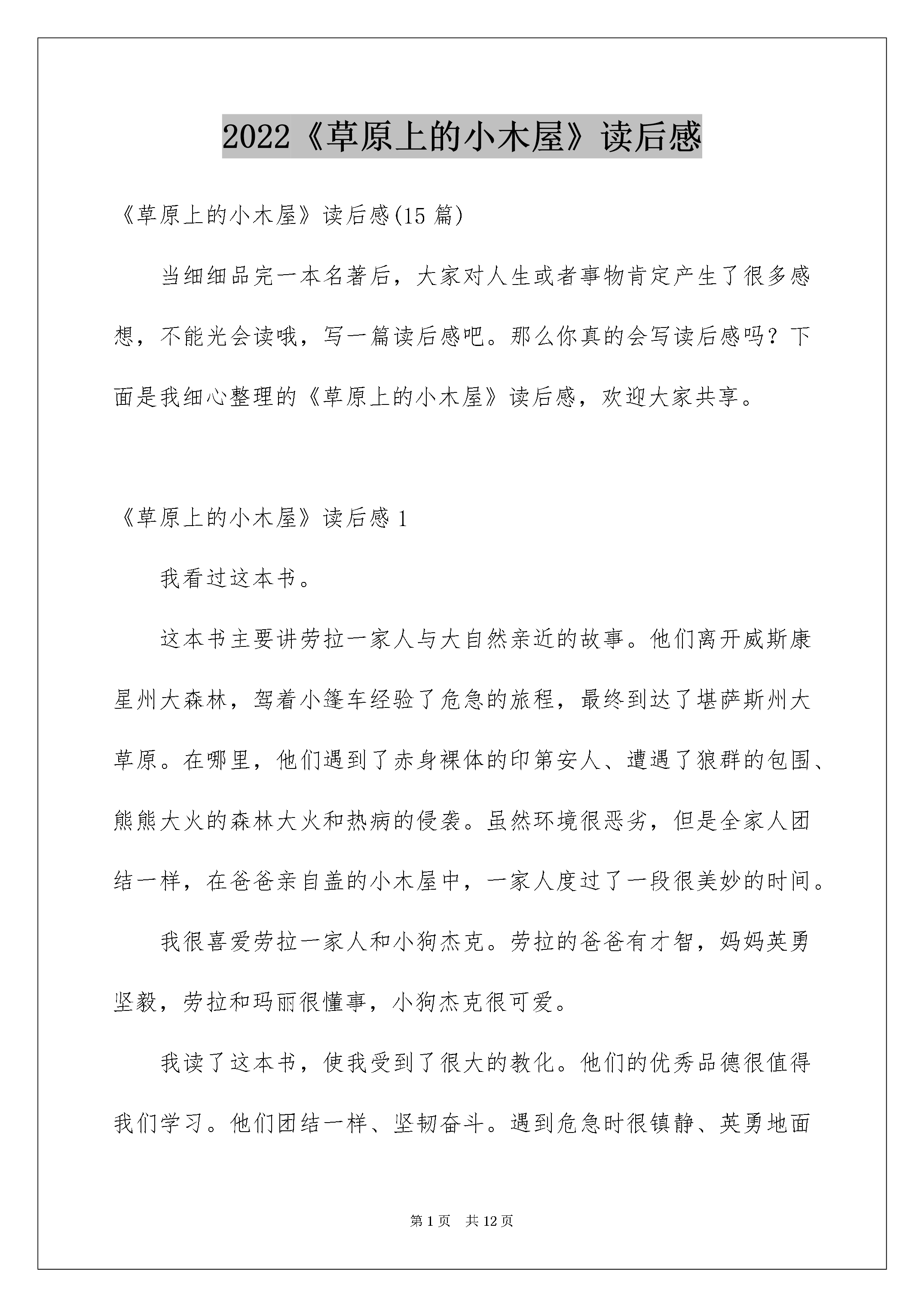 2022《草原上的小木屋》读后感《草原上的小木屋》读后感(15篇)当细细品完一本名著后大家对人生或者事物肯定产生了很多感想不能光会读哦写一篇读后感吧。那么你真的会写读后感吗?下面是我细心整理的《草原上的小木屋》读后感欢迎大家共