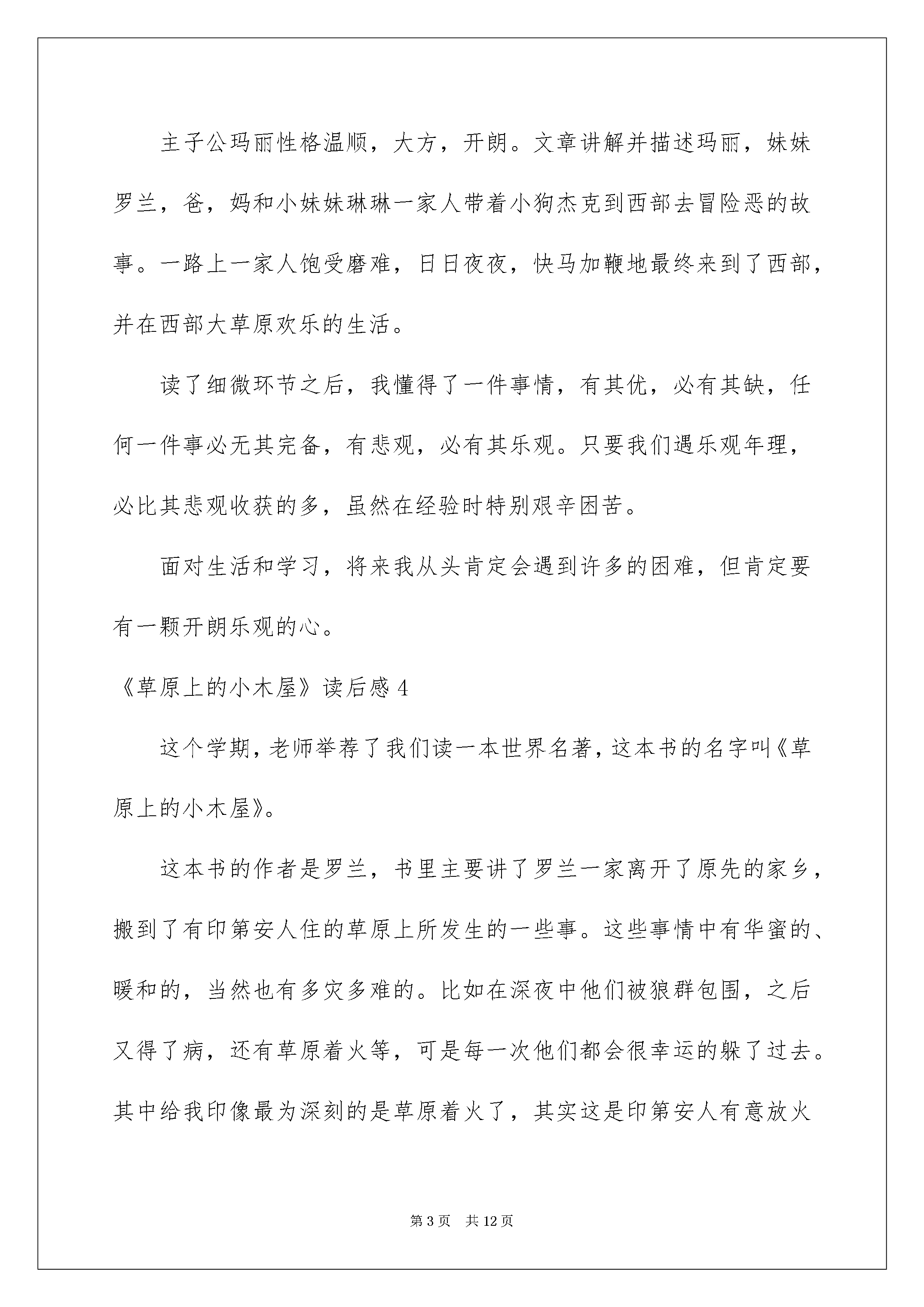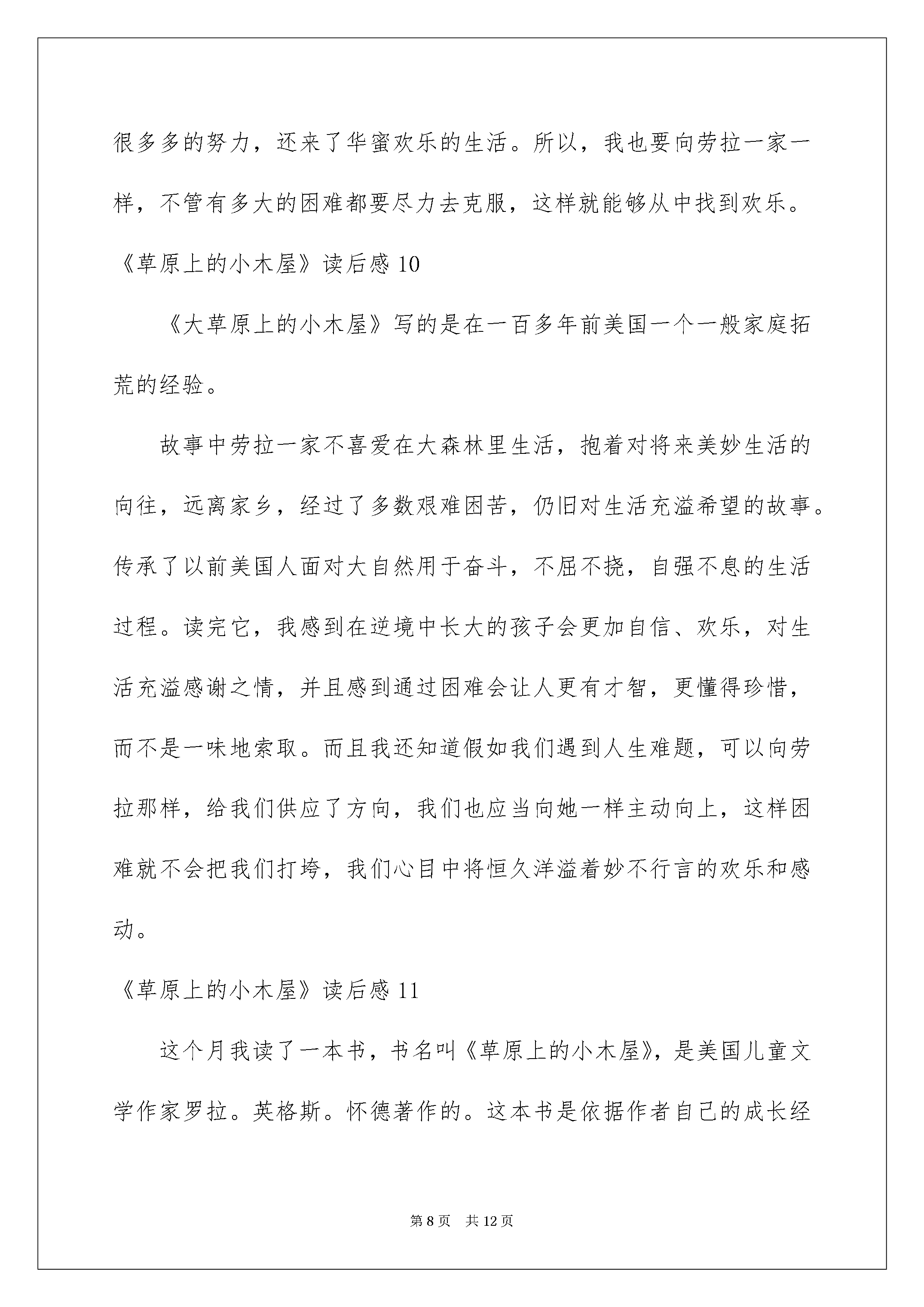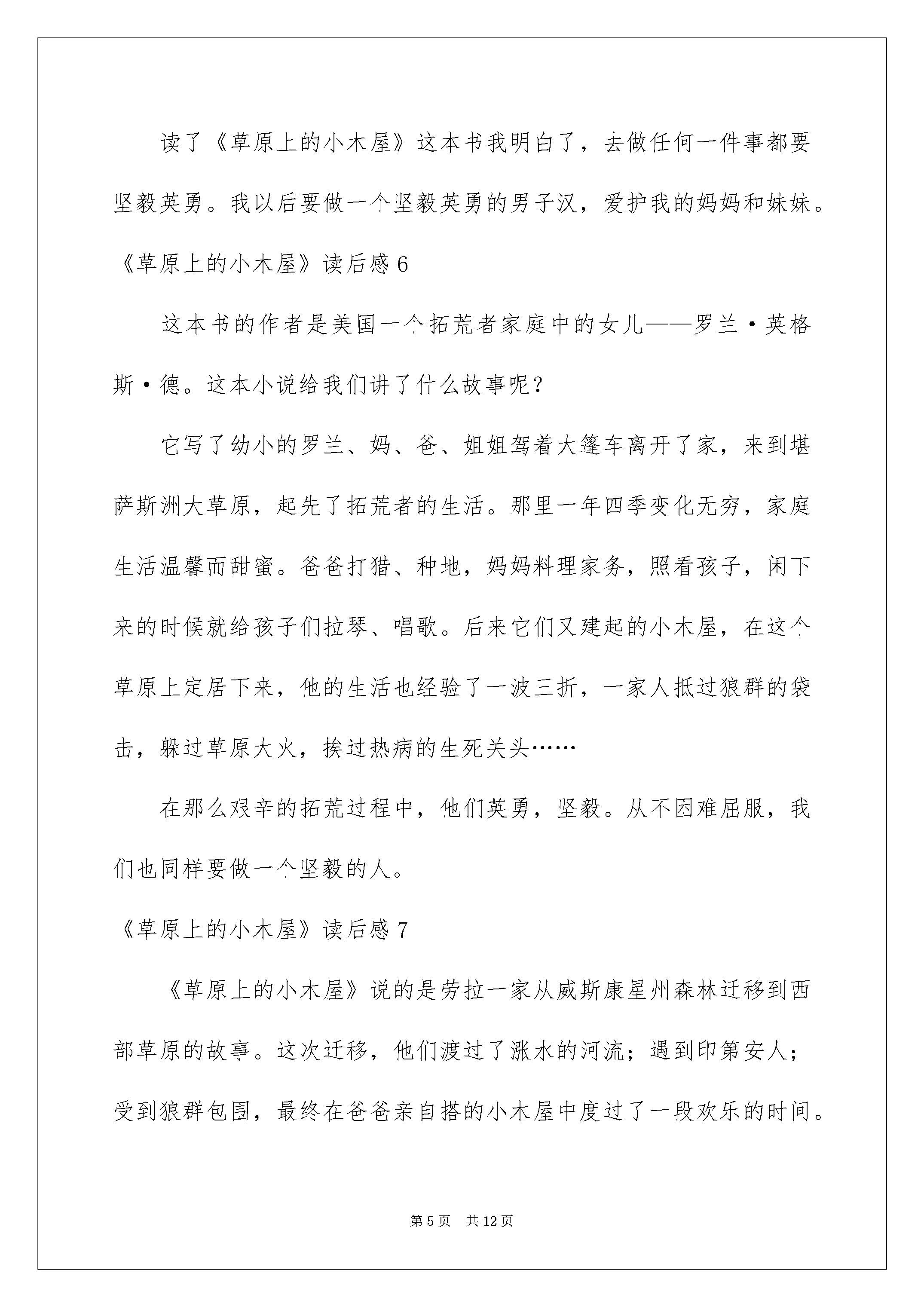 2022《草原上的小木屋》读后感《草原上的小木屋》读后感(15篇)当细细品完一本名著后大家对人生或者事物肯定产生了很多感想不能光会读哦写一篇读后感吧。那么你真的会写读后感吗?下面是我细心整理的《草原上的小木屋》读后感欢迎大家共