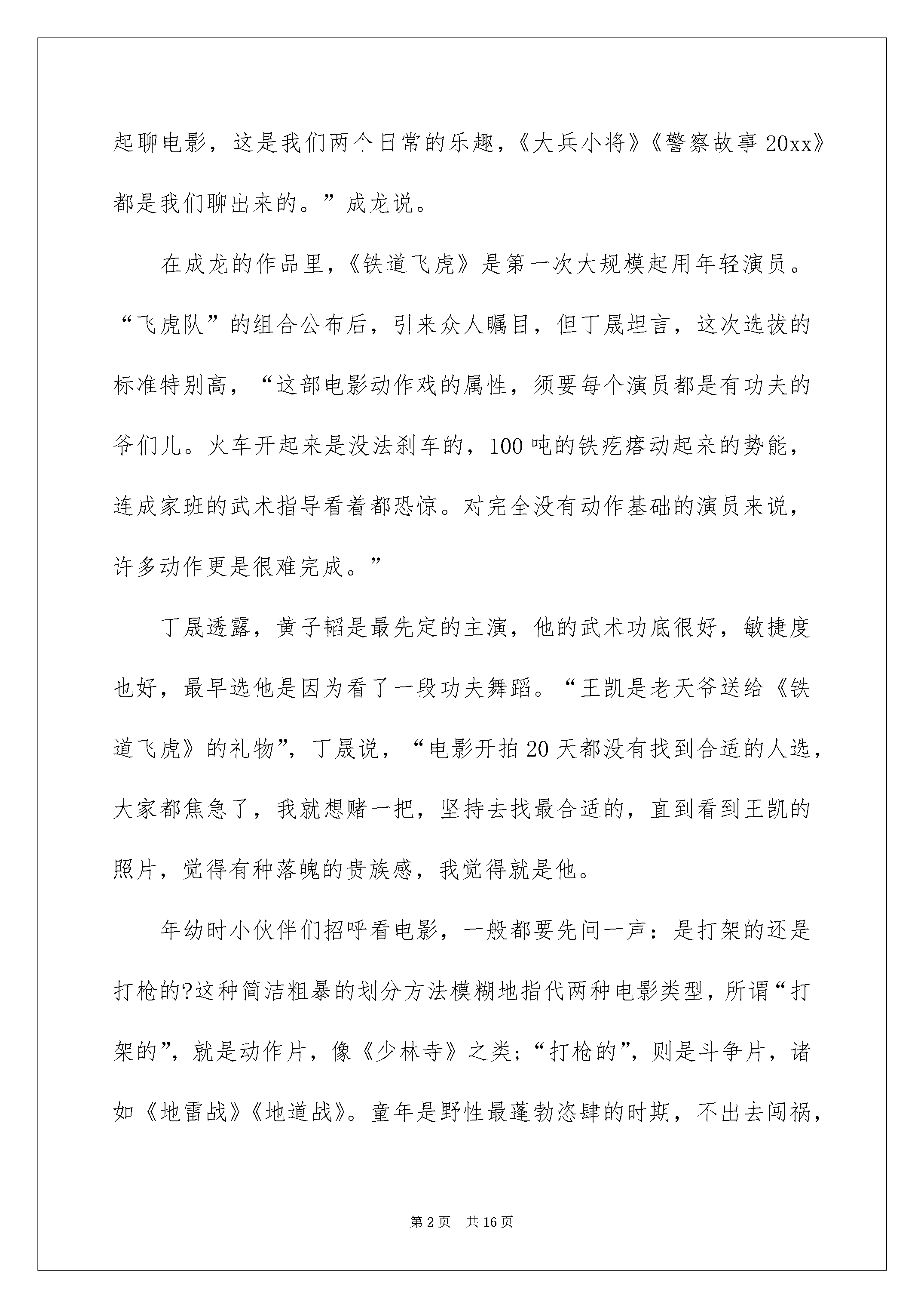2022《铁道飞虎》观后感《铁道飞虎》观后感当看完一部作品后,信任大家的收获确定不少吧,记录下来很重要哦,一起来写一篇观后感吧。在写观后感之前,可以先参考范文,以下是我为大家整理的《铁道飞虎》观后感,希望对大家有所帮助。《铁道飞虎》观后感1由丁晟导演,成龙、黄子韬、王凯、王大陆、桑平、吴永伦等主演的动作喜剧《铁道飞虎》第一次集体亮相。虽然很早就公布
