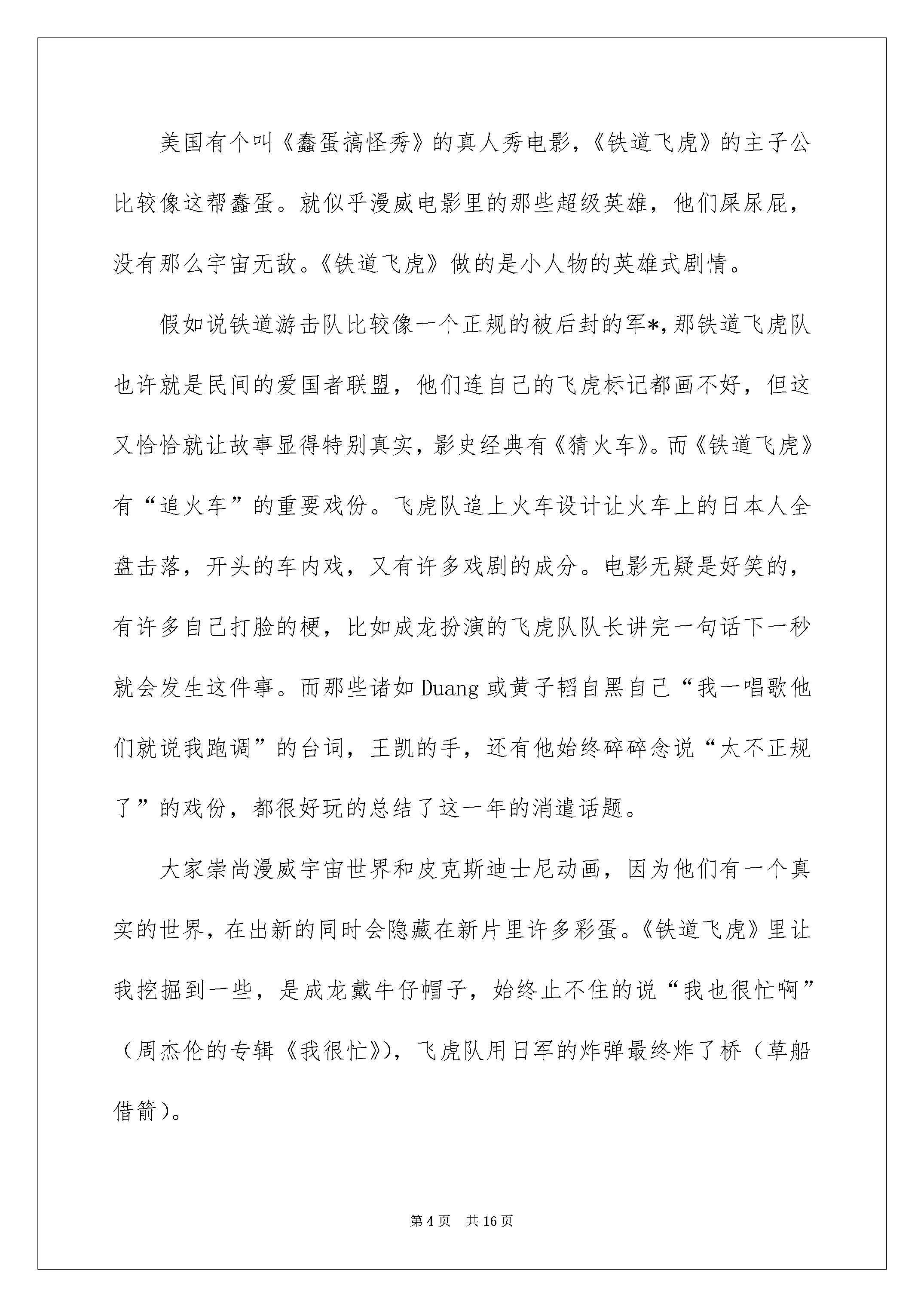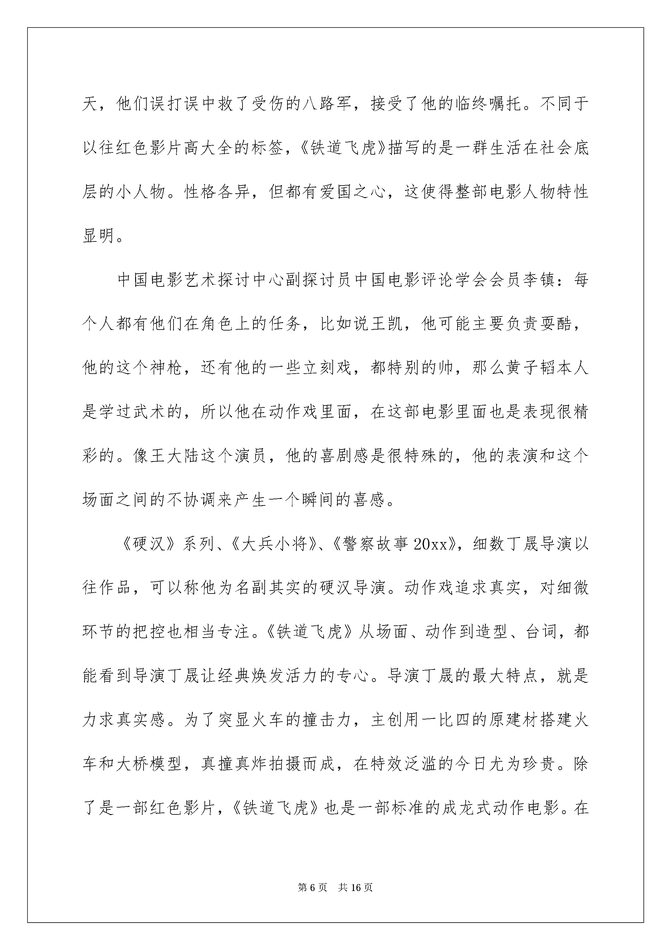 2022《铁道飞虎》观后感《铁道飞虎》观后感当看完一部作品后信任大家的收获确定不少吧记录下来很重要哦一起来写一篇观后感吧。在写观后感之前可以先参考范文以下是我为大家整理的《铁道飞虎》观后感希望对大家有所帮助。《铁道飞