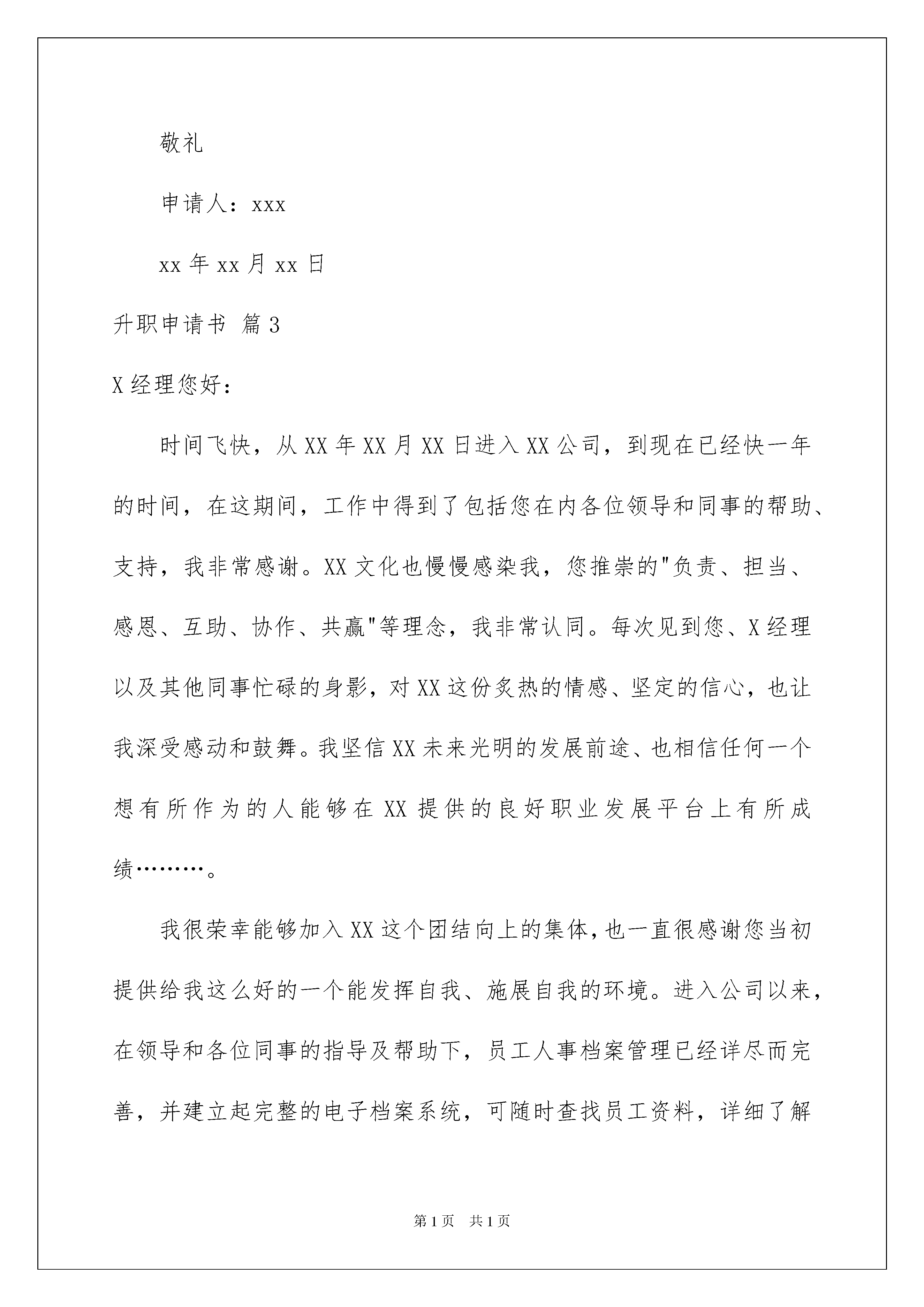 2022简单升职申请书简洁升职申请书职场升职的专业名词是——晋升。升职是指员工向一个比前一个工作岗位挑战性更高、所需担当责任更大以及享有职权下面就是我整理的简洁升职申请书一起来看一下吧。升职申请书的范文(一)敬重的我司领导您好!我是xxx于今年2月24