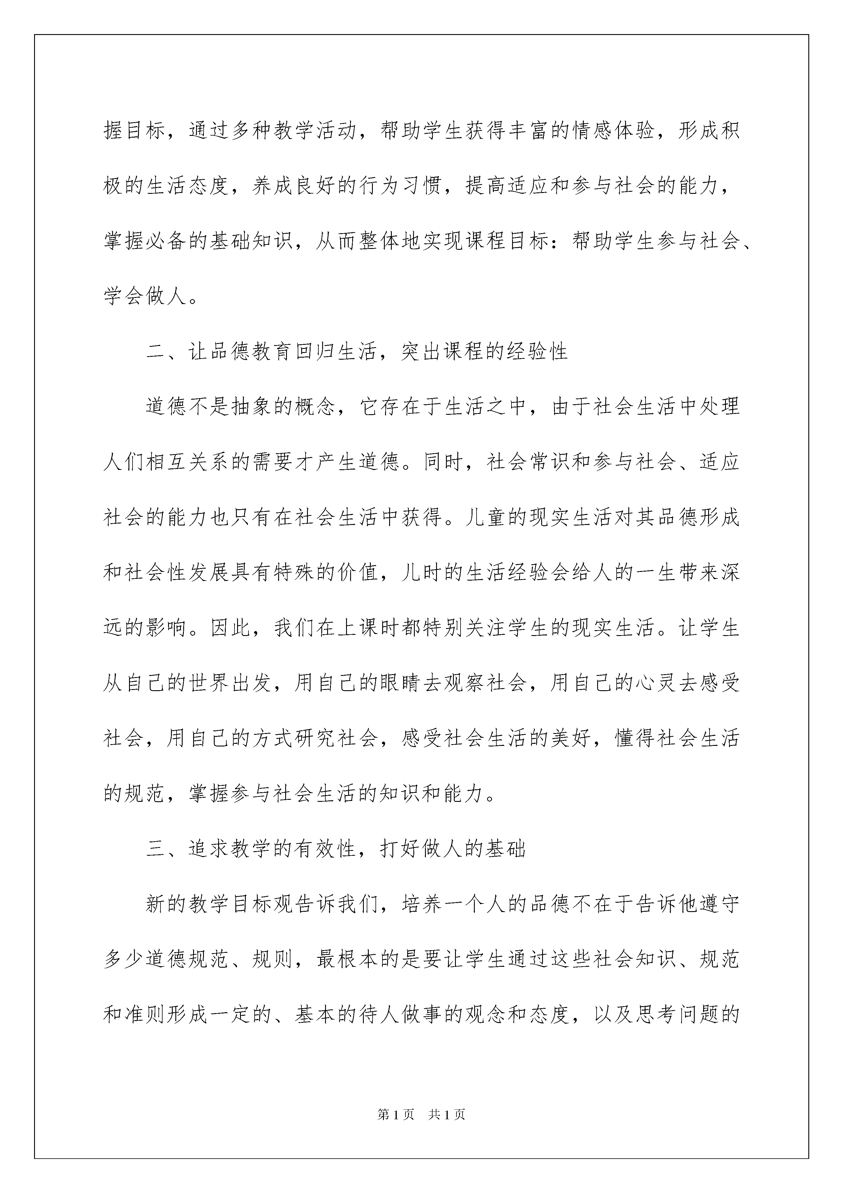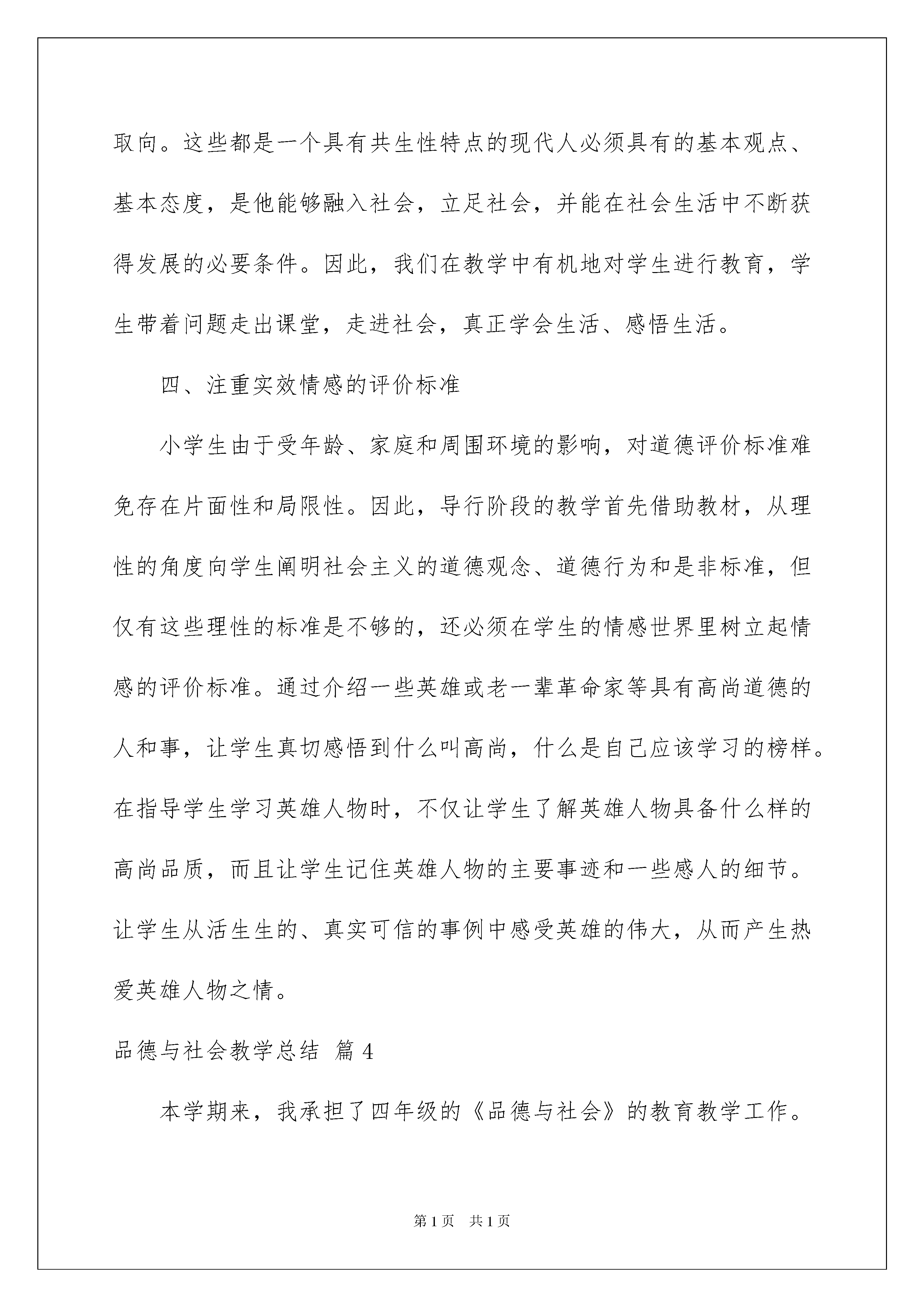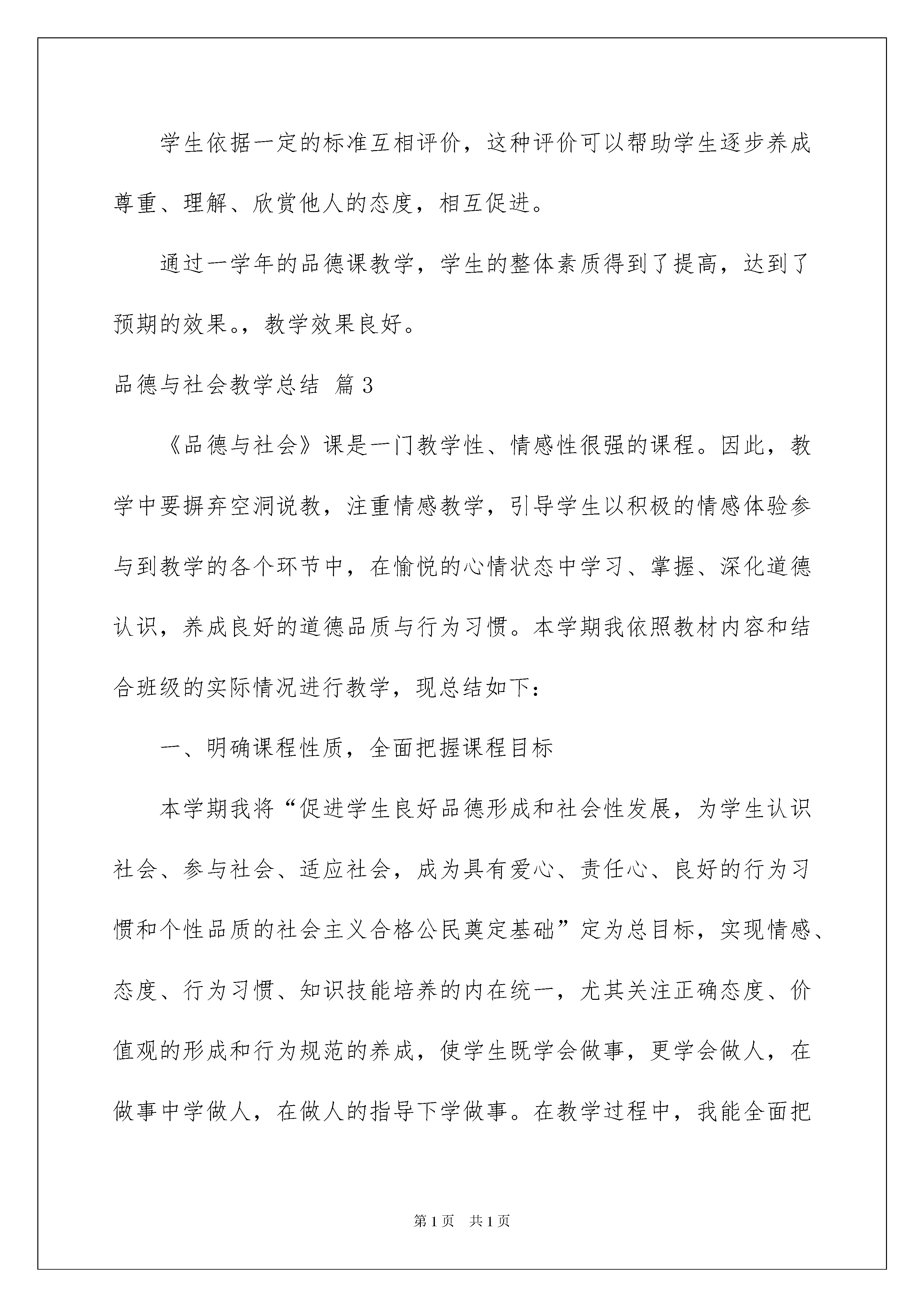 本文格式为Word版,下载可任意编辑第PAGE\*MERGEFORMAT12页共NUMPAGES\*MERGEFORMAT12页关于品德与社会教学总结模板集合七篇关于品德与社会教学总结模板集合七篇总结就是把一个时段的学习、工作或其完成情况进行一次全面系统的总结,它有助于我们寻找工作和事物发展的规律,从而掌握并运用这些规律,是时候写一份总结了。那么总结有什么格式呢?以下是我帮大家整理的品德与社会教学总结7篇,仅供参考,欢迎大家阅读。品德与社会教学总结篇1本学期来,我按照《品德与社会》课程特点制定