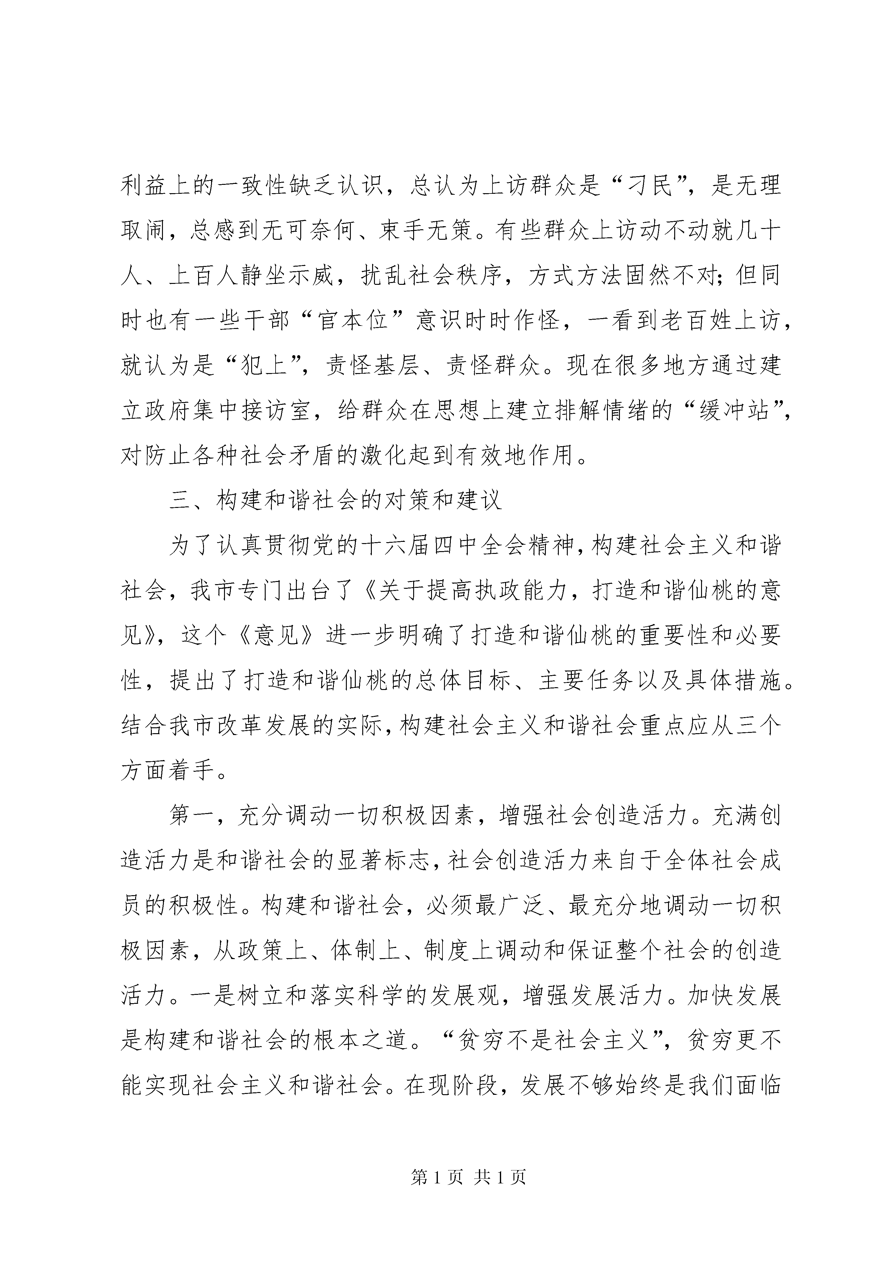 关于构建和谐社会的调研报告一、目前我市社会结构的主要变化随着市场经济体制的逐步建立和完善,特别是全市国有集体企业改革的深入推进,农业产业结构的战略性调整,城乡一体化进程的加快,民营经济的迅猛发展,我市的社会结构发生着深刻的变化,传统社会阶层不断演化,新的社会阶层正在形成和壮大。1、传统农民阶层发生分化。长期以来,传统的农民阶层一直保持着相对稳定,但从改革开放以来,特别是近10年来,由于社会流动的不断加快,城镇化进程的不断加速,大量农村剩余劳动力向城镇转移,一部分农民“洗脚进城”,