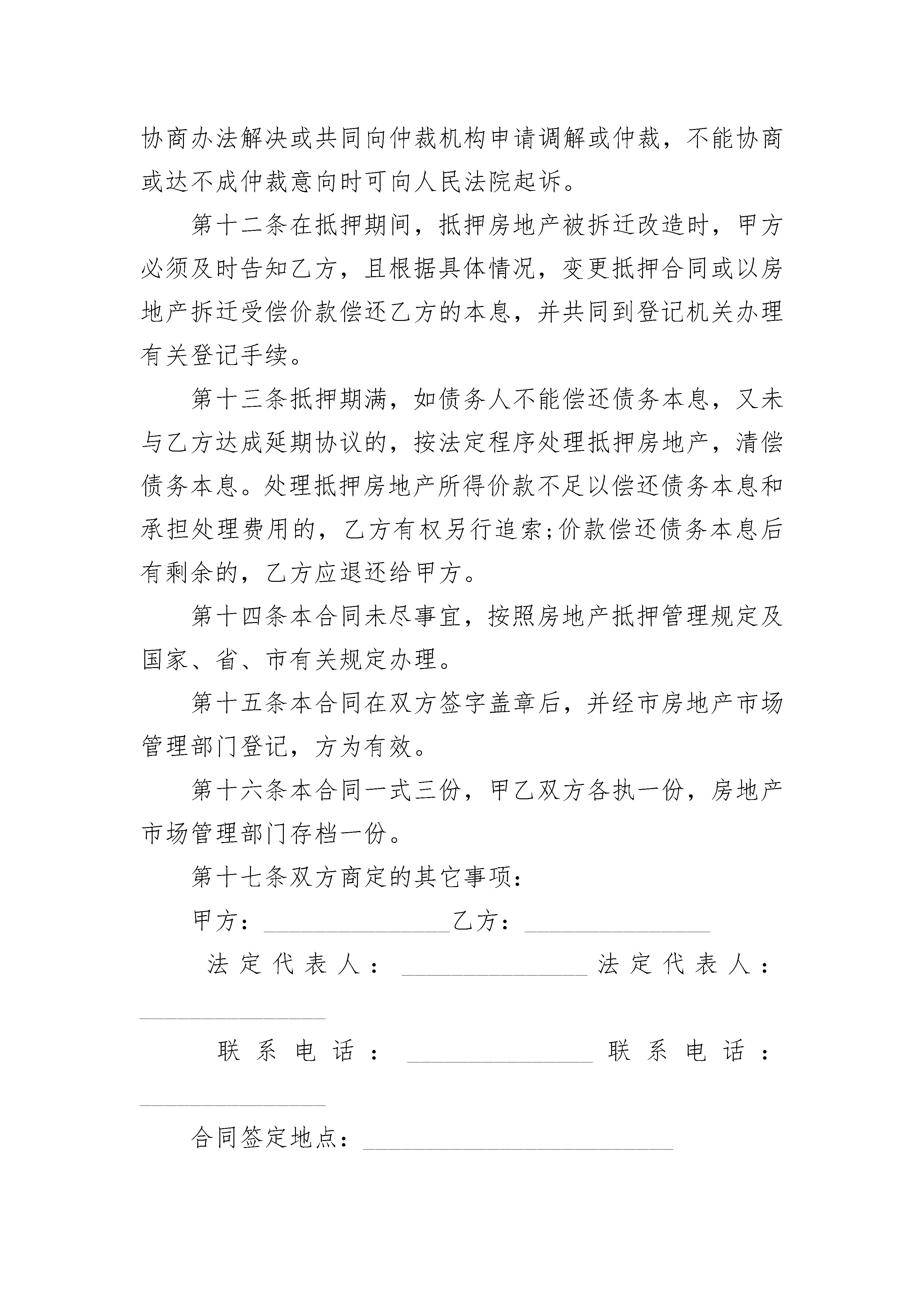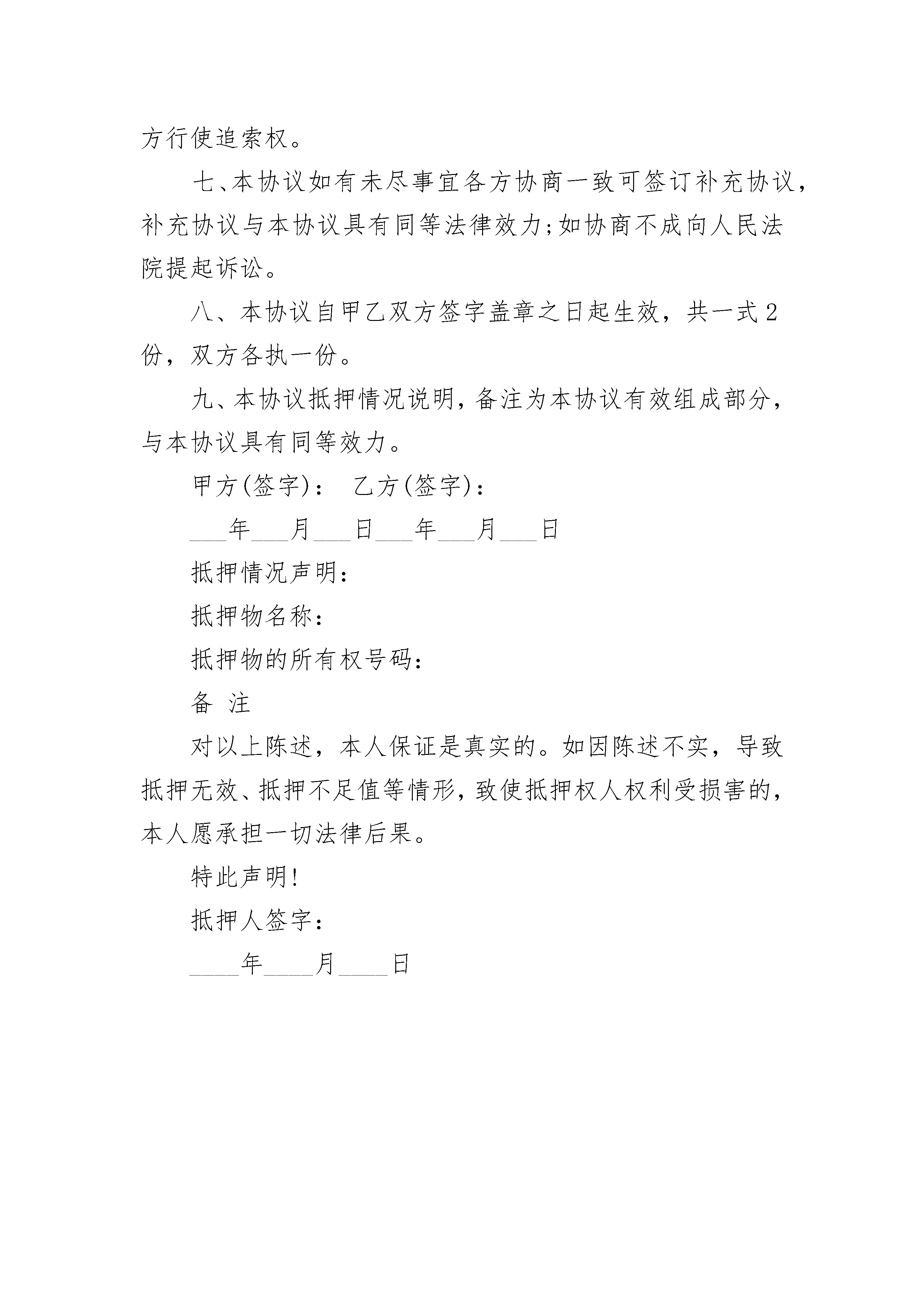 民间抵押借款合同书在当今社会,人们对合同愈发重视,合同的地位越来越不容忽视,签订合同是为了保障双方的利益,避免不必要的争端。相信大家又在为写合同犯愁了吧,下面是小编为大家收集的民间抵押借款合同书,希望能够帮助到大家。民间抵押借款合同书1抵押人:抵押权人:为确保xxx年xxxx月xxxx日签定的xx(以下称主合同)的履行,抵押人(以下简称甲方)愿意以其有权处分的房地产作抵押。抵押权人(以下简称乙方)经实地勘验,在充分了解其权属状况及使用与管理现状的基础上,同意接受甲方的房地产抵押。甲方将房屋抵押给乙方时,该