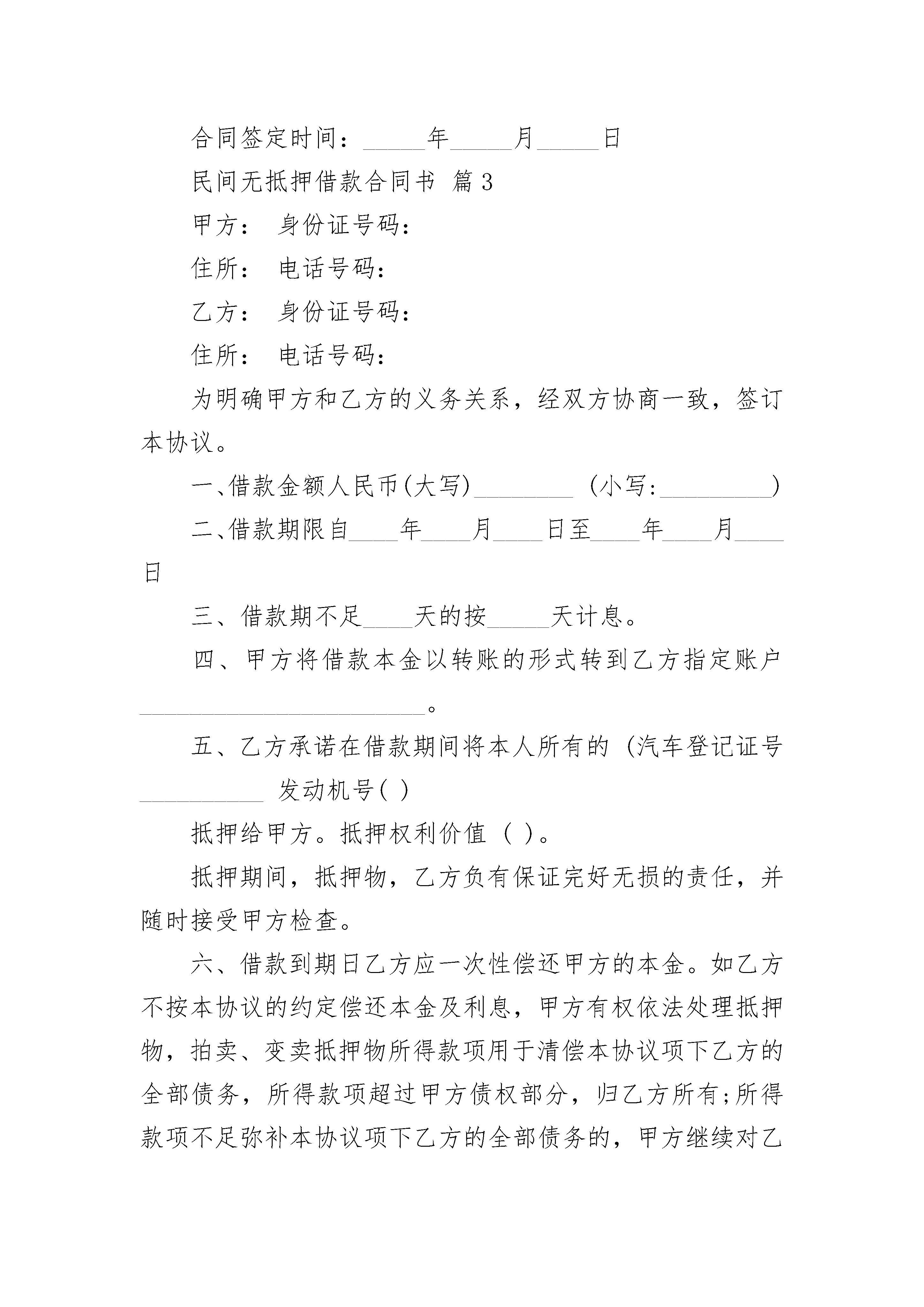 民间无抵押借款合同书汇编3篇.docx