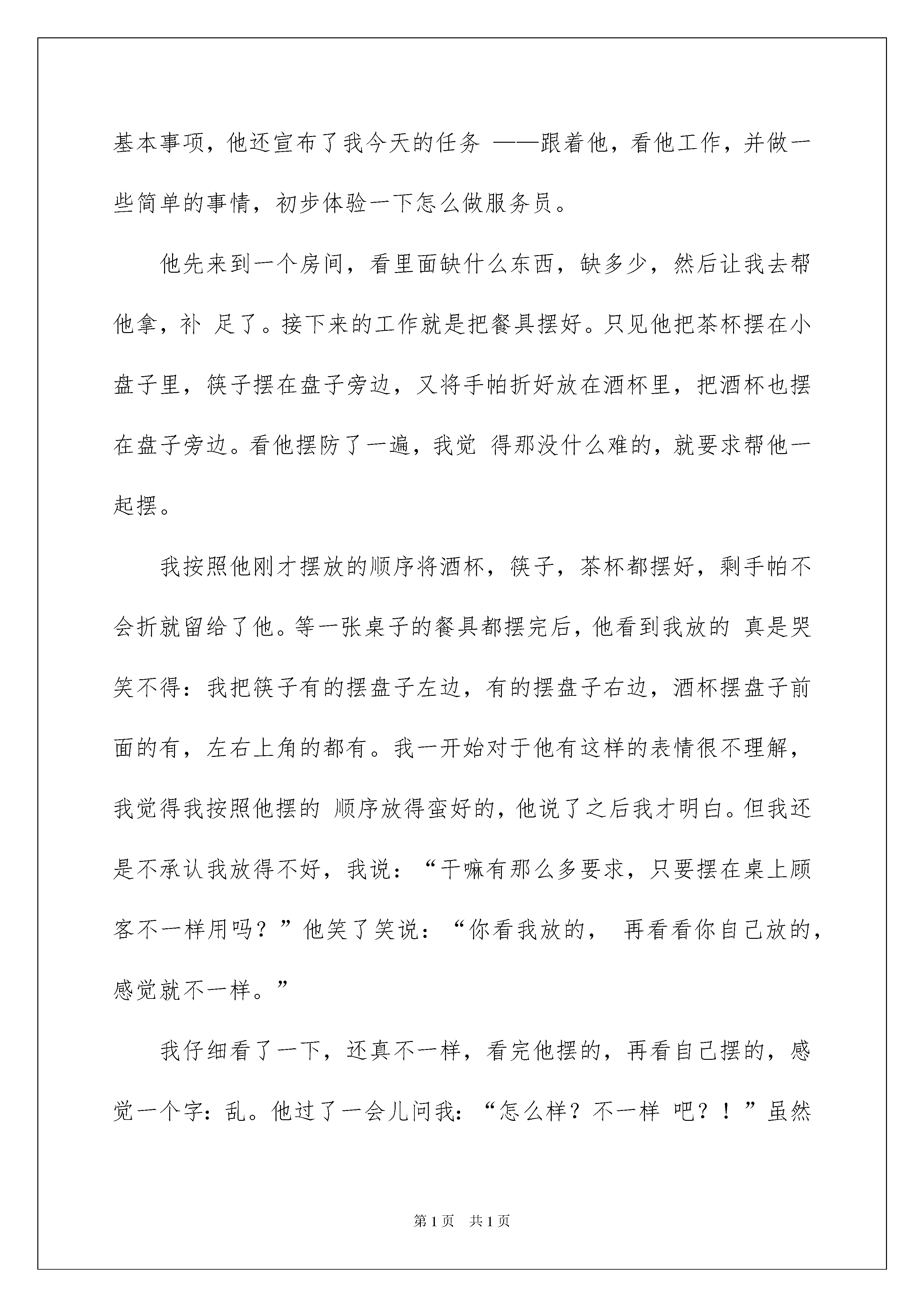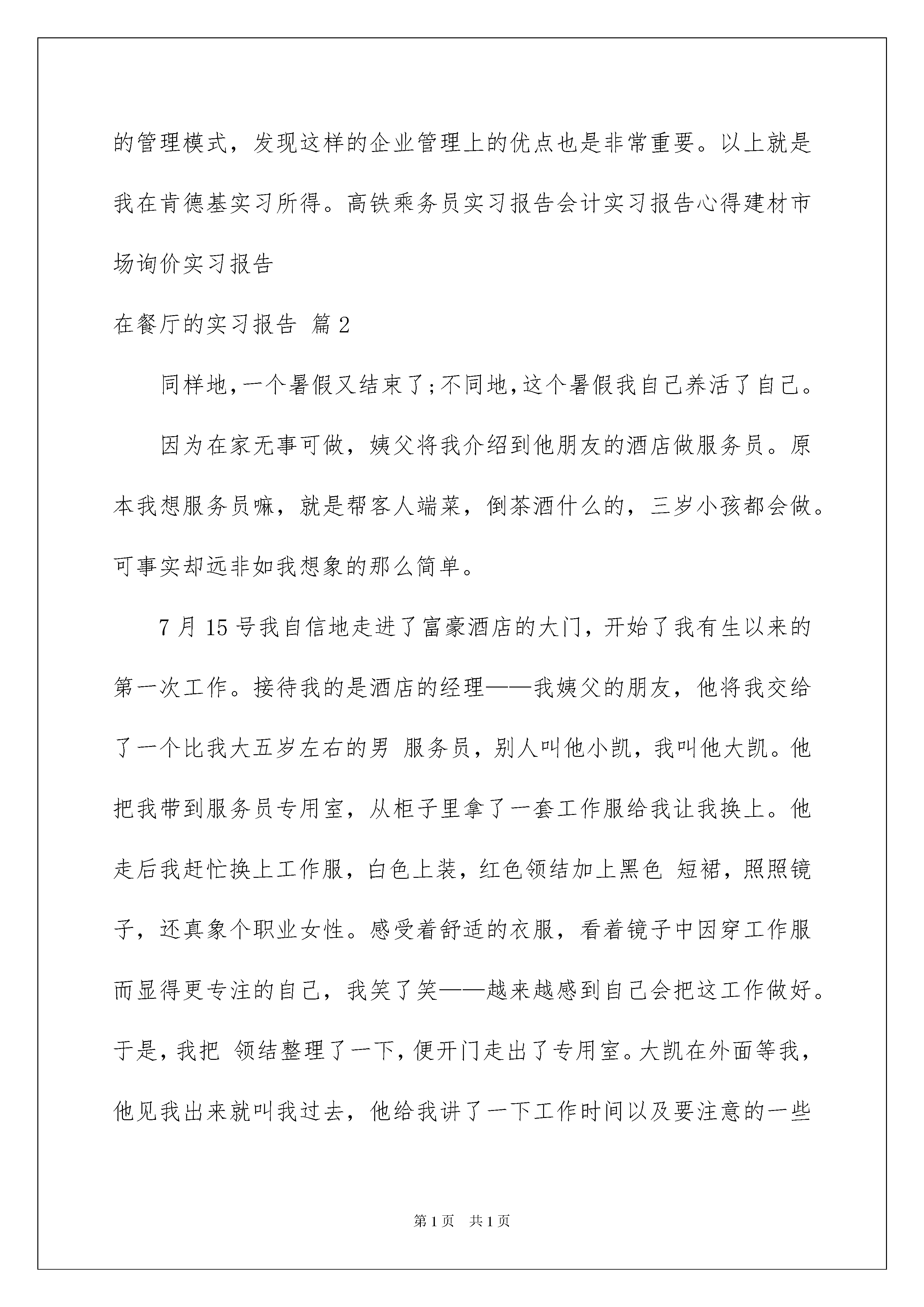 2022在餐厅的实习报告关于在餐厅的实习报告3篇在现实生活中报告运用的频率越来越高我们在写报告的时候要留意语言要精确、简洁。那么什么样的报告才是有效的呢?以下是我整理的在餐厅的实习报告3篇欢迎阅读希望大家能够喜爱。在餐厅的实习
