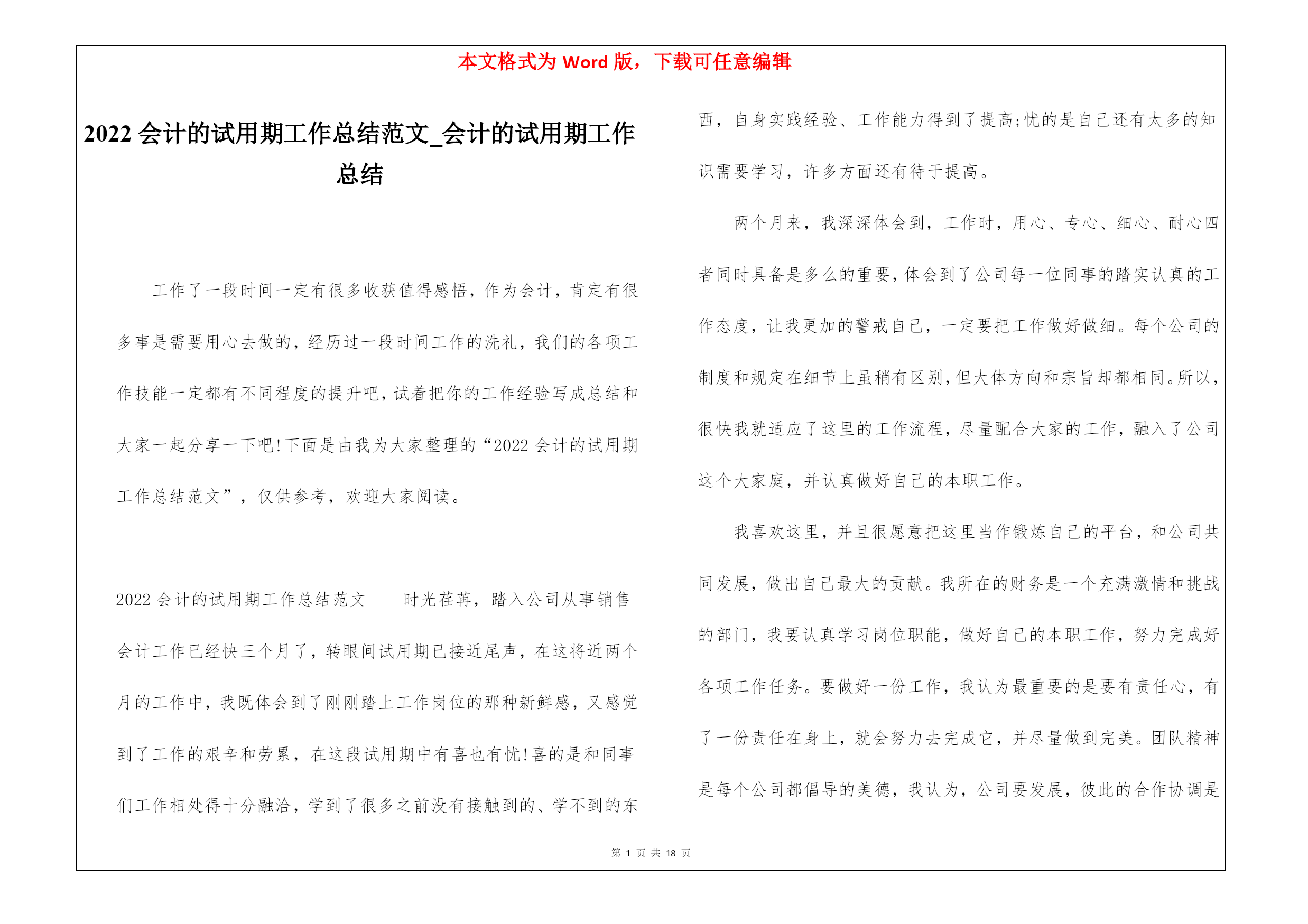 2022会计的试用期工作总结范文会计的试用期工作总结.docx