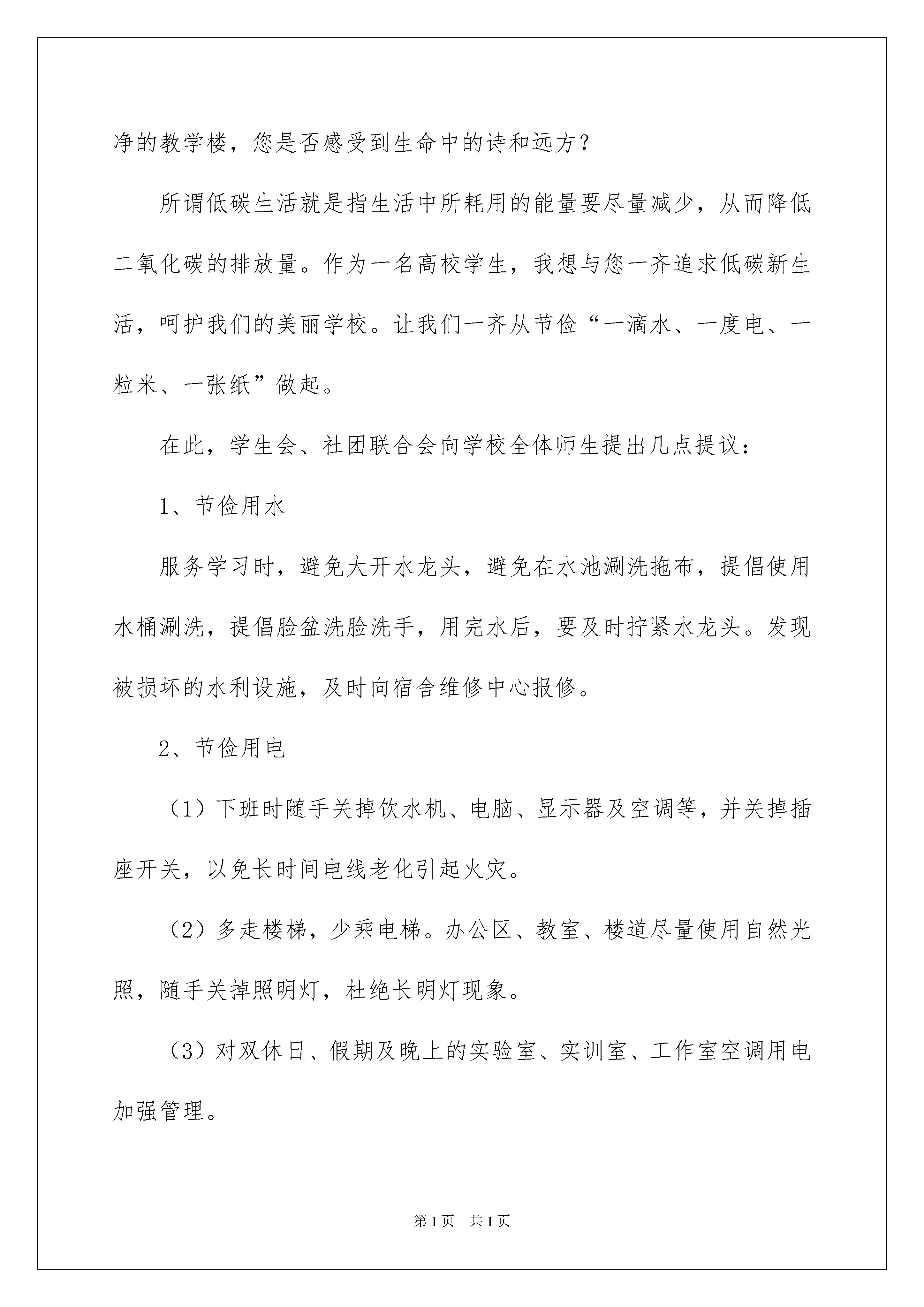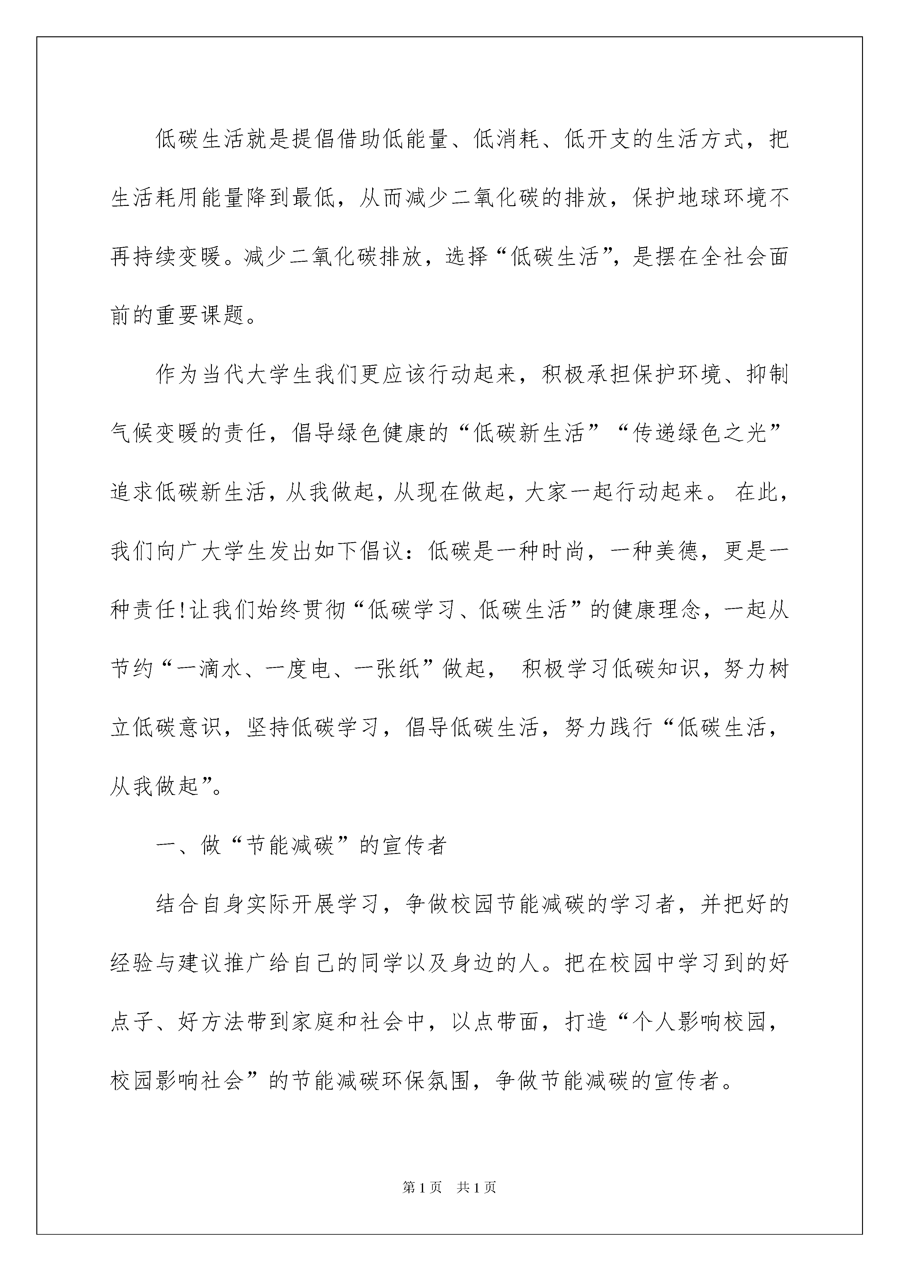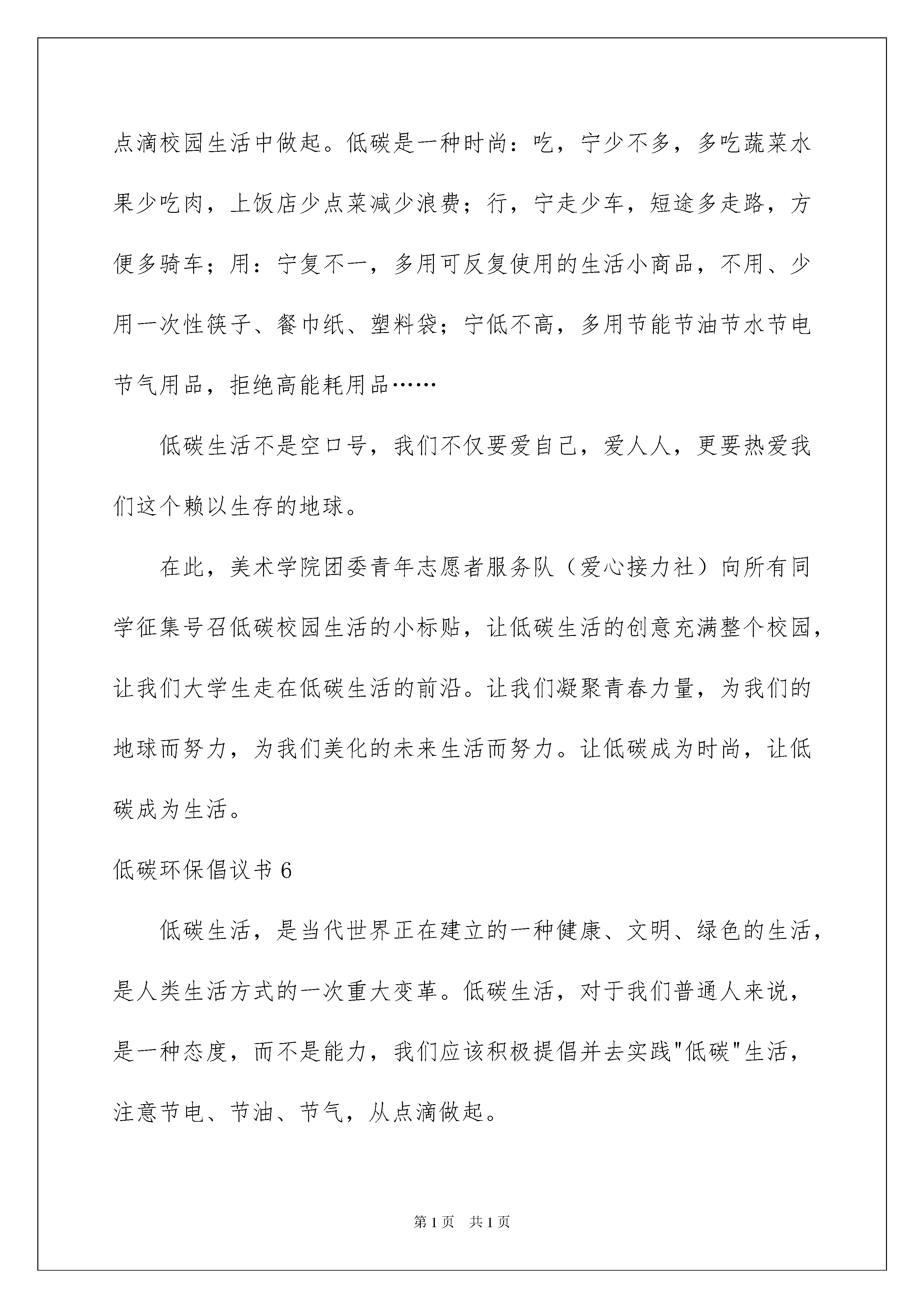 低碳环保倡议书“低碳环保”倡议书环境是我们人类及自然界所有生物赖以生存的基础。爱护地球、维护生态、保护环境是每一个公民义不容辞的责任。然而,环境保护是一项系统工程,需要大家的参与和配合,需要你我他的共同努力。因此,我提出倡议:一、大力宣传普及环境保护知识,提高广大公众的环保意识,结合与环境有关的纪念日,在社区及公共场所宣传环保,参与社区的环保实践和监督。二、从我做起,从现在做起,从身边小事做起,提倡绿色生活,节约资源,减少污染,回收资源,绿色消费,支持环保。三、积极、认真搞好居住社区、公共场所的绿化、美化