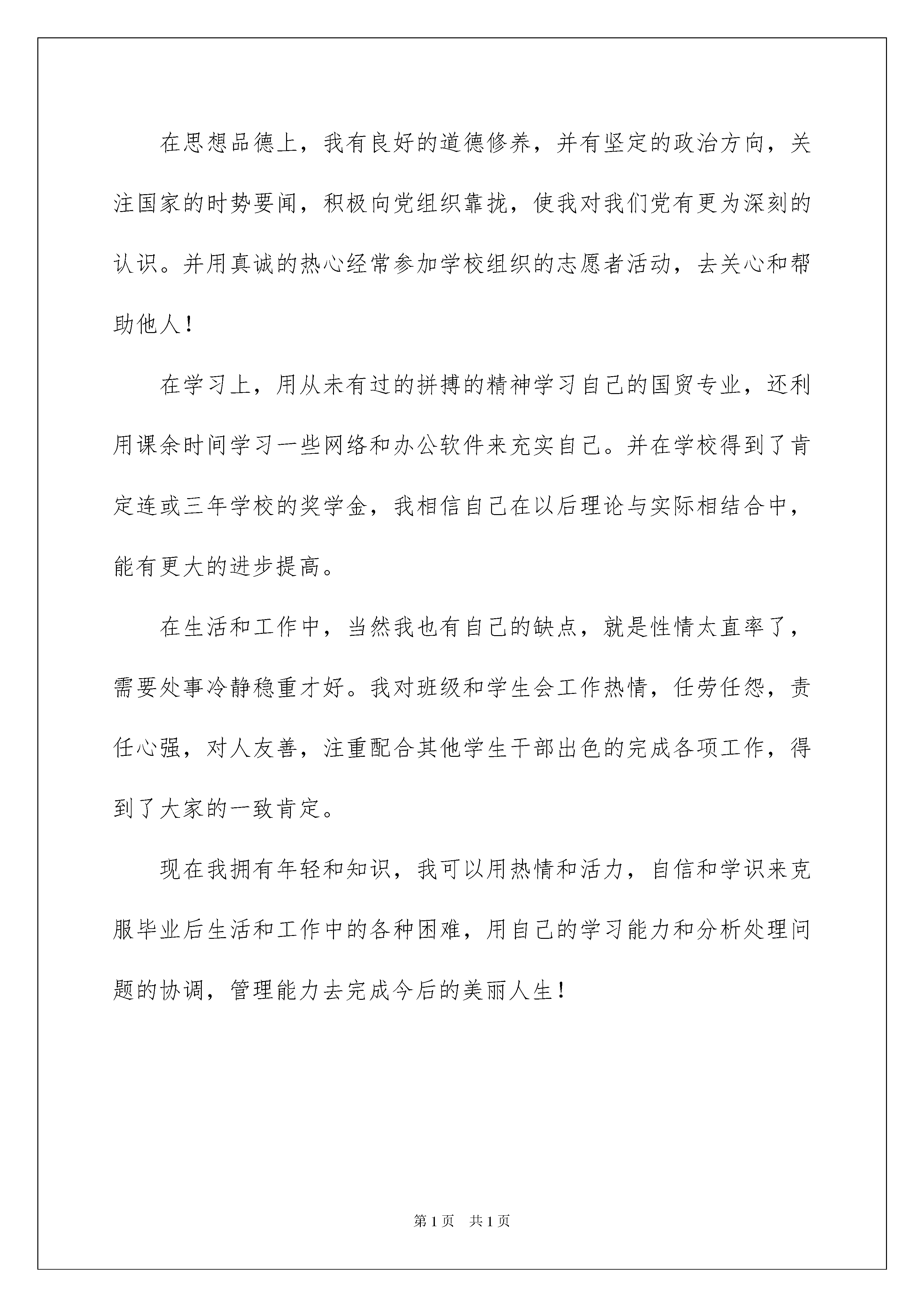 Word格式、可编辑排版PAGE\*MERGEFORMAT10大学毕业生登记表自我鉴定精选2022年(精选12篇)高校毕业生登记表自我鉴定精选2022年(精选12篇)高校毕业生登记表自我鉴定精选2022年篇1在高校生活接近尾声之际,我回首过往,才发觉点滴的宝贵,本身成熟长大了很多,在此,我写下对过去自我的评价,以此来作为我将来的见鉴。在思想方面,我具有良好的思想品质,我注意脚踏实地,以从小事做起为标准,以仔细细致的态度对待每件事。俗话说:态度打算一切。所以结果并不重要,事情经过也会让你受益良多。在学