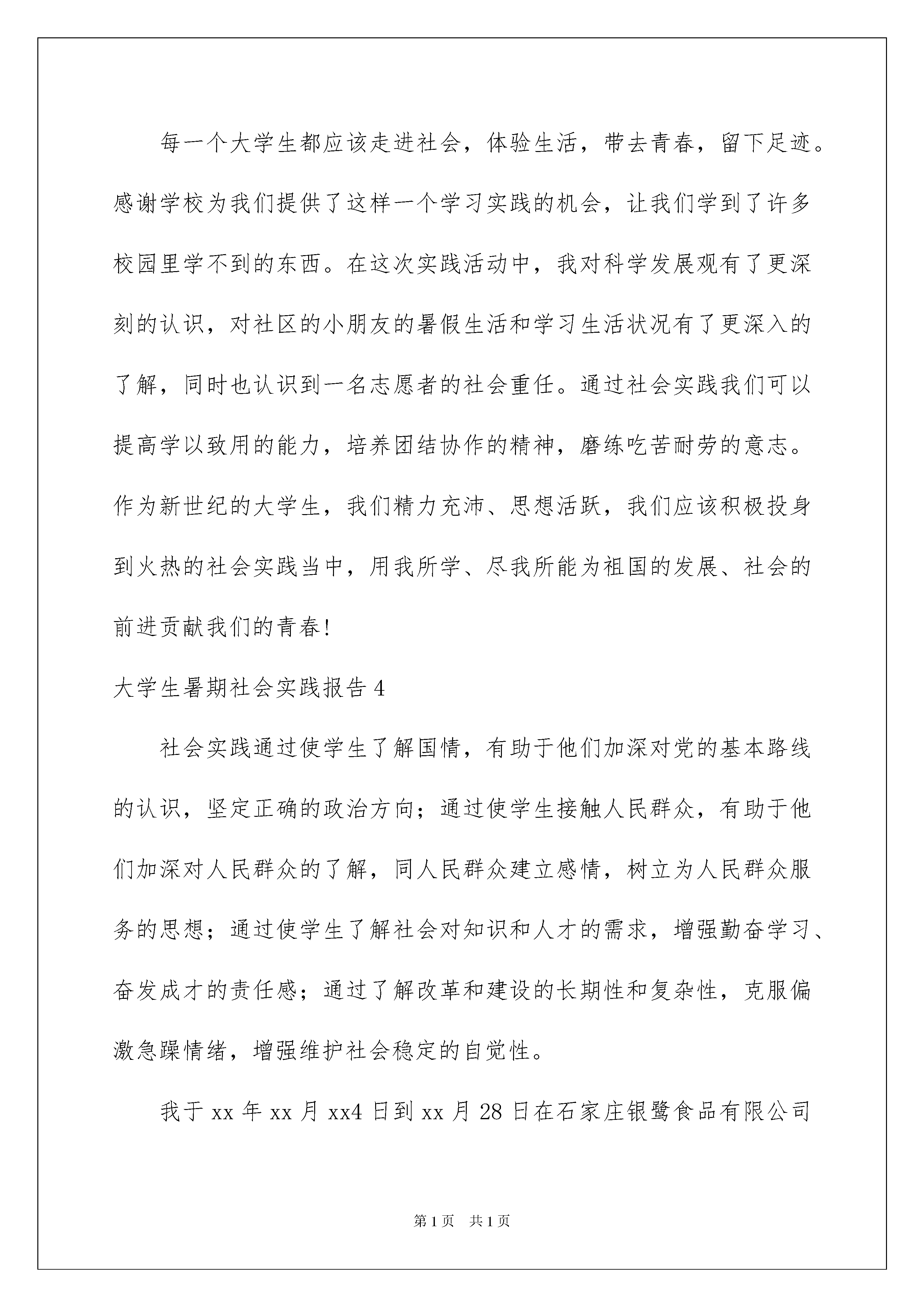 2022暑期大学生的社会实践报告暑期大学生的社会实践报告随着人们自身素质提升报告的用途越来越大报告中涉及到专业性术语要解释清楚。你还在对写报告感到一筹莫展吗?下面是我收集整理的暑期大学生的社会实践报告欢迎大家分享。暑期大学生的