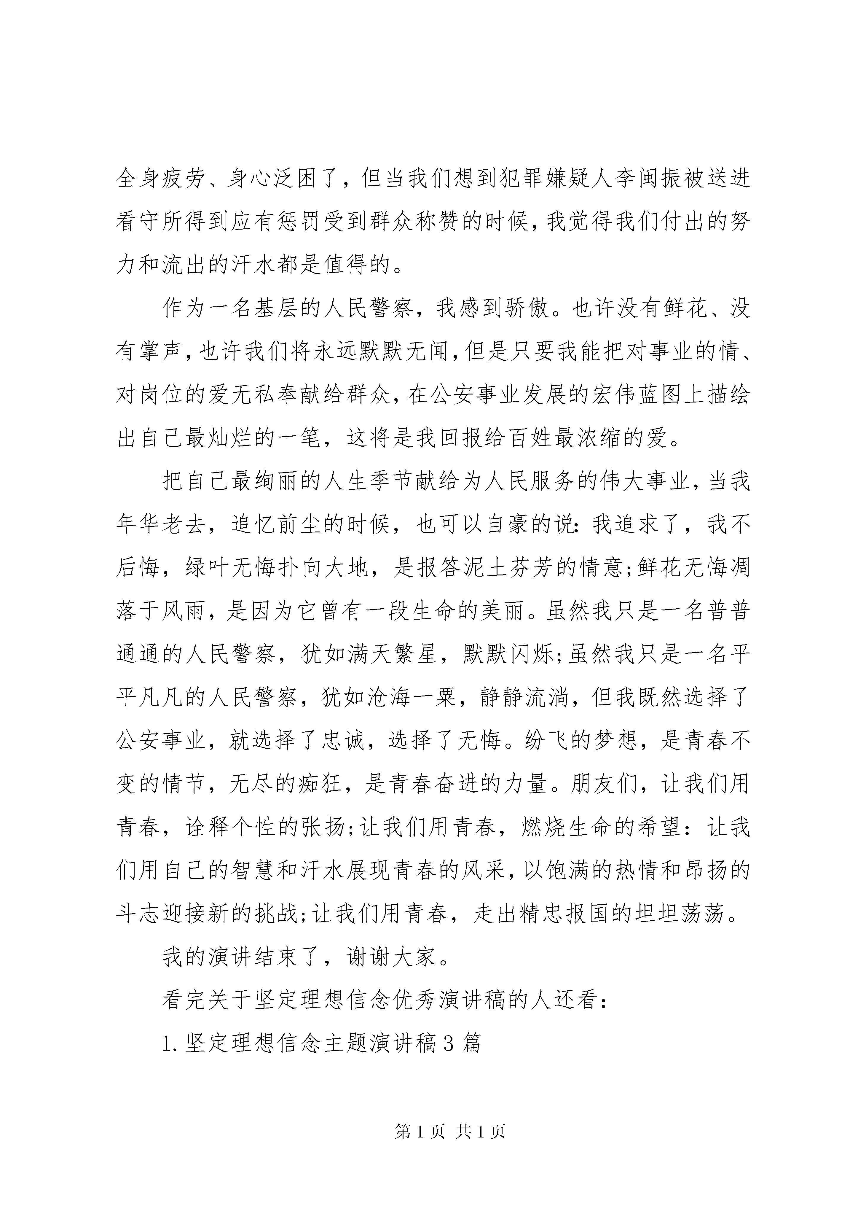 关于坚定理想信念优秀演讲稿关于坚定理想信念优秀演讲稿篇1各位领导、各位评委、同志们:大家好。我今天演讲的题目是。坚定理想信念保持思想纯洁。回想革命战争年代无数共产党人为了革命的成功南征北战流血牺牲靠的是什么。是坚定正确的政治信仰。再看和平建设时期无数共产党人为了社会主义事业艰苦奋斗无私奉献靠的是什么。还是坚定正确的政治信仰。改革开放以来无数共产党人为了国家富强和民族振兴顽强拼搏勇往直前靠的是什么。仍然是坚定正确的政治信仰。从焦裕禄到吕振华从邓稼先到袁隆平