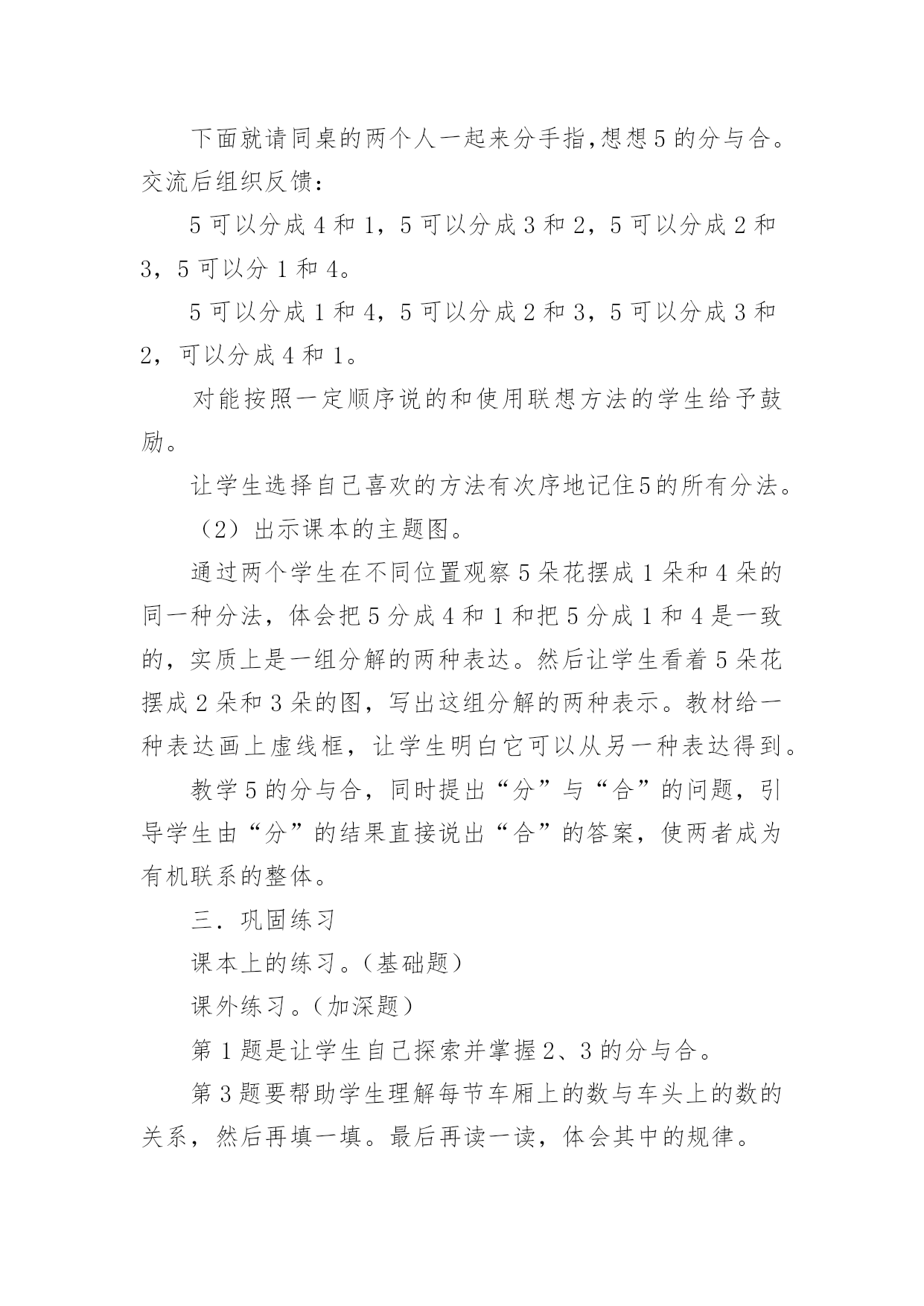 人教版小学数学一年级上册说课稿 分与合.doc