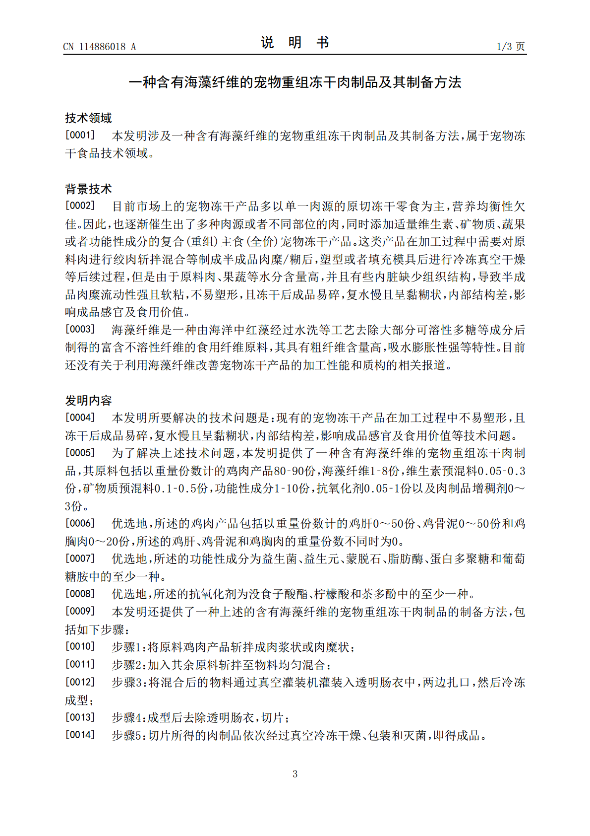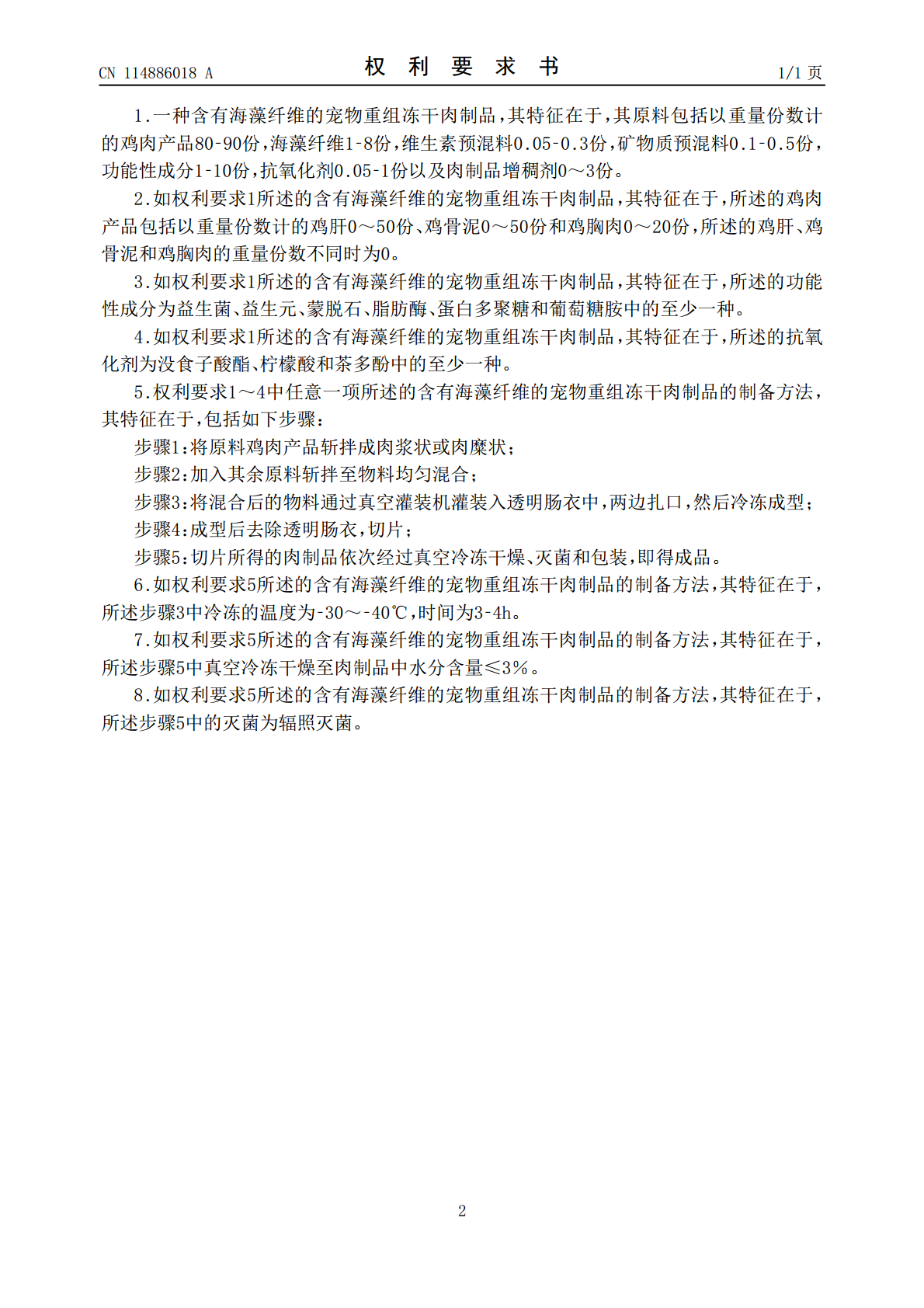 一种含有海藻纤维的宠物重组冻干肉制品及其制备方法.pdf