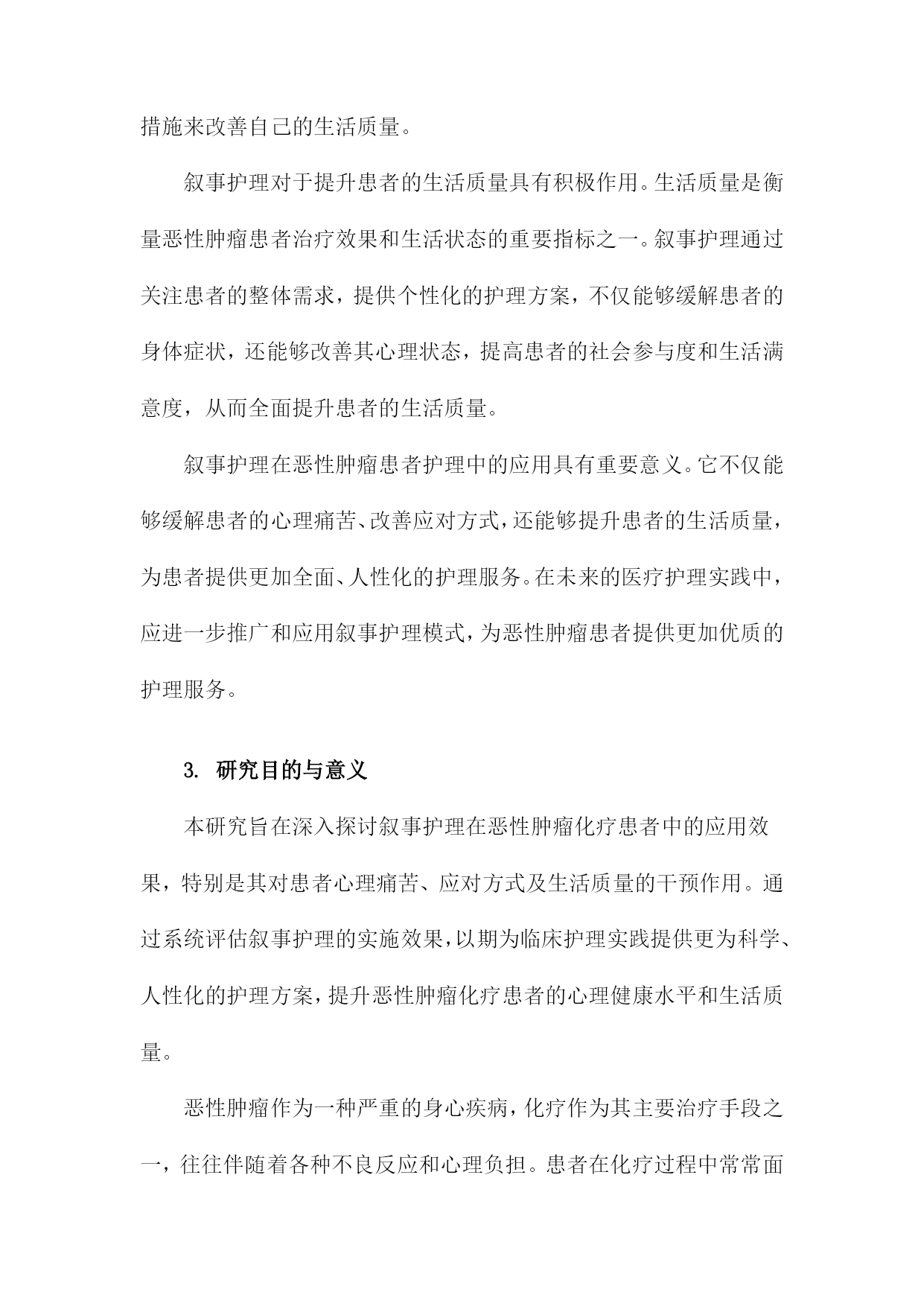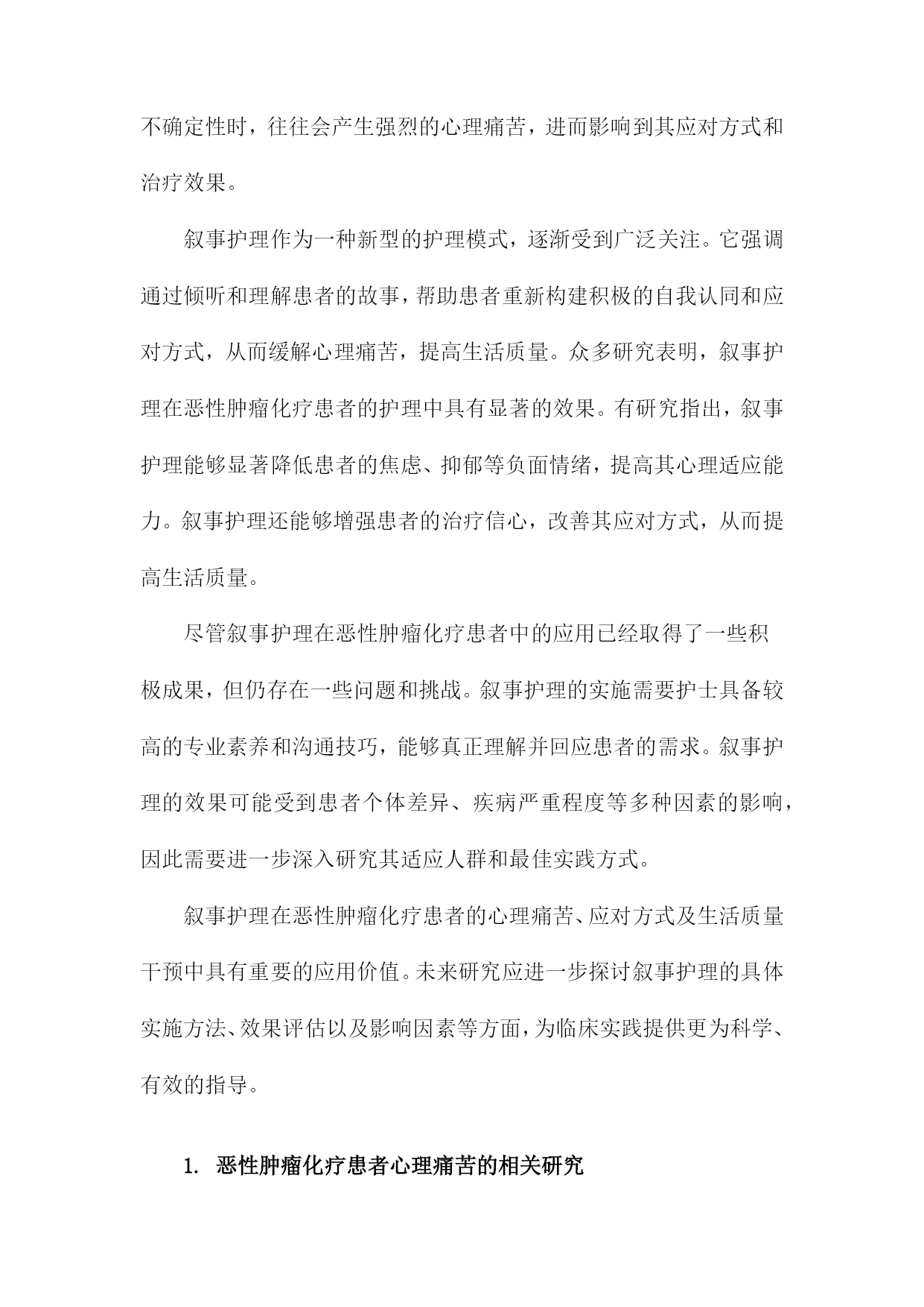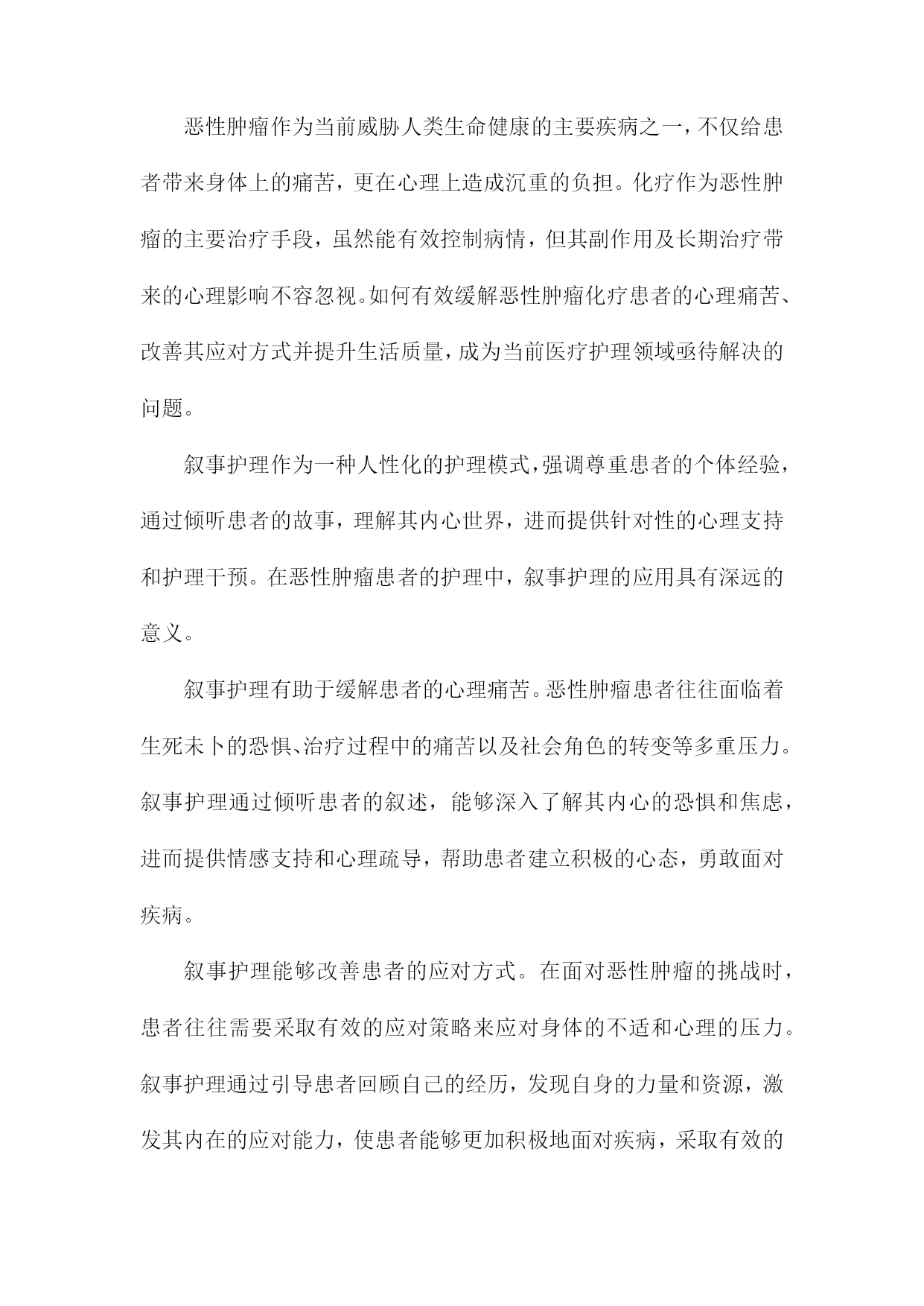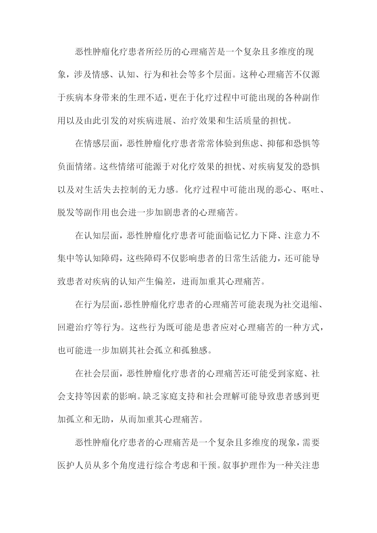 叙事护理对恶性肿瘤化疗患者心理痛苦、应对方式及生活质量的干预研究.docx