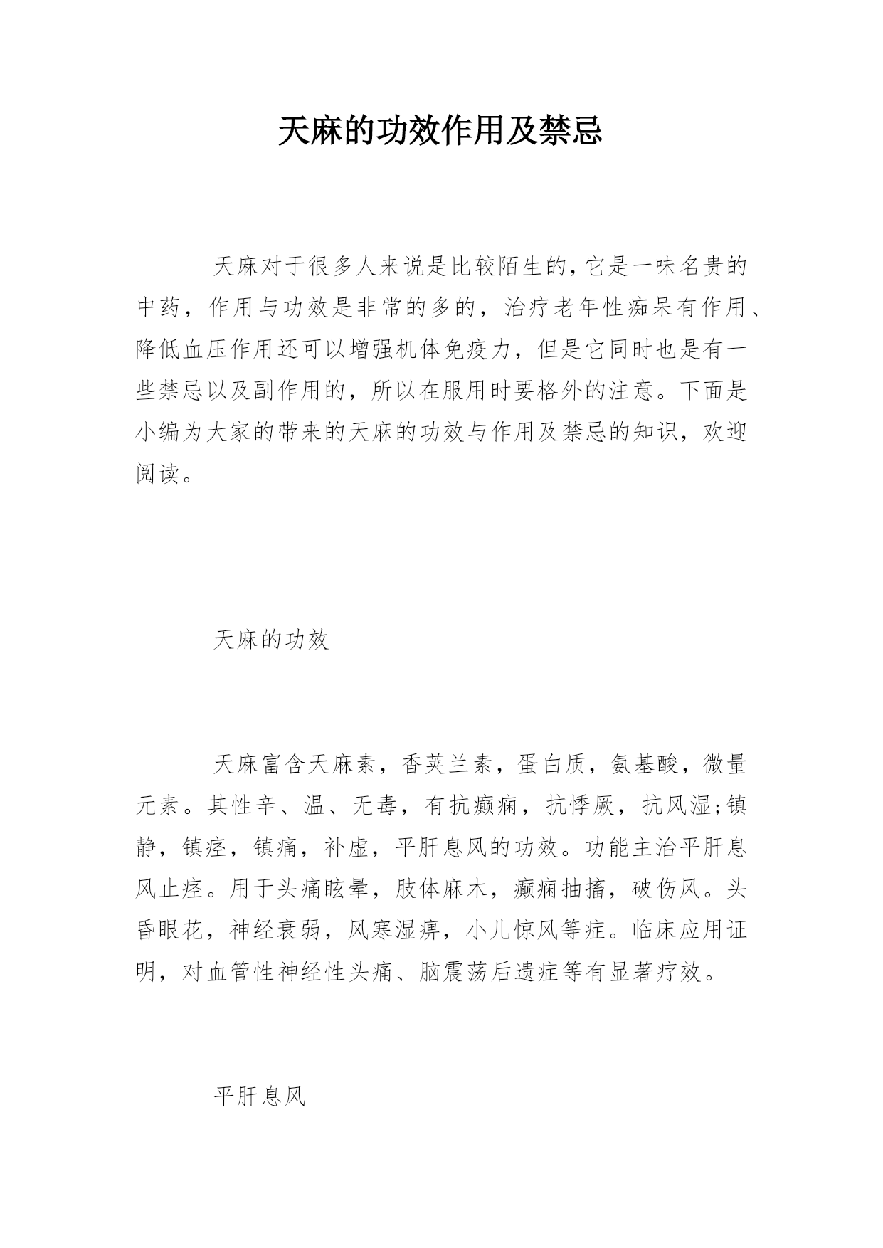 天麻的功效与作用与禁忌_天麻的知识大全.docx