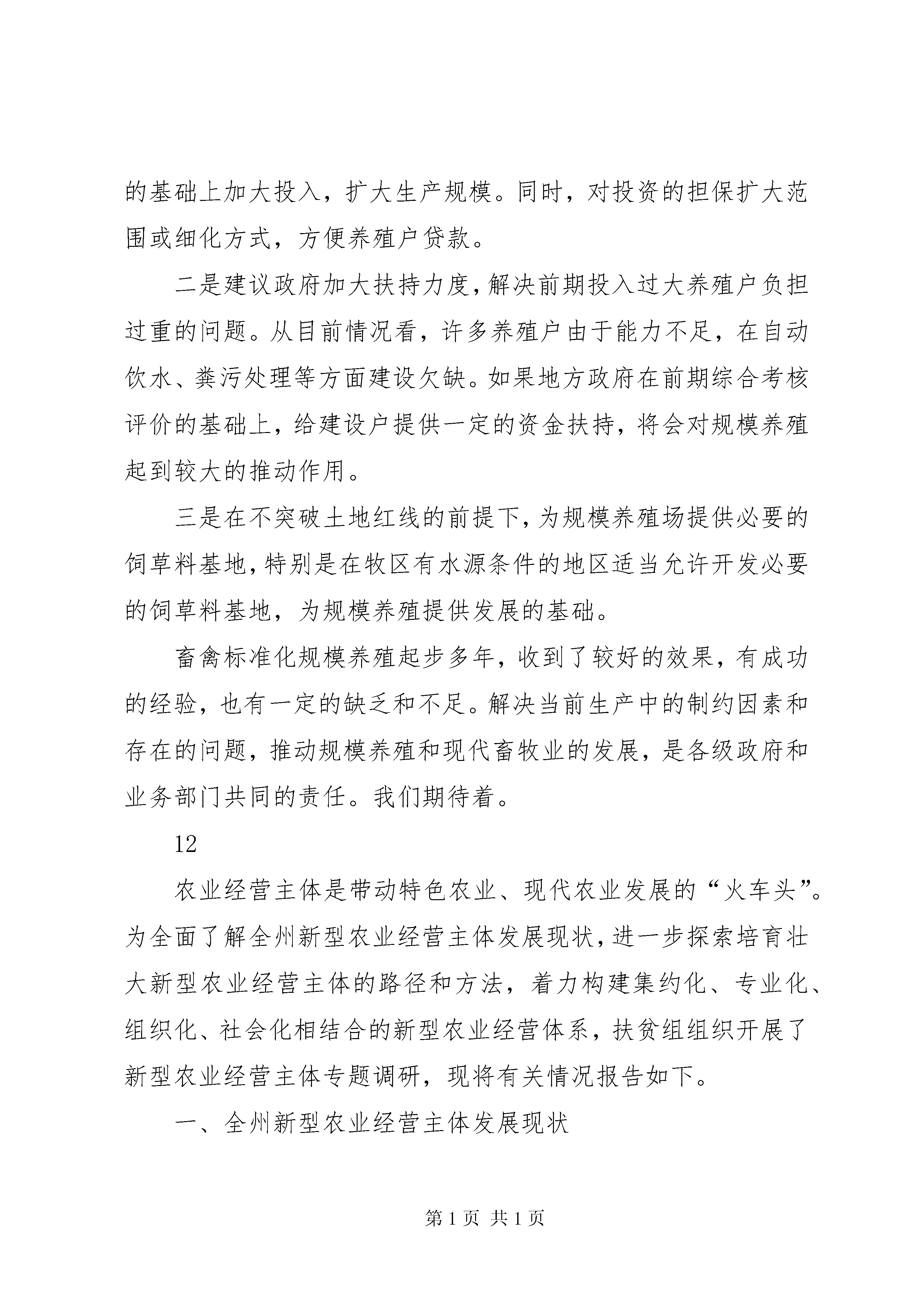 第PAGE\*Arabic\*MERGEFORMAT23页共NUMPAGES\*MERGEFORMAT23页关于畜禽标准化规模养殖发展情况调研报告从20**年开始,农业部按照“畜禽良种化、养殖设施化、生产规范化、防疫制定化、粪污无害化”的标准在全国实施了畜禽养殖标准化示范创建活动,经过两年多的实践,创建活动收到了预期效果,取得了较好的经济和社会效益,为发展现代养殖业奠定了基础。为全面了解掌握畜禽标准化规模养殖情况,我们对此进行了专题调研。现将调研情况报告如下:一、畜禽标准化规模养殖的发展现状x