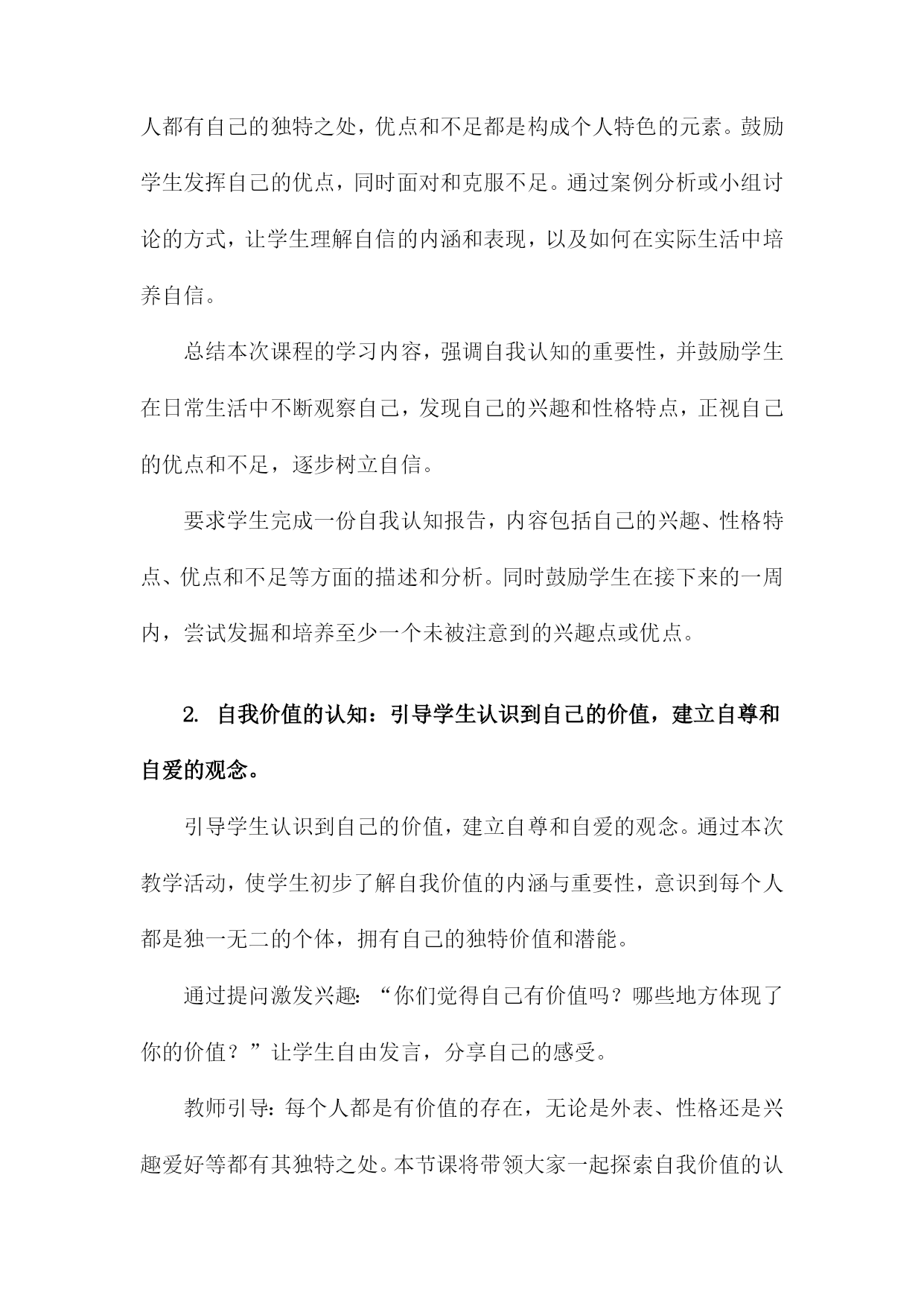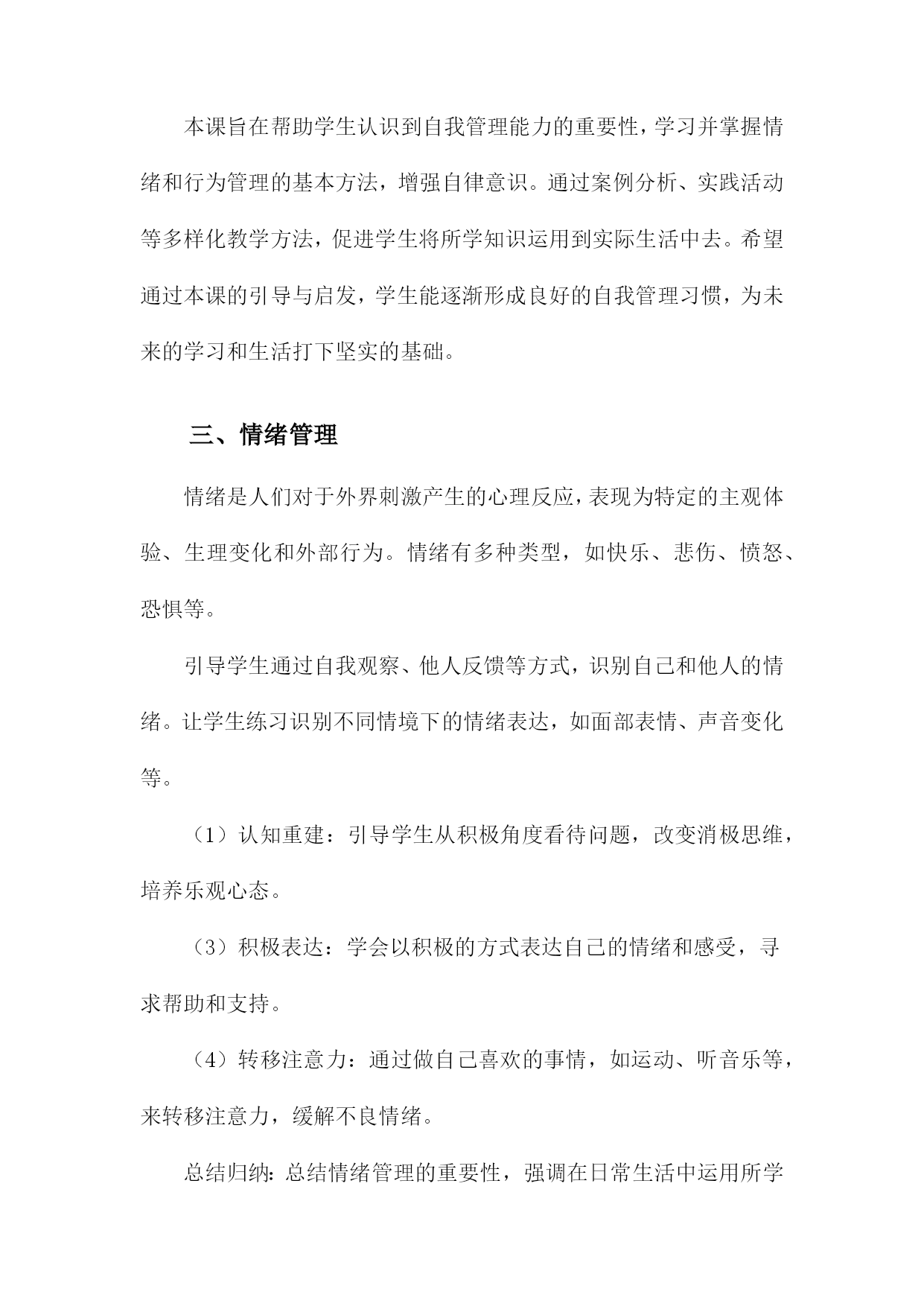 部编五年级下册心理健康教案一、课程介绍《部编五年级下册心理健康教案》是为学生精心设计和组织的一套心理健康教育课程。本课程旨在通过一系列系统、科学、实用的教学活动,帮助五年级学生增强心理健康意识,提高自我认知和情绪管理能力,促进身心健康发展。课程以“生活实例为基础,认知发展为前提,心理辅导为手段”的设计思路,确保学生在学习过程中不仅获取知识,更能够实际操作和自我体验。课程内容涵盖了情绪管理、人际交往、学习压力应对、自信心培养等方面,旨在引导学生建立积极健康的心态,更好地面对生活中的挑战和压力。本课程重视学生
