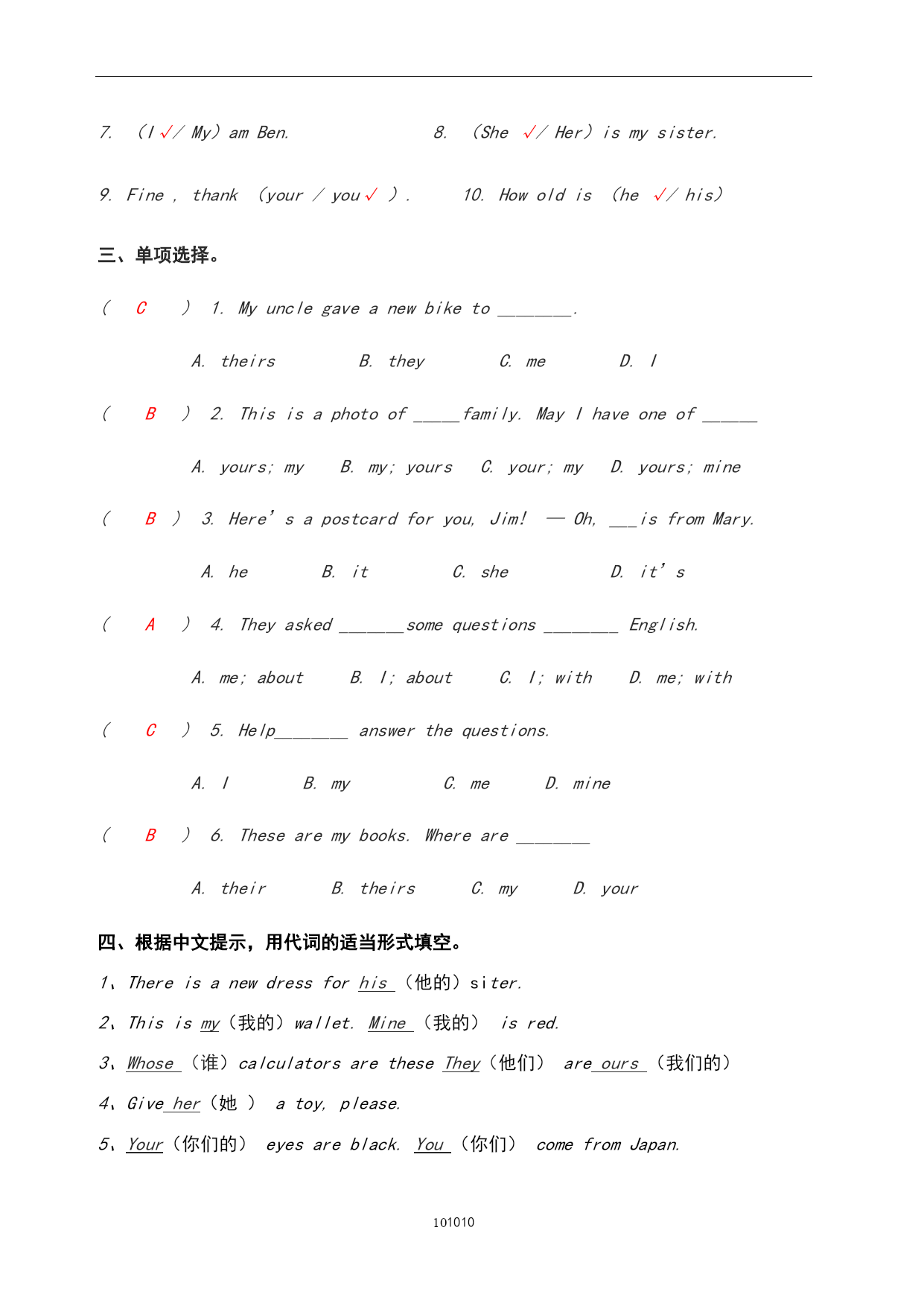 小学英语代词的用法及练习.doc