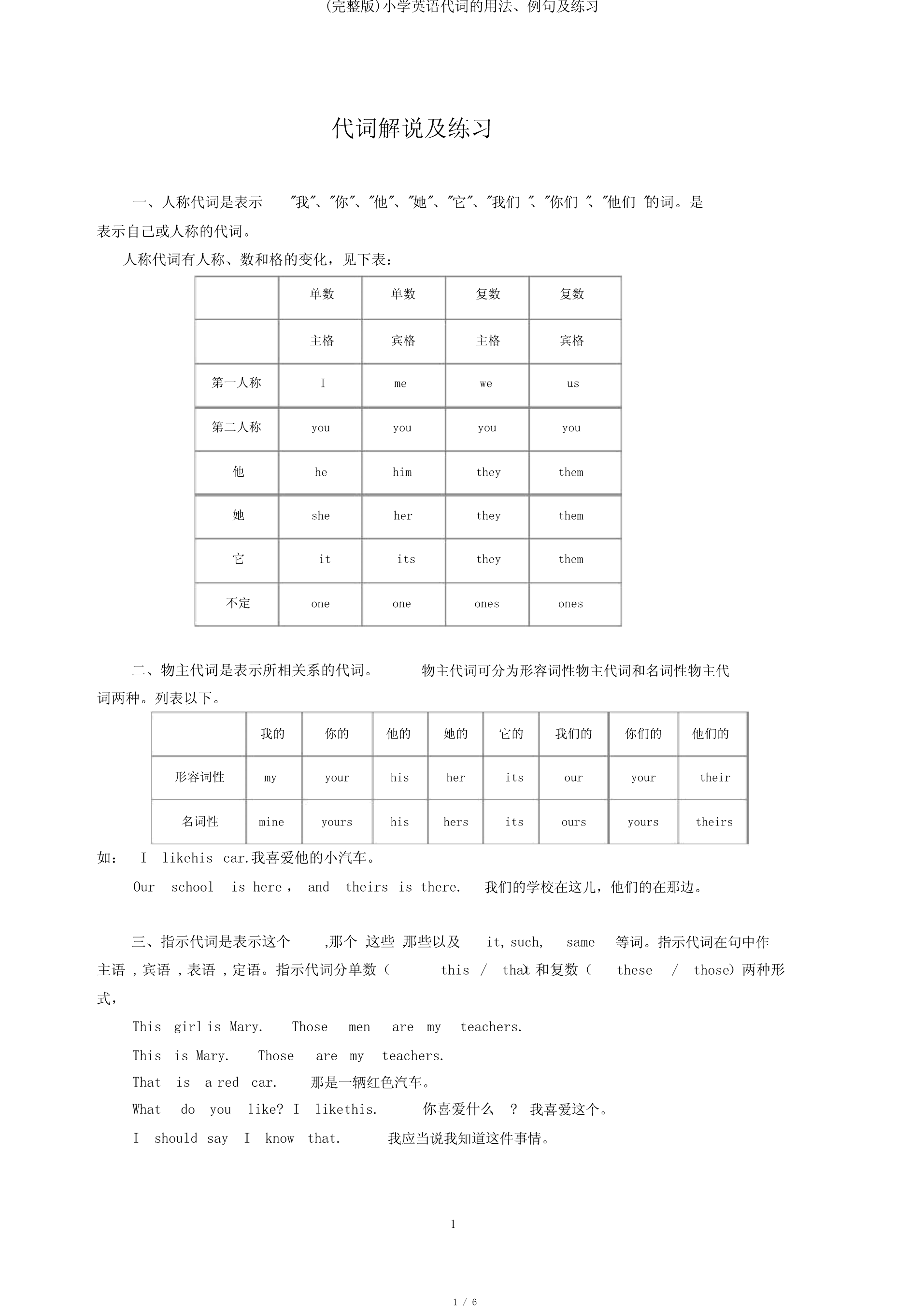 (完整版)小学英语代词的用法、例句及练习.pdf