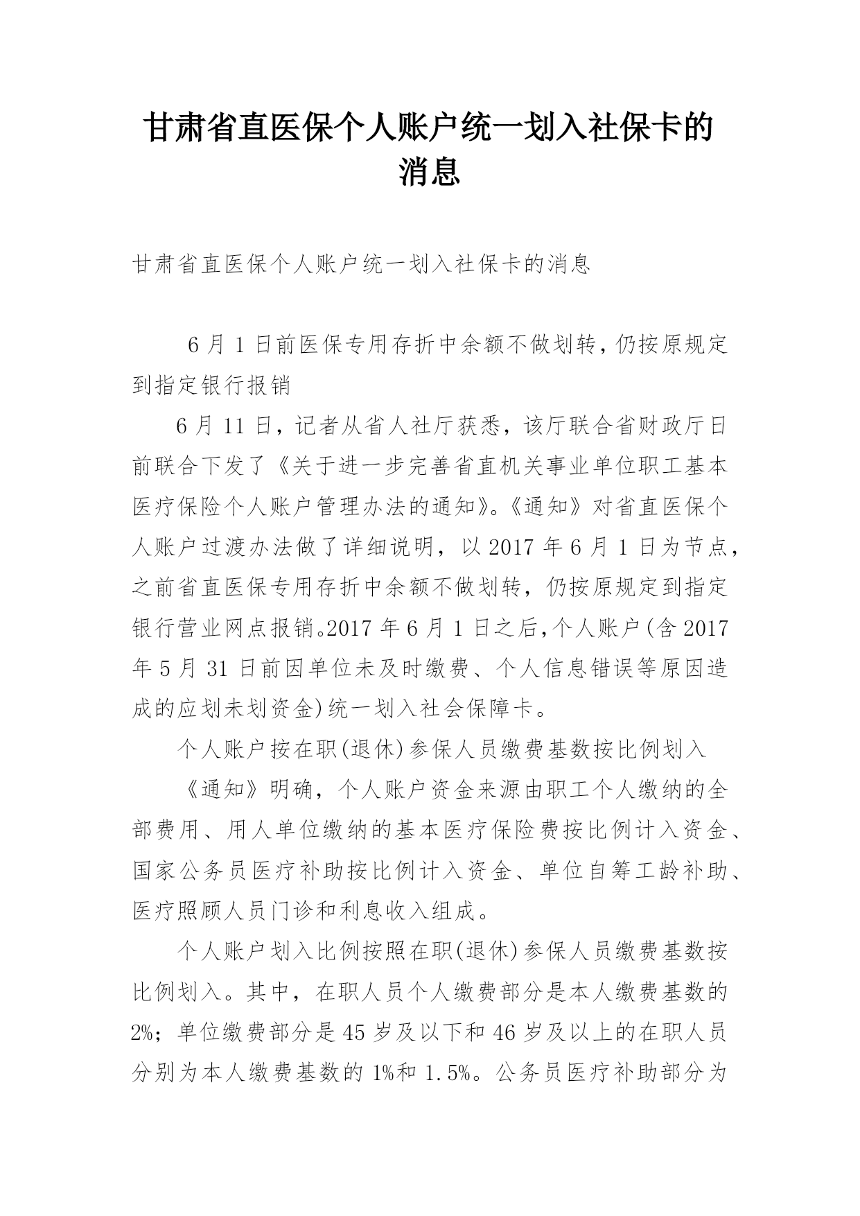 甘肃省直医保个人账户统一划入社保卡的消息.docx