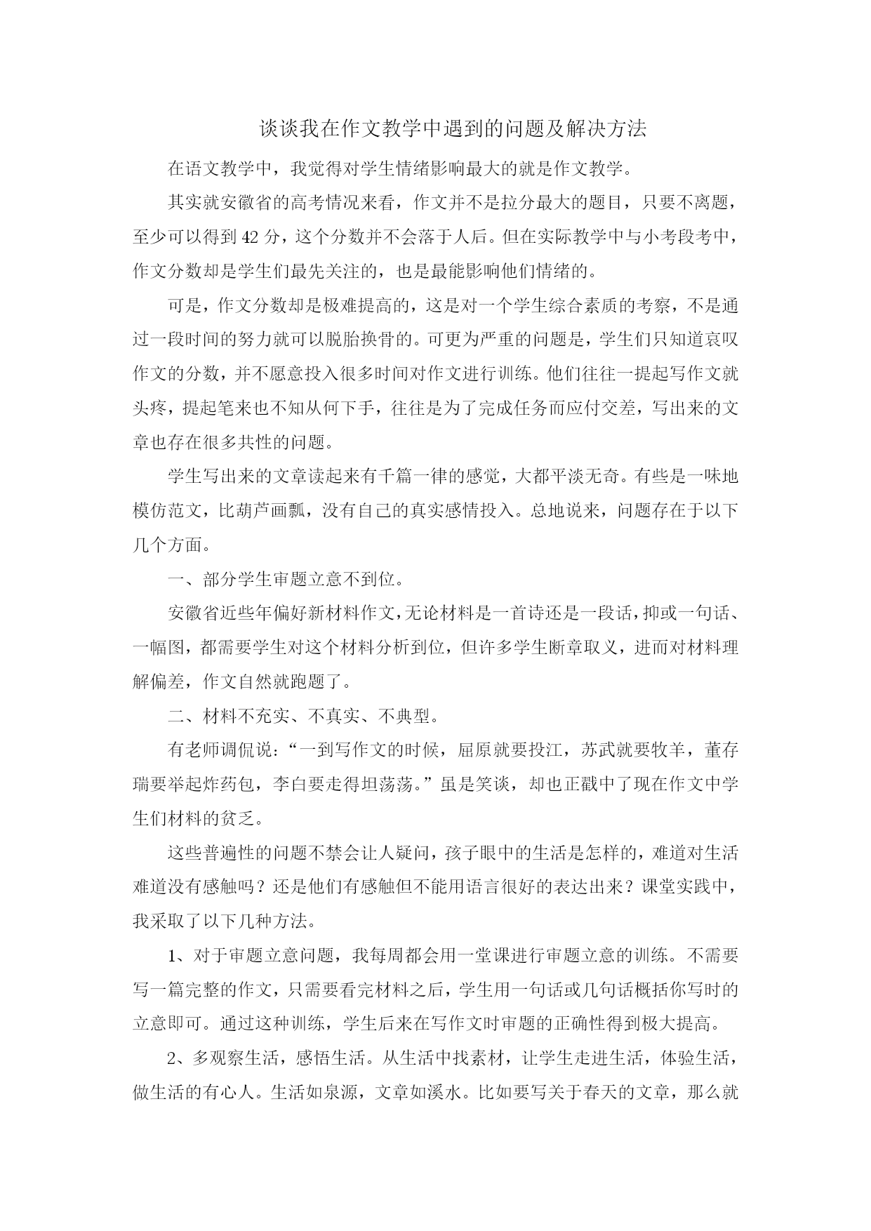 谈谈在作文教学中遇到的问题及解决方法.doc