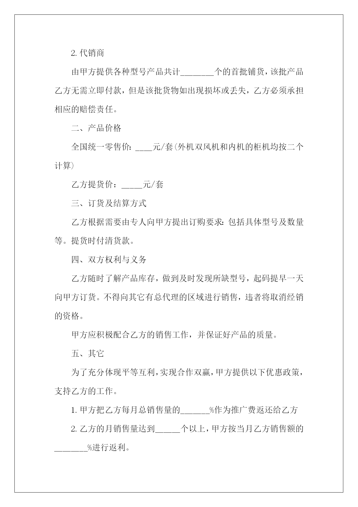 标准产品购销合同格式范本标准产品购销合同格式范本合同编号:__________甲方:________________________乙方:________________________甲方拥有自主知识产权的专利产品__________现乙方愿以自身优势帮助甲方开展该产品的销售。经甲乙双方友好协商本着平等互利的原则达成如下协议:一、合作方式1.经销商要求:管理规范有一定规模的销售、服务网点首批进货________套以上其中外机________套内机________套。