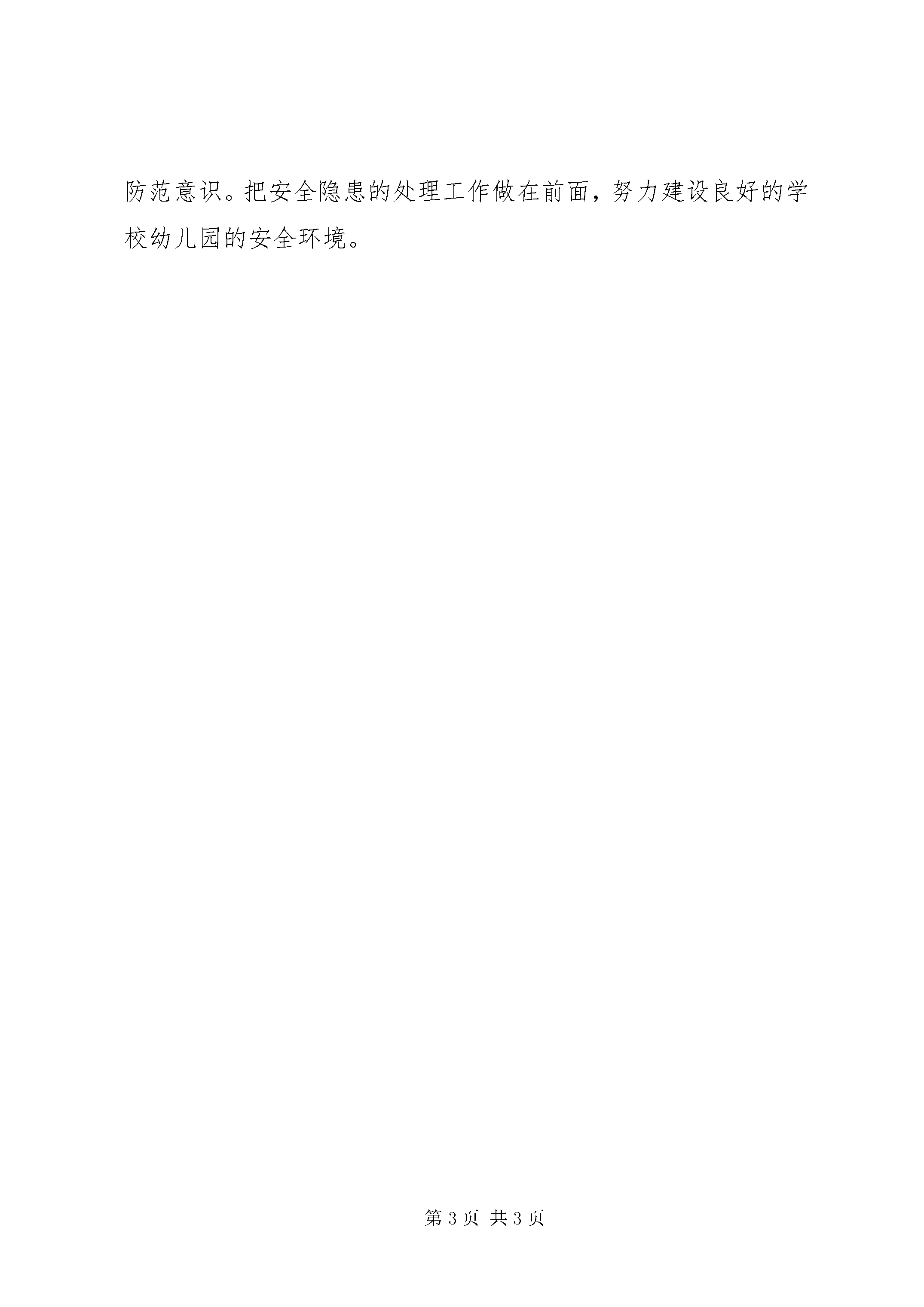 学校幼儿园安全工作汇报岳家庄乡教育办公室始终把学校的安全、学生安全工作做为头等大事来抓,认真做好学生的安全教育和防范工作,加大排查力度,力求整改落实出成效。注重实效,严格制度。把安全工作做深做细。为师生创造良好的安全环境。开学初,我们成立了学校安全管理检查工作领导小组,学校安全管理工作小组在学校安全自查的基础上,对全乡的中小学幼儿园校舍、围墙、厕所、用电、水井、仪器设备、化学药品、建筑施设及学校周边环境等进行全面排查治理,经查,主要存在有个别学校、幼儿园交通要道无警示标志,对存在的问题,及时分解任务到学校
