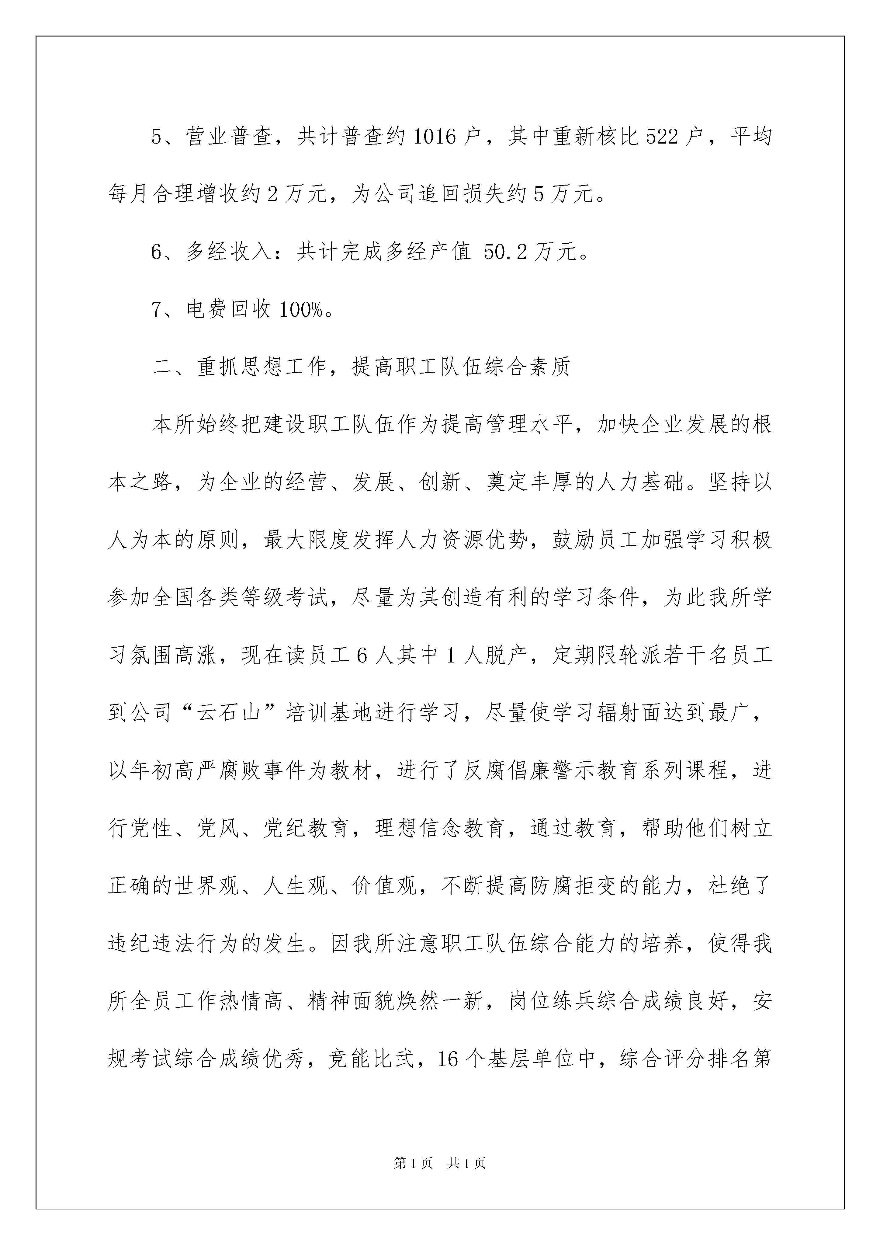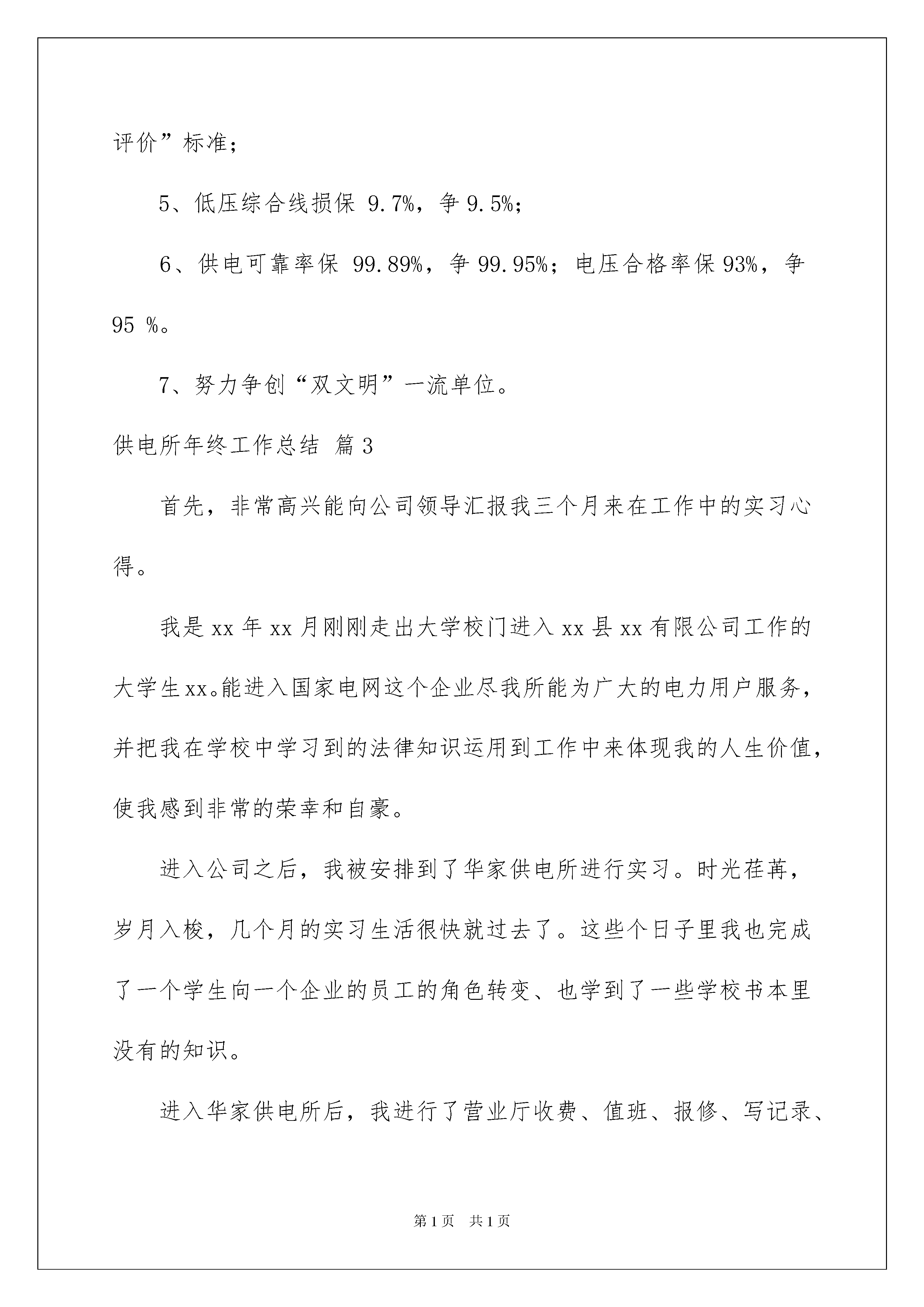 供电所年终工作总结供电所年终工作总结20xx年是国家电网公司深入推进“两个转变”、全面加强“三个建设”进一步明确加快建设坚强智能电网、全面构建“三集五大”管理体系的一年。是公司系统优化配置能源资源、周密做好应对各种风险和挑战的一年同时也是全面完成“十一五”规划目标任务决战的一年、谋划布局“十二五”发展、夯实坚强智能电网基础的起步之年。是支公司全面落实“抓基础、控风险、防事故”推进安全生产“三项建设”和“三项行动”的一年。一年来我所在支公司“六届四次”职代会精神及支公司各级领导的