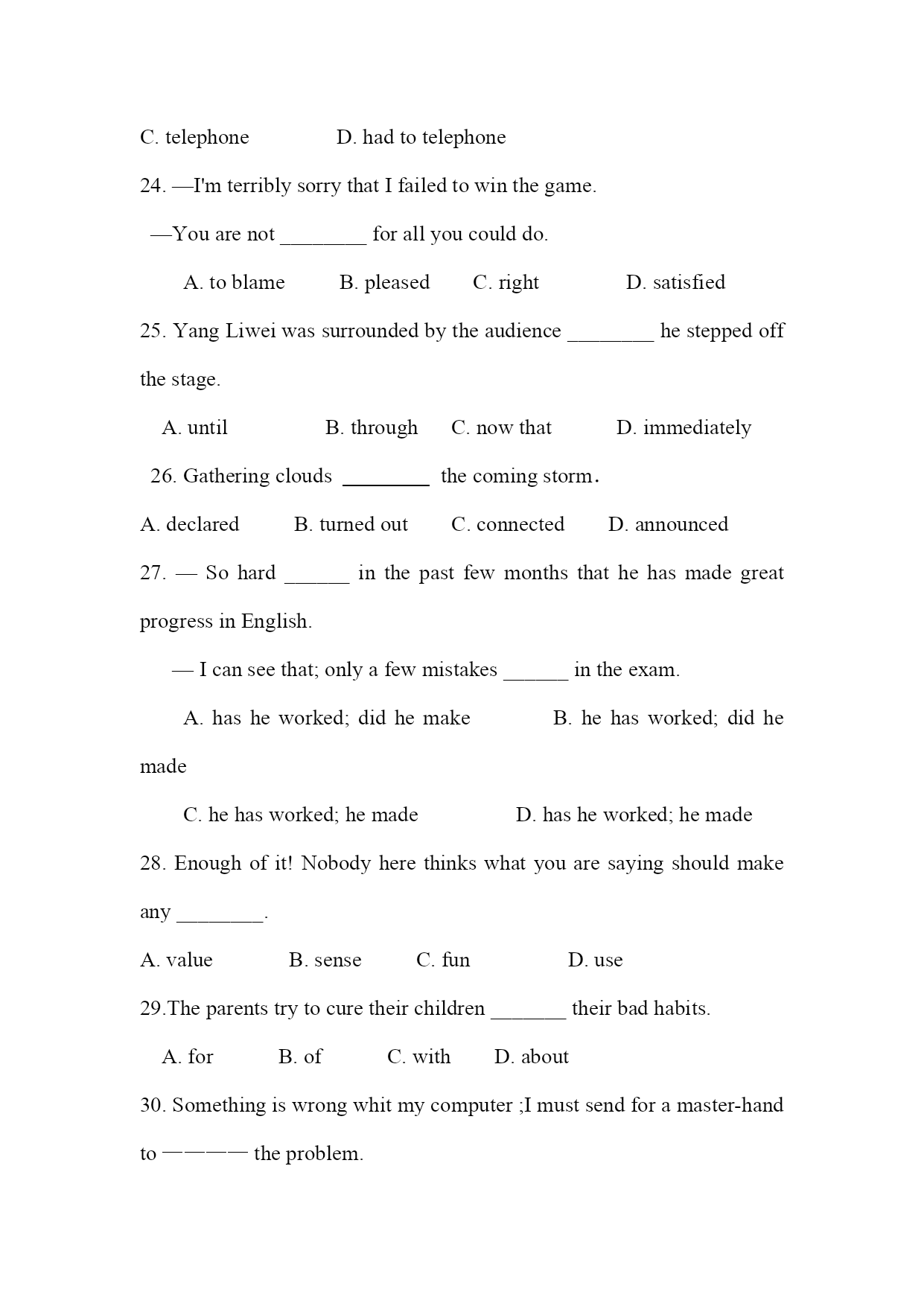 用心爱心专心新课标高二英语必修5第一单元测试题班级__________姓名__________座号__________得分__________I.单项填空1.InsomeMuslincountries,womendonot_______theirfacesinthepublic.A.revealB.uncoverC.exposeD.disclose2.IfItakethismedicinetwiceaday,itshould_____mycold.A.recover,B.holdC.rest