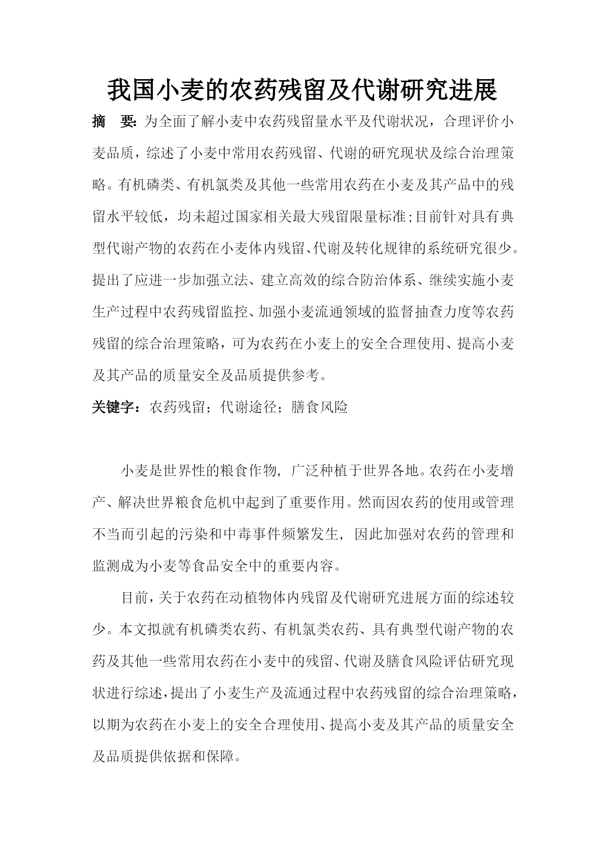 食品原料安全论文-我国小麦的农药残留及代谢研究进展.docx