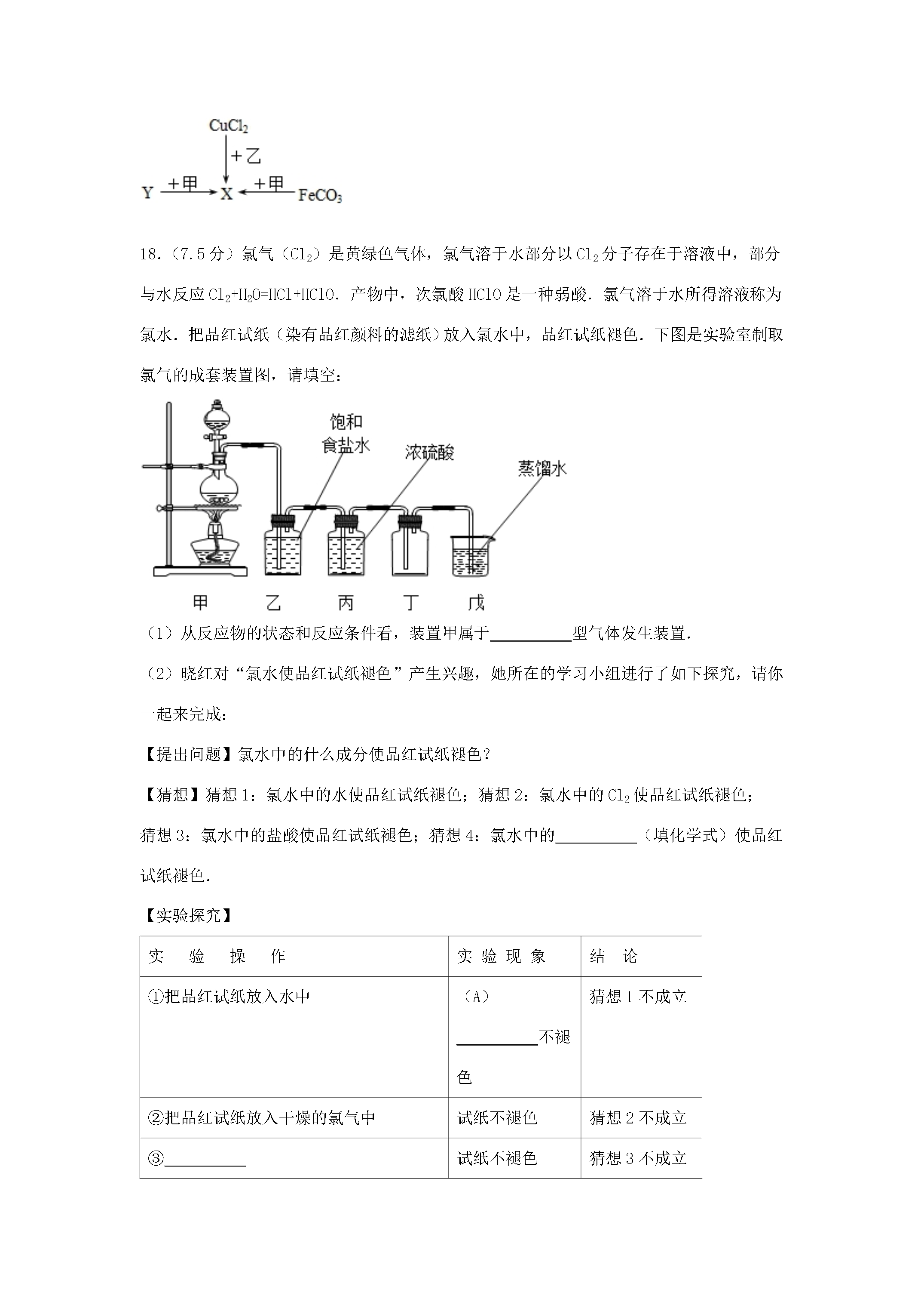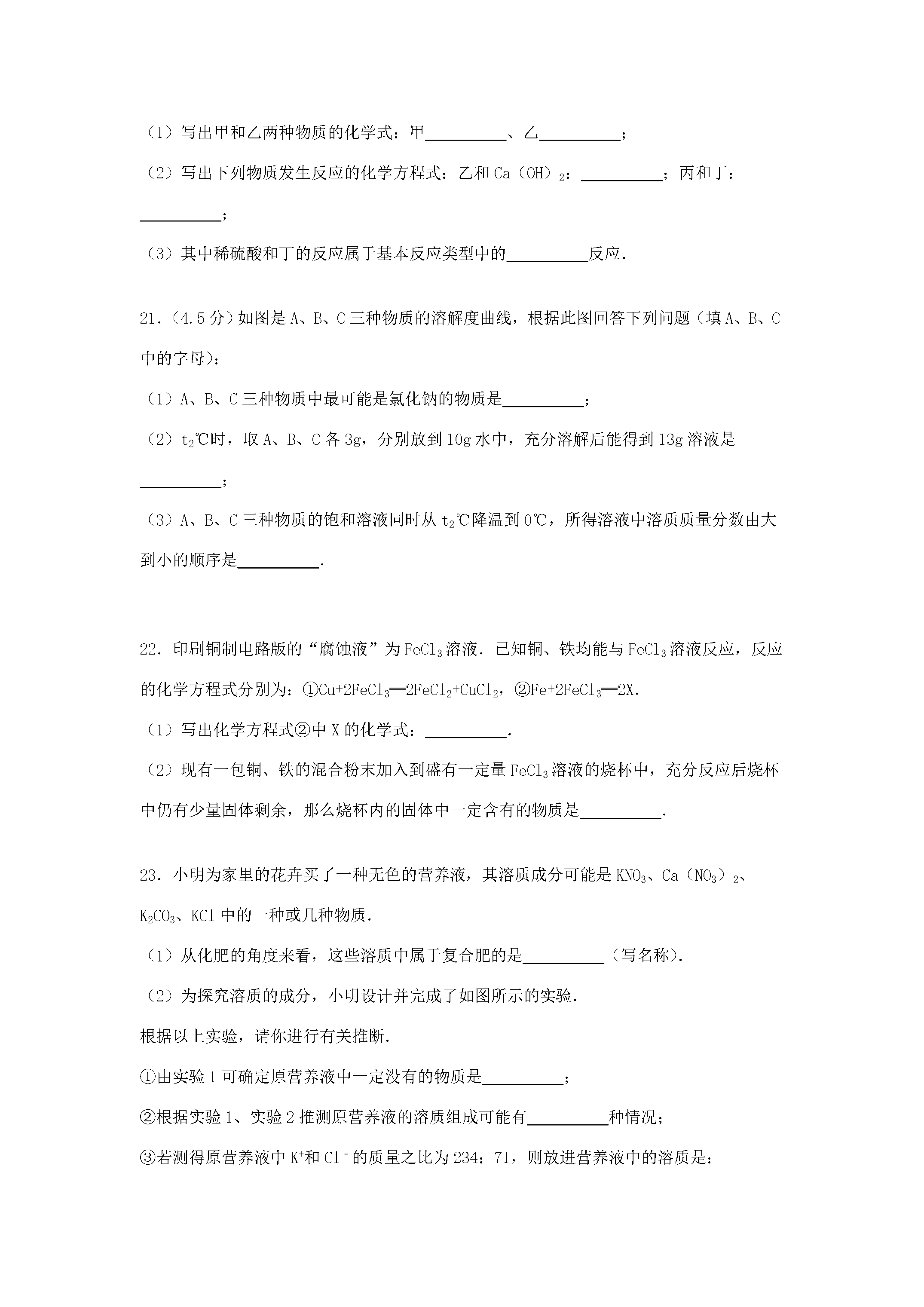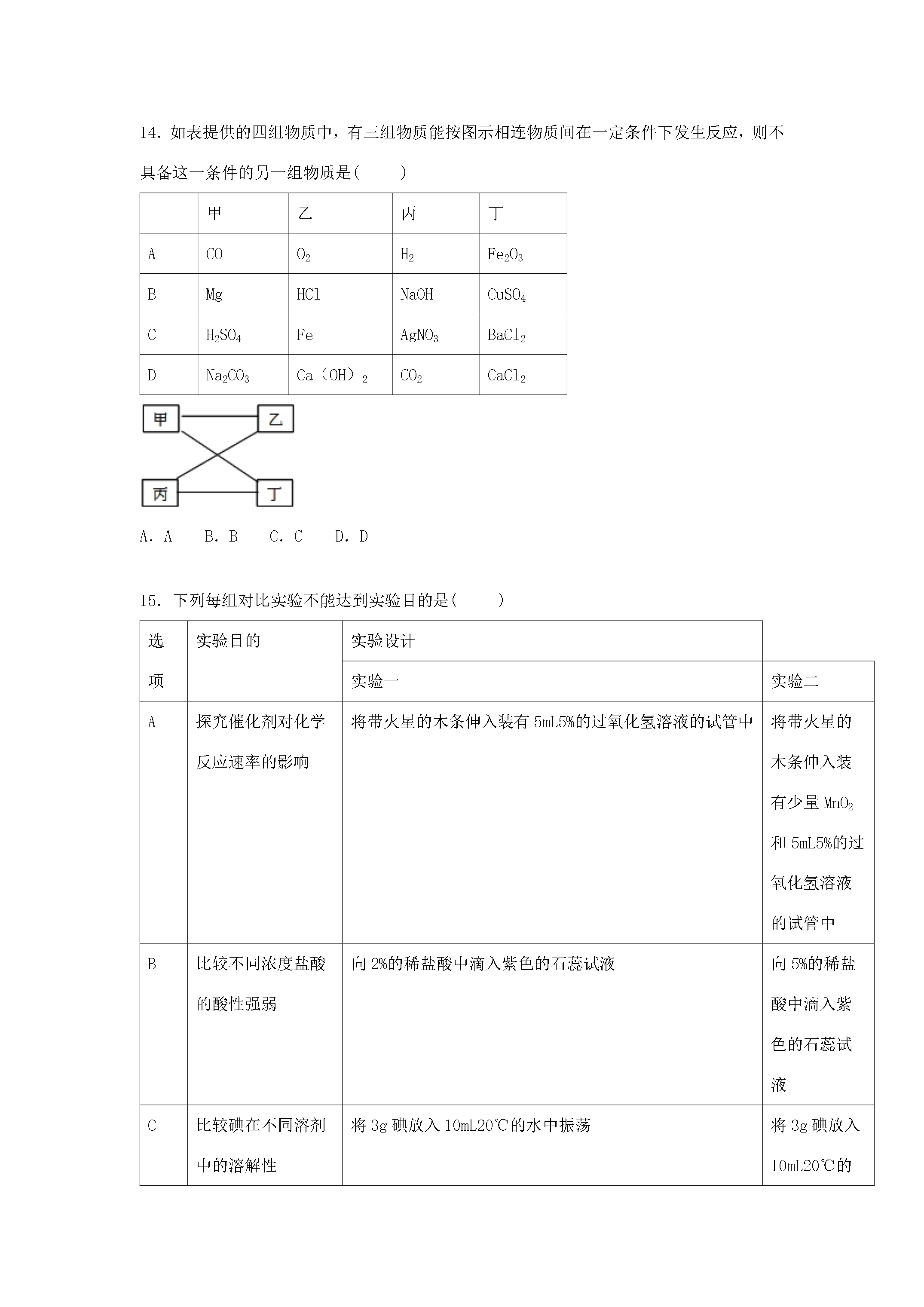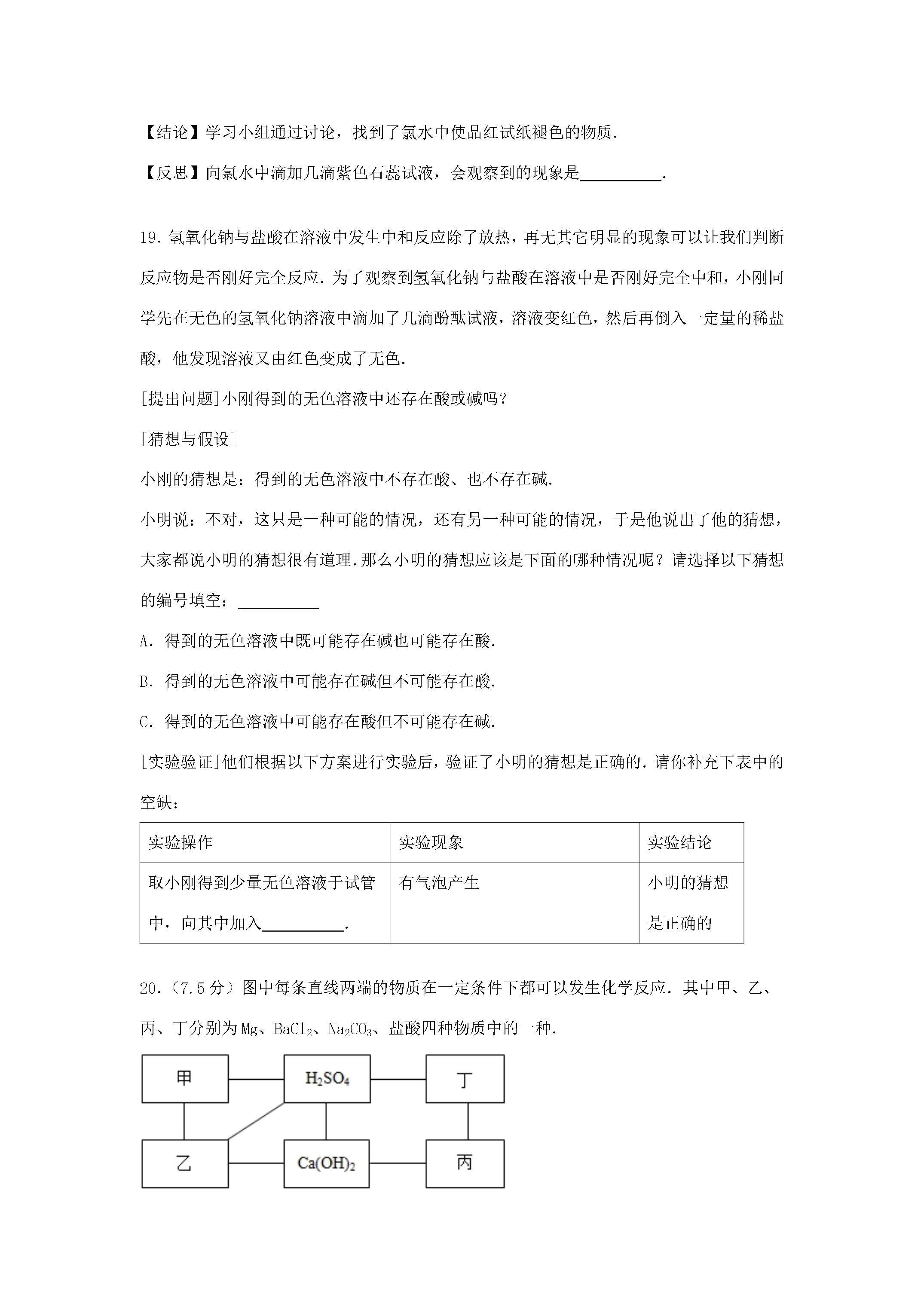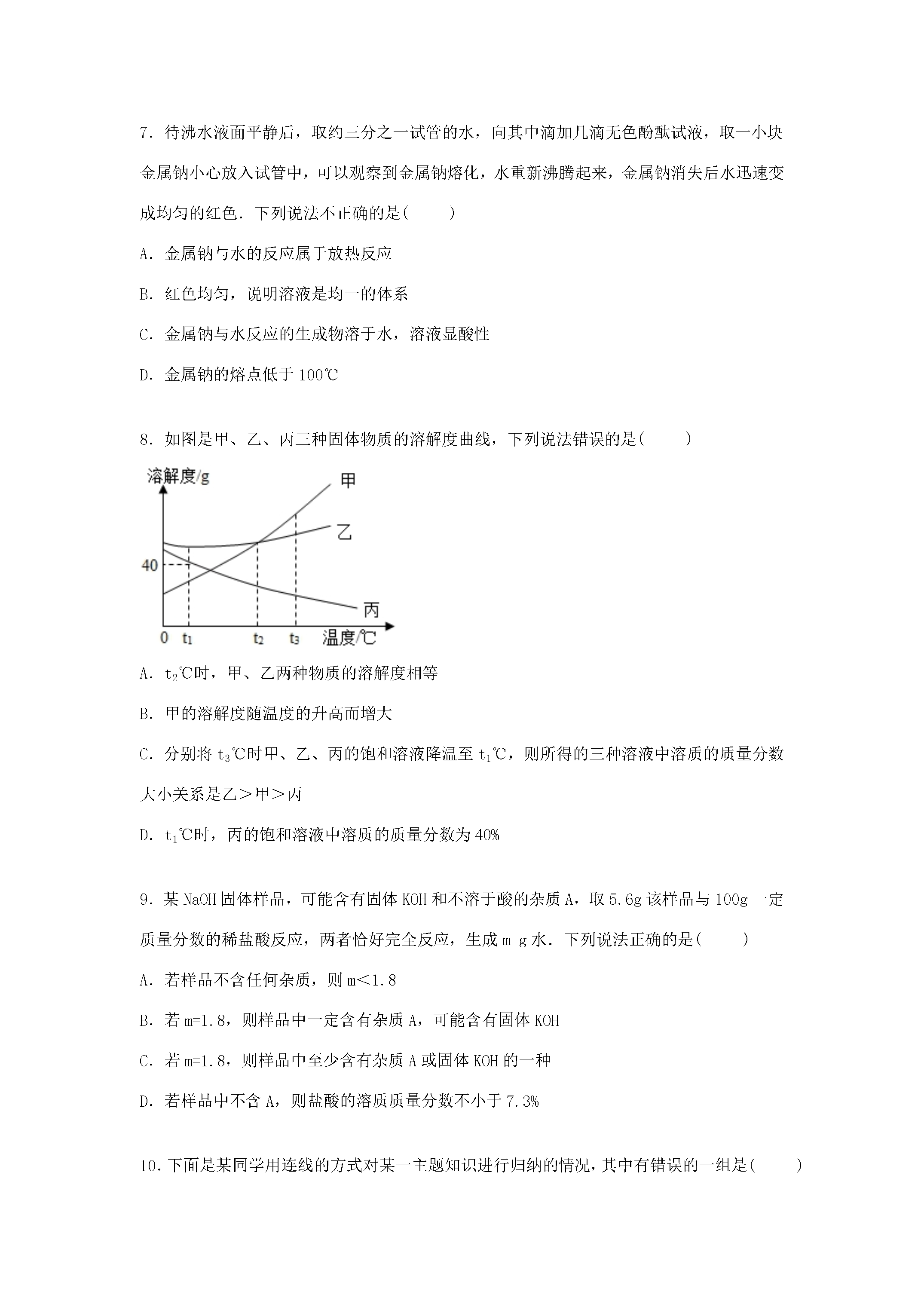 2015-2016学年湖北省荆门市钟祥市九年级(上)第二次抽考化学试卷一、选择题(每题只有1个正确选项每题2分共计30分将答案填在答题卡中)1.在化学反应中一定发生变化的是()A.原子种类B.分子种类C.元素种类D.物质状态2.李飞同学记录的下列实验数据中不合理的是()A.用pH试纸测得某溶液的pH为5.3B.用10ml的量筒量取7.5ml水C.测得某粗盐中NaCl的质量分数为92.58%D.用托盘天平称得食盐16.8g3.向氢氧化钙的饱和溶液中加入下列物质不可能使溶液的pH有明显改变
