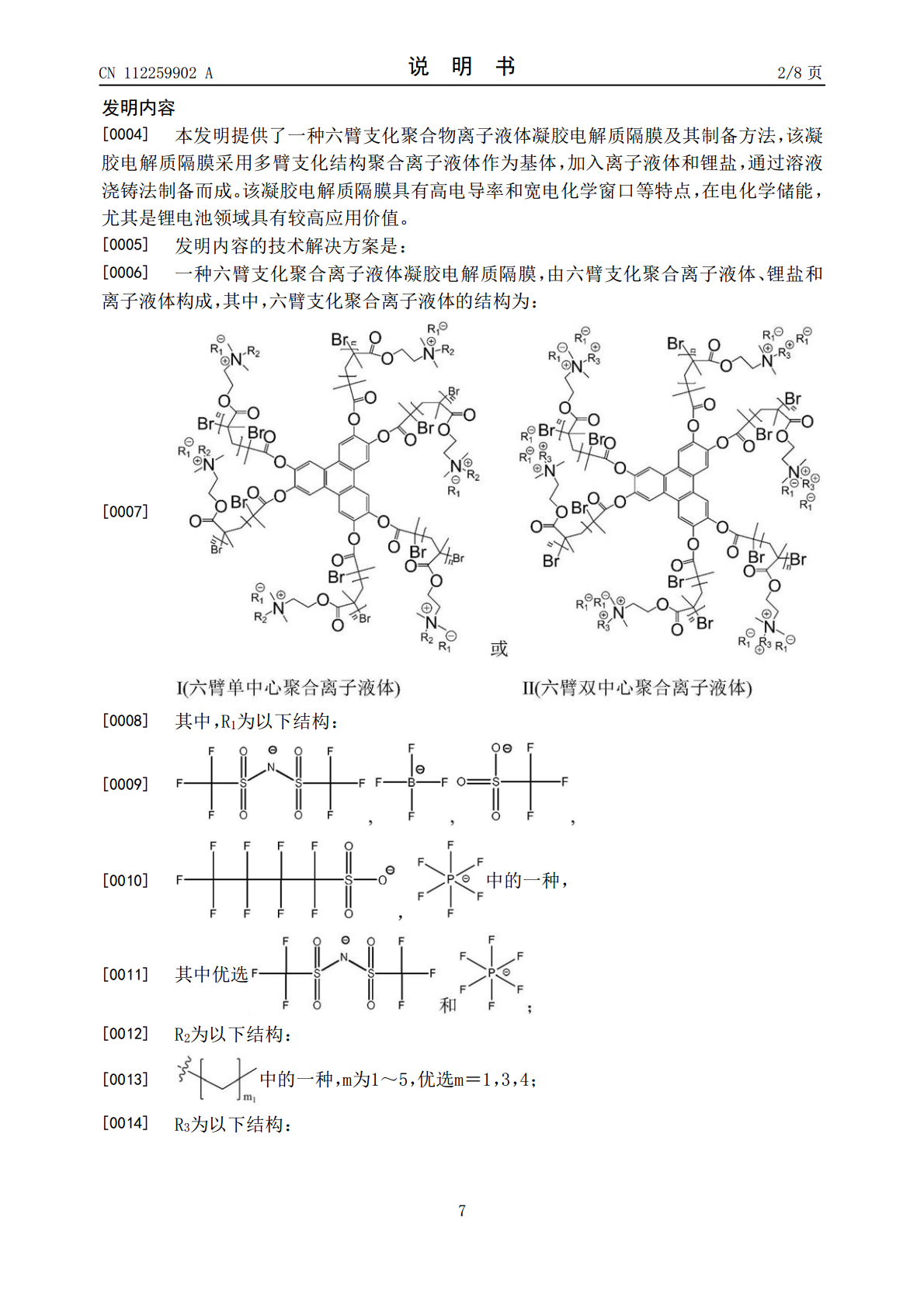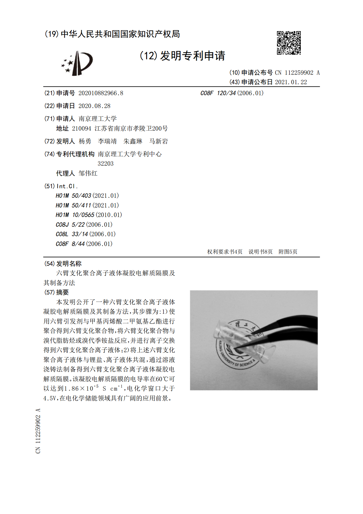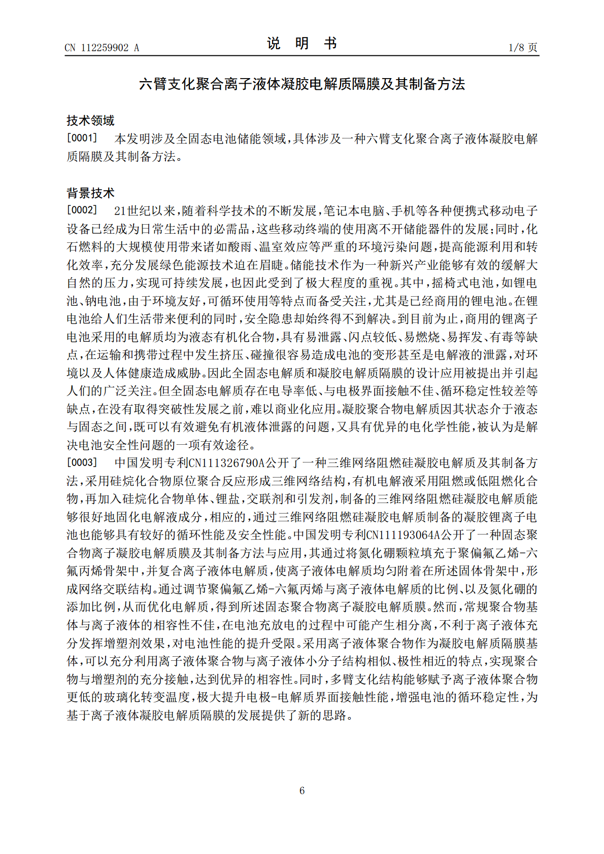 六臂支化聚合离子液体凝胶电解质隔膜及其制备方法.pdf