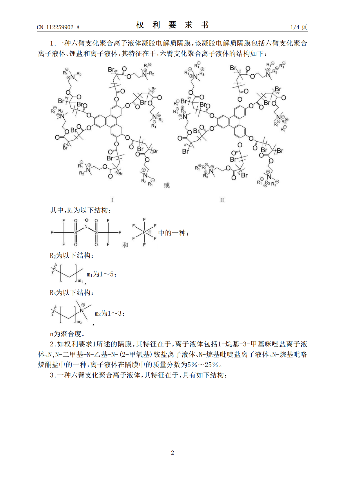 四臂支化聚合离子液体凝胶电解质隔膜及其制备方法.pdf