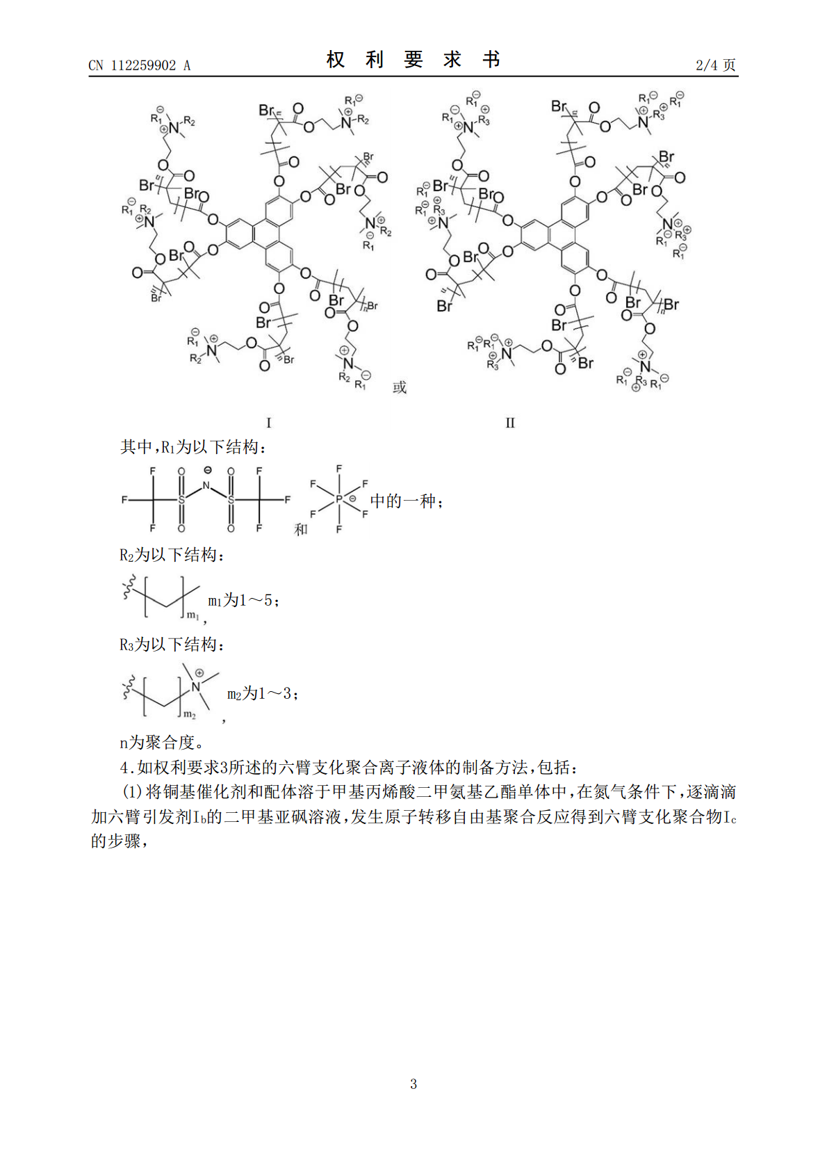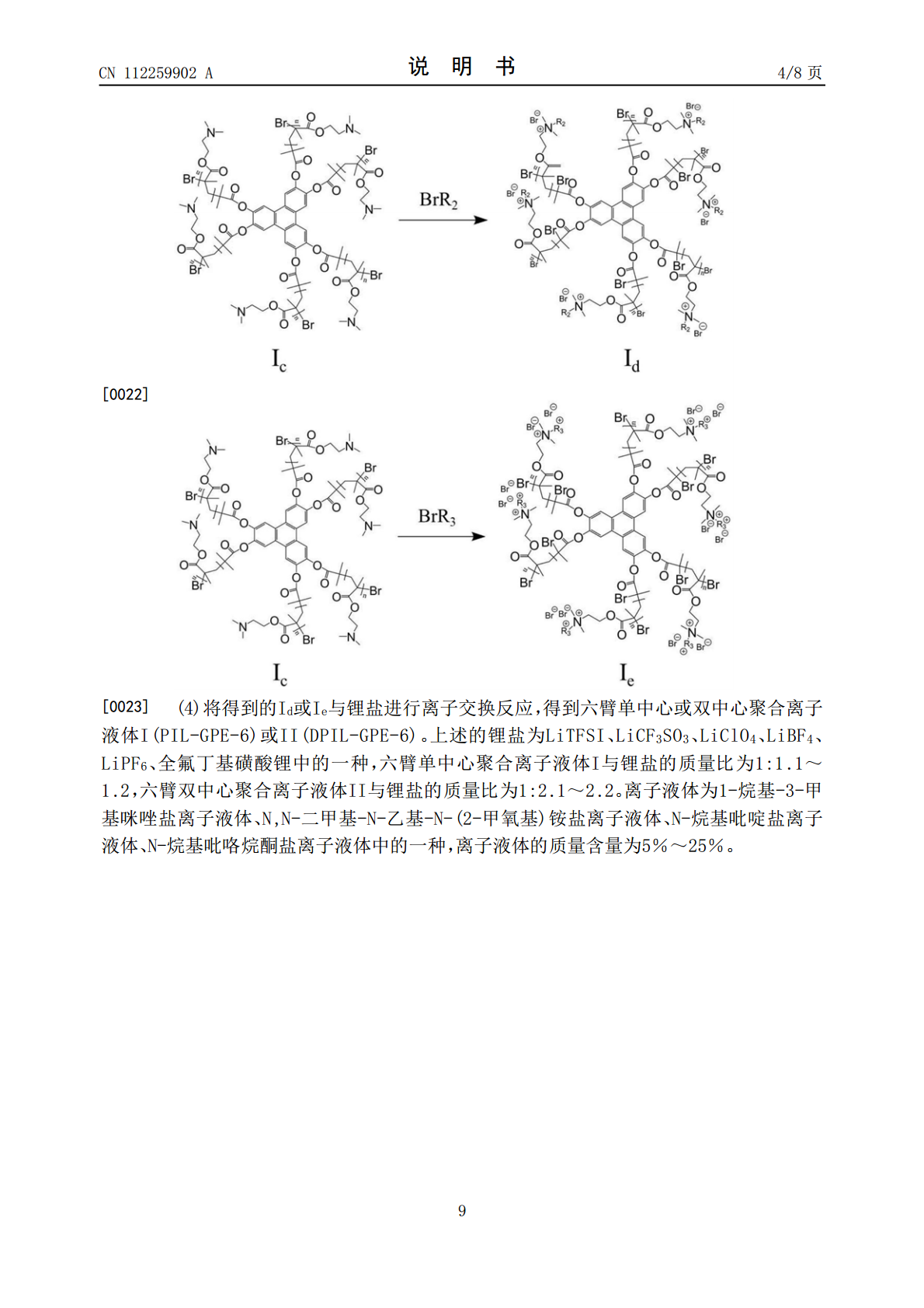 三臂支化聚合离子液体凝胶电解质及其制备方法.pdf