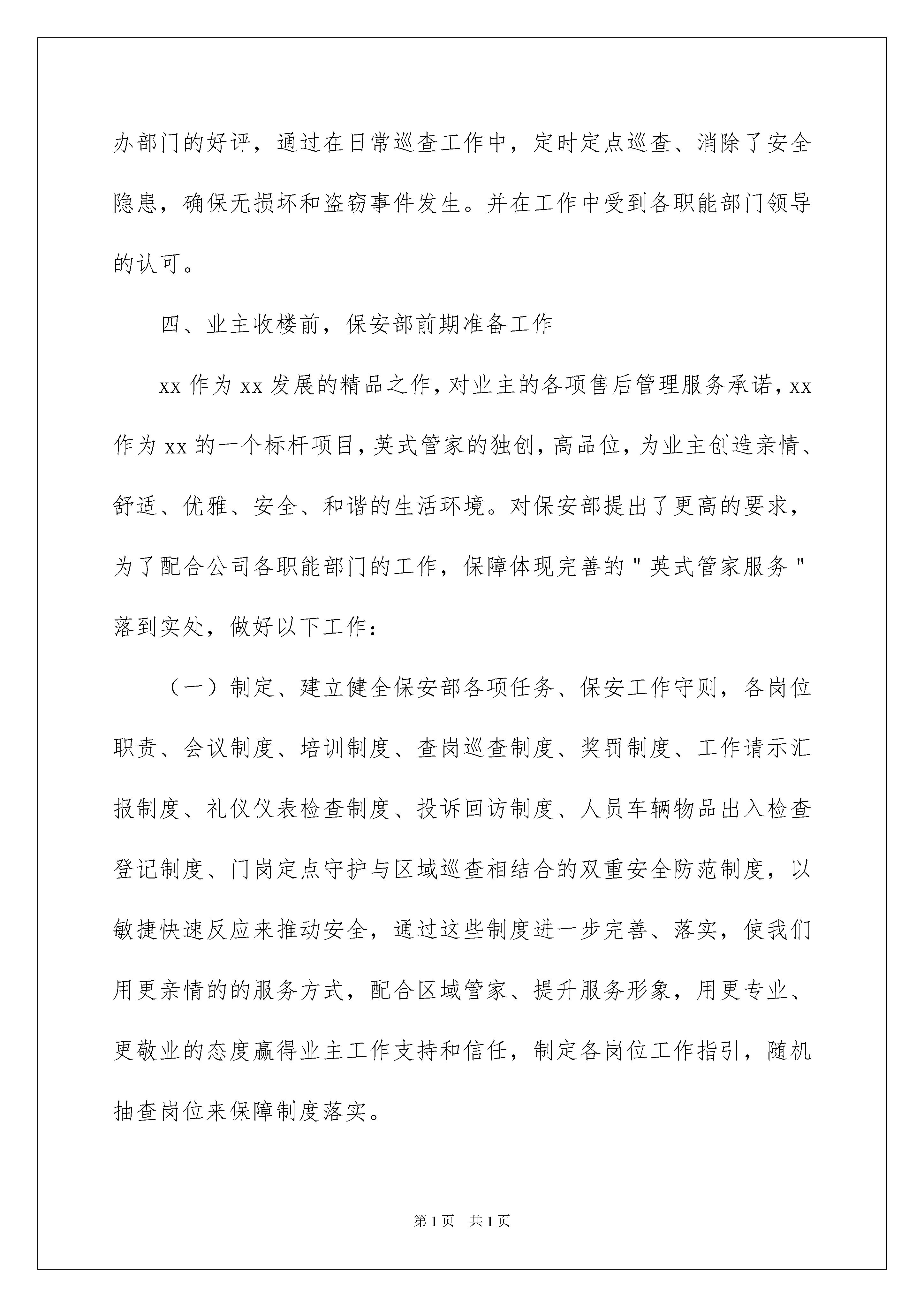 本文格式为Word版,下载可任意编辑第PAGE\*MERGEFORMAT5页共NUMPAGES\*MERGEFORMAT5页2022保安个人年终工作总结(原创)_年终保安工作总结保安工作的完成往往需要具备认真负责的态度,而我也能够始终牢记保安的职责并在能力方面得到了领导的认可,随着这一年的结束让我在保安工作中获得了综合素质的提升,能够取得这样的成就也与领导的支持息息相关,现对一年来完成的保安工作进行相应的总结。能够严格遵守公司规定且从未出现过缺勤的状况,想要在工作中取得进展自然要严格要求自己才