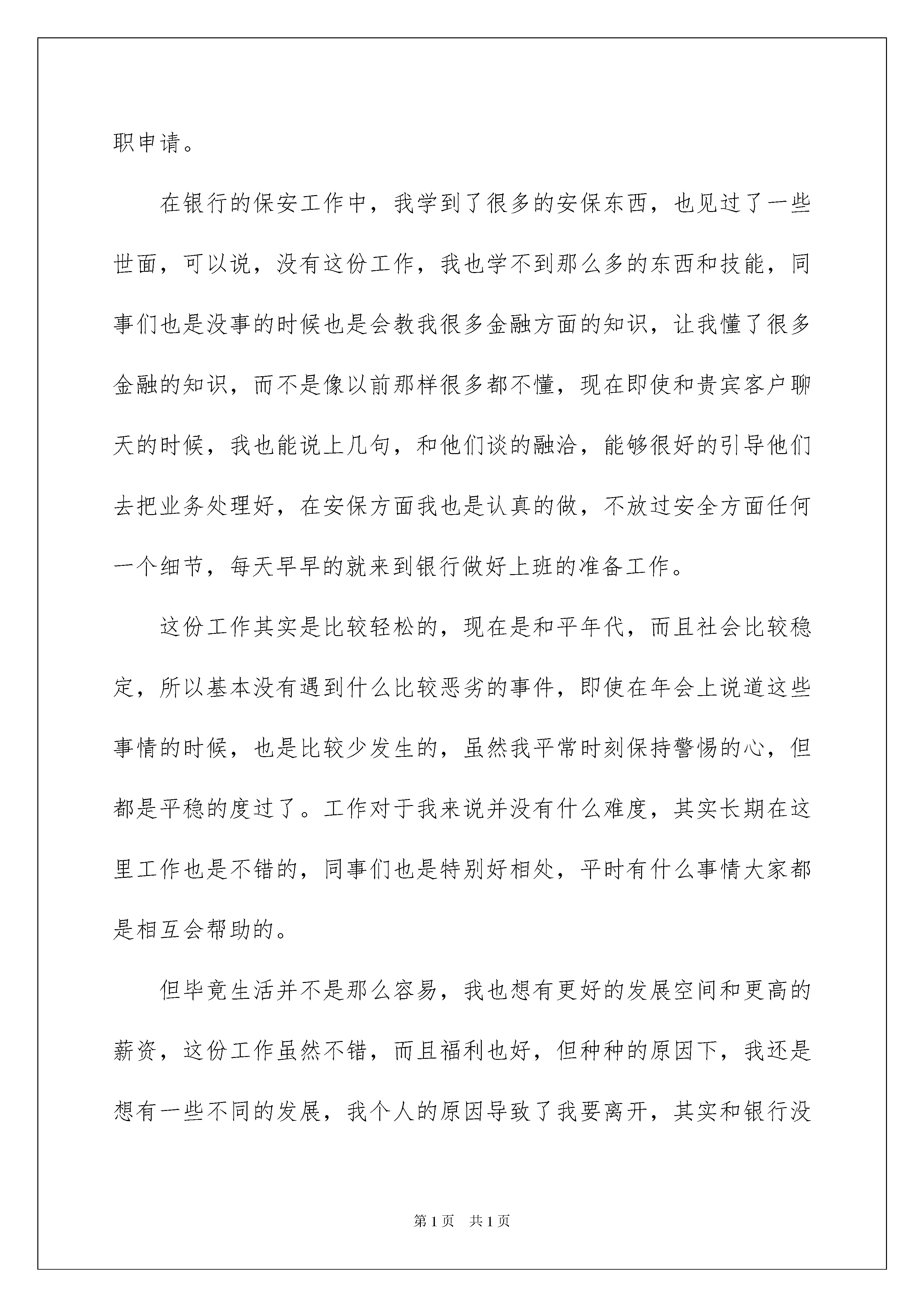 2022保安的辞职报告模板锦集8篇保安的辞职报告模板锦集8篇在当下社会我们都不可避免地要接触到报告我们在写报告的时候要注意逻辑的合理性。写起报告来就毫无头绪?下面是我整理的保安的辞职报告8篇希望能够帮助到大家。保安的辞职报告