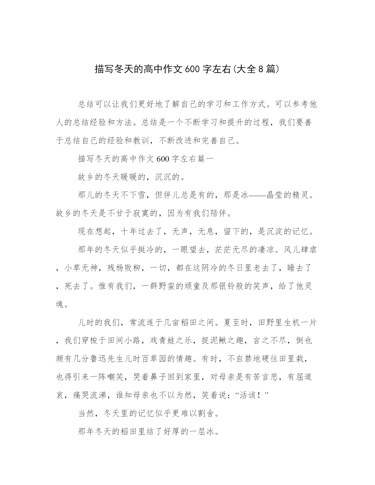 描写冬天的高中作文600字左右(大全8篇)总结可以让我们更好地了解自己的学习和工作方式。可以参考他人的总结经验和方法。总结是一个不断学习和提升的过程,我们要善于总结自己的经验和教训,不断改进和完善自己。描写冬天的高中作文600字左右篇一故乡的冬天暖暖的,沉沉的。那儿的冬天不下雪,但伴儿总是有的,那是冰——晶莹的精灵。故乡的冬天是不甘于寂寞的,因为有我们陪伴。现在想起,十年过去了,无声,无息,留下的,是沉淀的记忆。那年的冬天似乎挺冷的,一眼望去,茫茫无尽的凄凉。风儿肆虐,小草无神,残杨败柳,一切,都在这阴冷