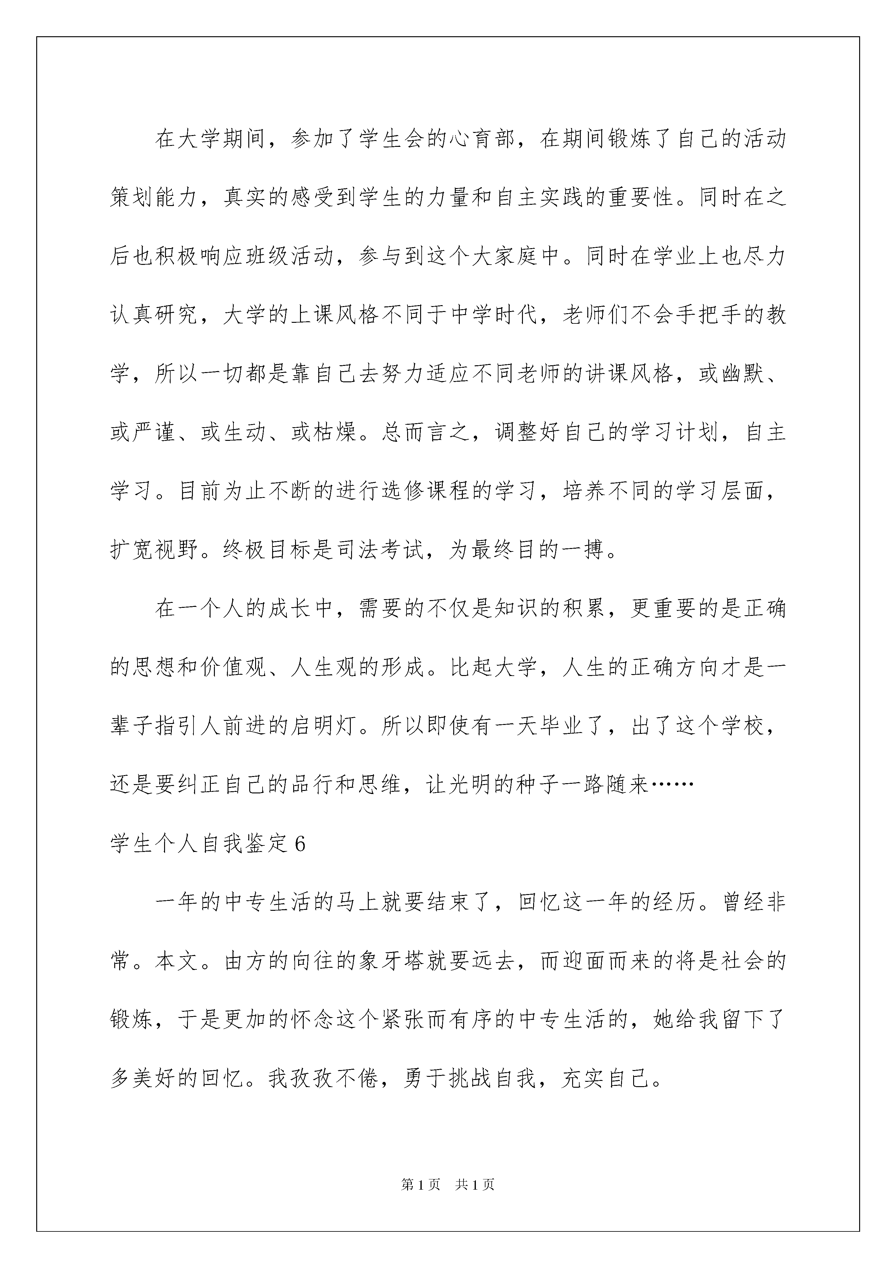 2022学生个人自我鉴定学生个人自我鉴定自我鉴定是个人在一个阶段的自我总结,自我鉴定可以提升对发现问题的能力,不如我们来制定一份自我鉴定吧。我们该怎么去写自我鉴定呢?下面是我整理的学生个人自我鉴定,欢迎阅读,希望大家能够喜欢。学生个人自我鉴定1忙碌的高等大专生活就在悄然中过去了,但她已成为我人生美好记忆的一大部分。这些日子有成功的喜悦,有失败的彷徨。