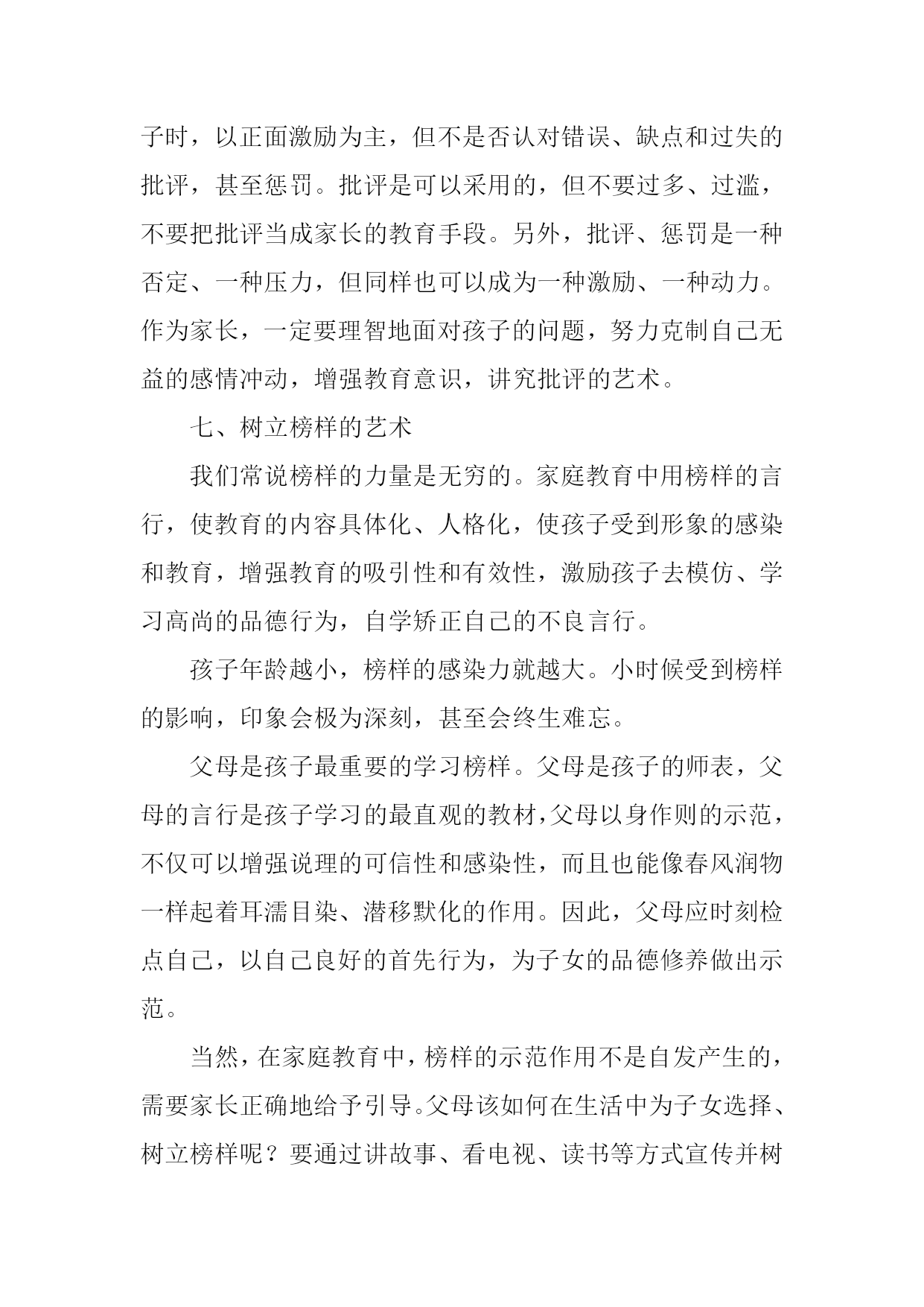 家庭教育的有效方法各位家长朋友,大家好!二十一世纪的今天,教育不仅仅是学校的责任,家庭、社会对教育的影响也越来越大,正如家教名言中所说:“构建学校教育与家庭教育,社会教育相互依靠,协调发展的格局,是建立现代教育制度的核心内容。”因此学校教育必须改变疏远于社会的封闭的教育体系,争取得到社会组织和各位家长的支持配合,形成“三结合”的教育网络,提高育人效果。下面我就如何做好家庭教育提出建议。一、在家庭教育中,最常用的方式是交谈。交谈的质量,跟交谈的艺术有密切关系。交谈,是在民主和谐的气氛中,家长与孩子之间的娓娓