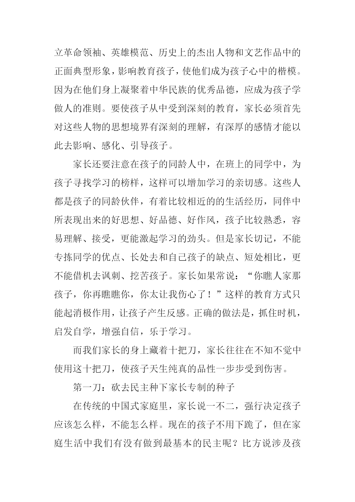 校长专题讲座之三家庭教育的有效方法各位家长朋友,大家好!二十一世纪的今天,教育不仅仅是学校的责任,家庭、社会对教育的影响也越来越大,正如家教名言中所说:“构建学校教育与家庭教育,社会教育相互依靠,协调发展的格局,是建立现代教育制度的核心内容。”因此学校教育必须改变疏远于社会的封闭的教育体系,争取得到社会组织和各位家长的支持配合,形成“三结合”的教育网络,提高育人效果。下面我就如何做好家庭教育提出建议。一、在家庭教育中,最常用的方式是交谈。交谈的质量,跟交谈的艺术有密切关系。交谈,是在民主和谐的气氛中,家长