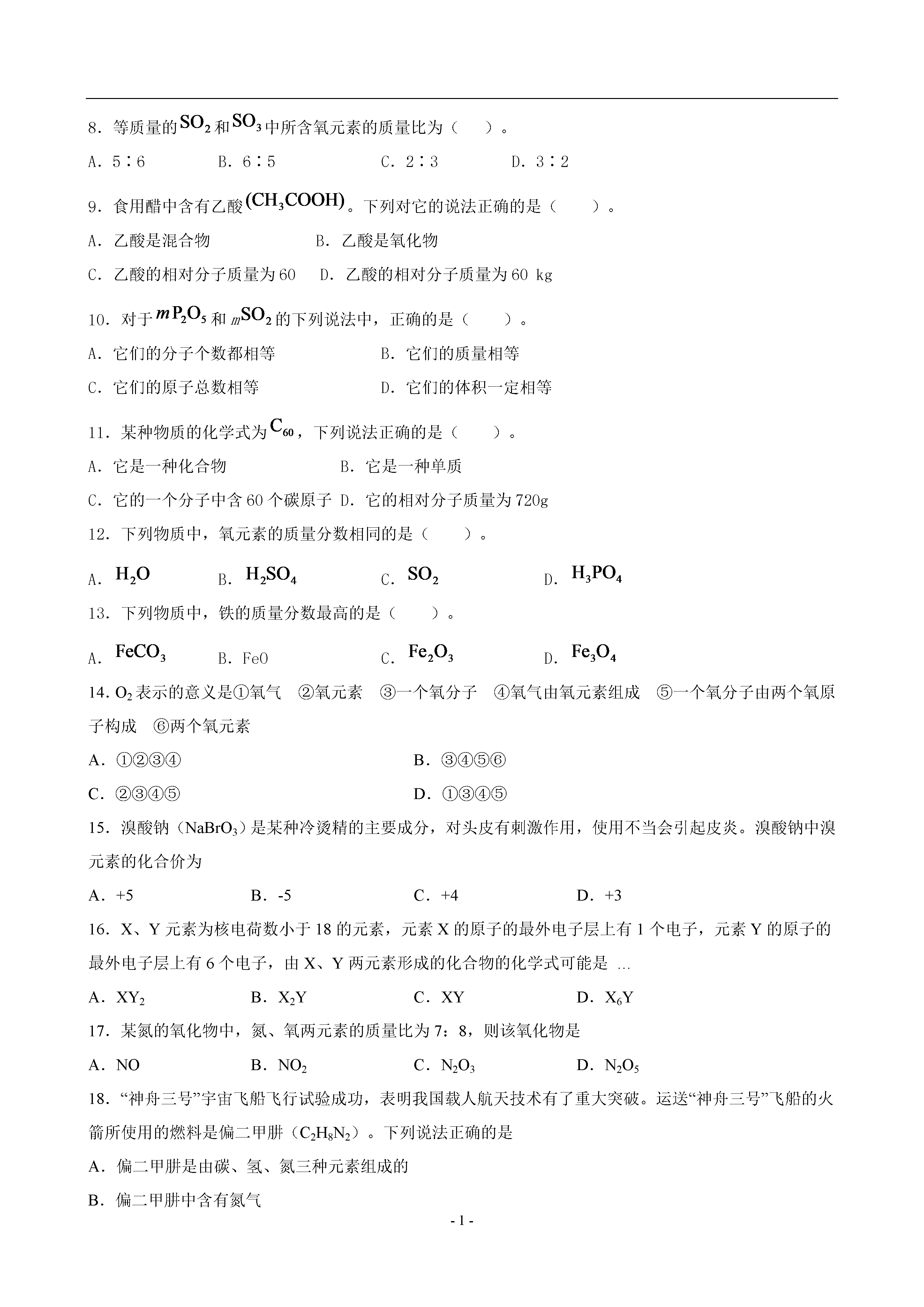 学案-全国-2010_九年级化学中考复习学案 物质构成的奥秘:化学式和化合价.rar