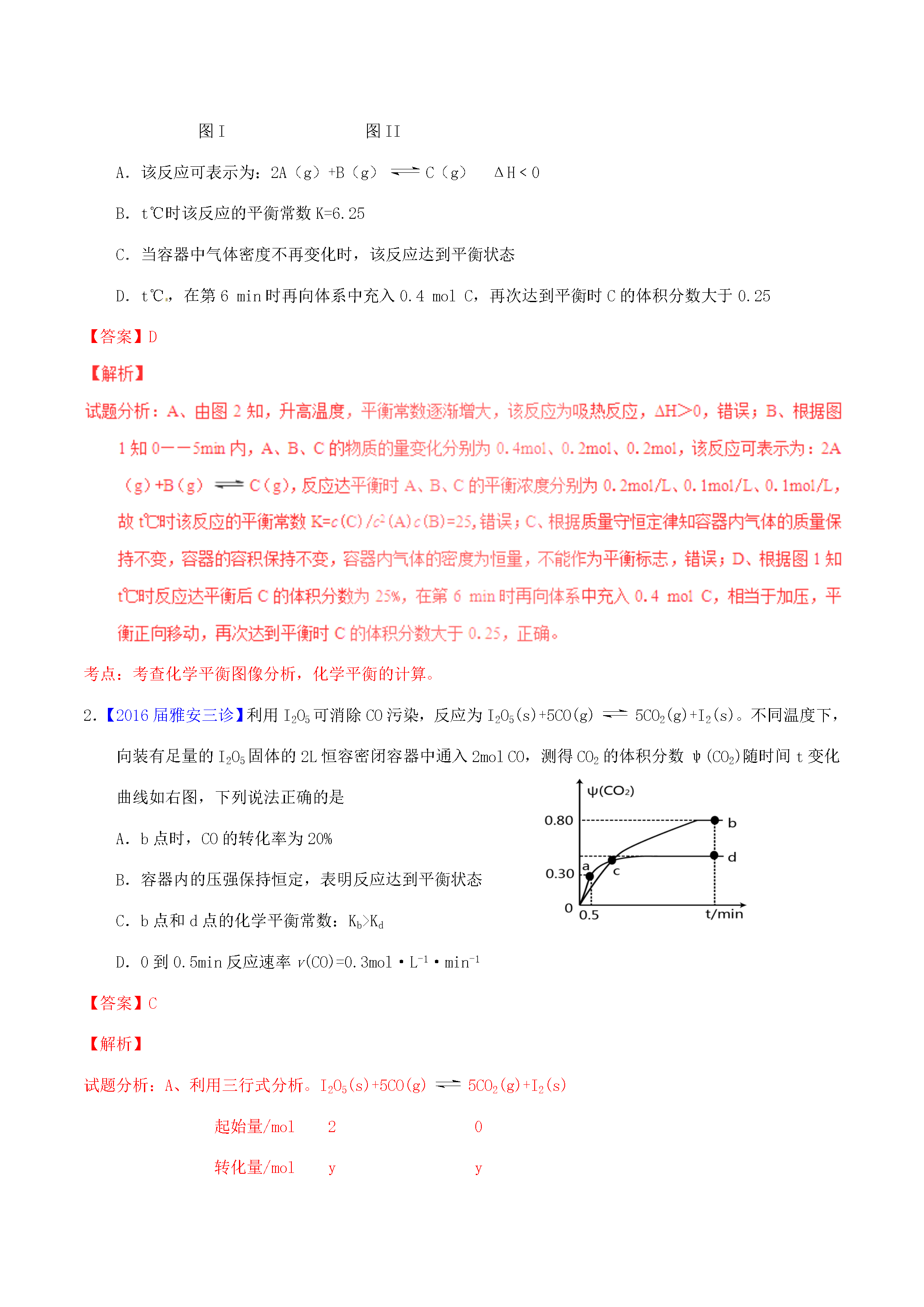 专题07化学反应速率与化学平衡【母题来源】2016四川卷【母题题文】一定条件下,CH4与H2O(g)发生反应:CH4(g)+H2O(g)CO(g)+3H2(g),设起始=Z,在恒压下,平衡时(CH4)的体积分数与Z和T(温度)的关系如图所示。下列说法正确的是A.该反应的焓变△H>0B.图中Z的大小为a>3>bC.图中X点对应的平衡混合物中=3D.温度不变时,图中X点对应的平衡在加压后(CH4)减小【答案】A【试题解析】A、从图分析,随着温度升高甲烷的体积分数逐渐减小,说明升温平衡正向移动,则正反应为吸热反