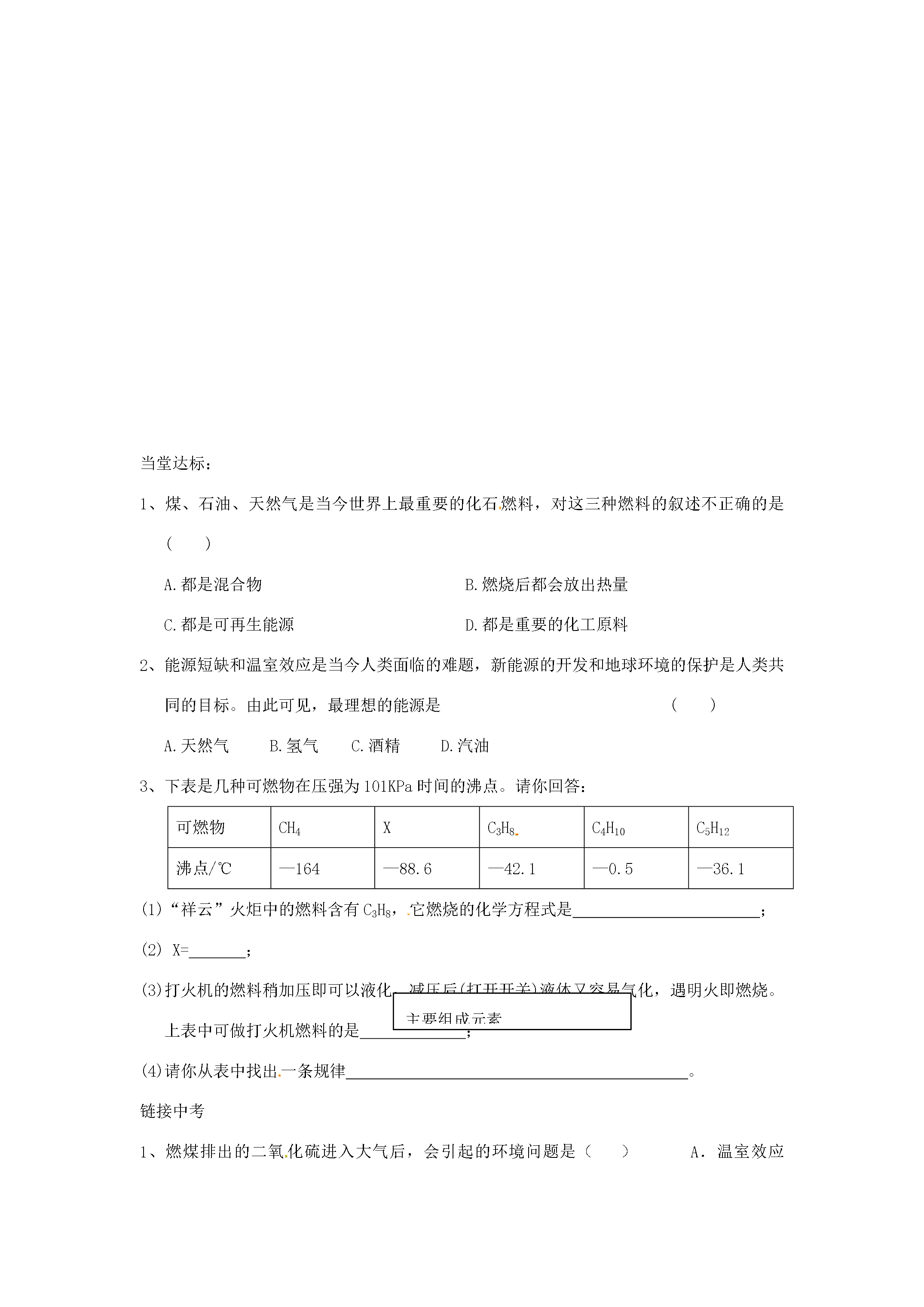九年级化学 4.3《化石燃料及其利用》学习预案(无答案) 鲁教版.doc