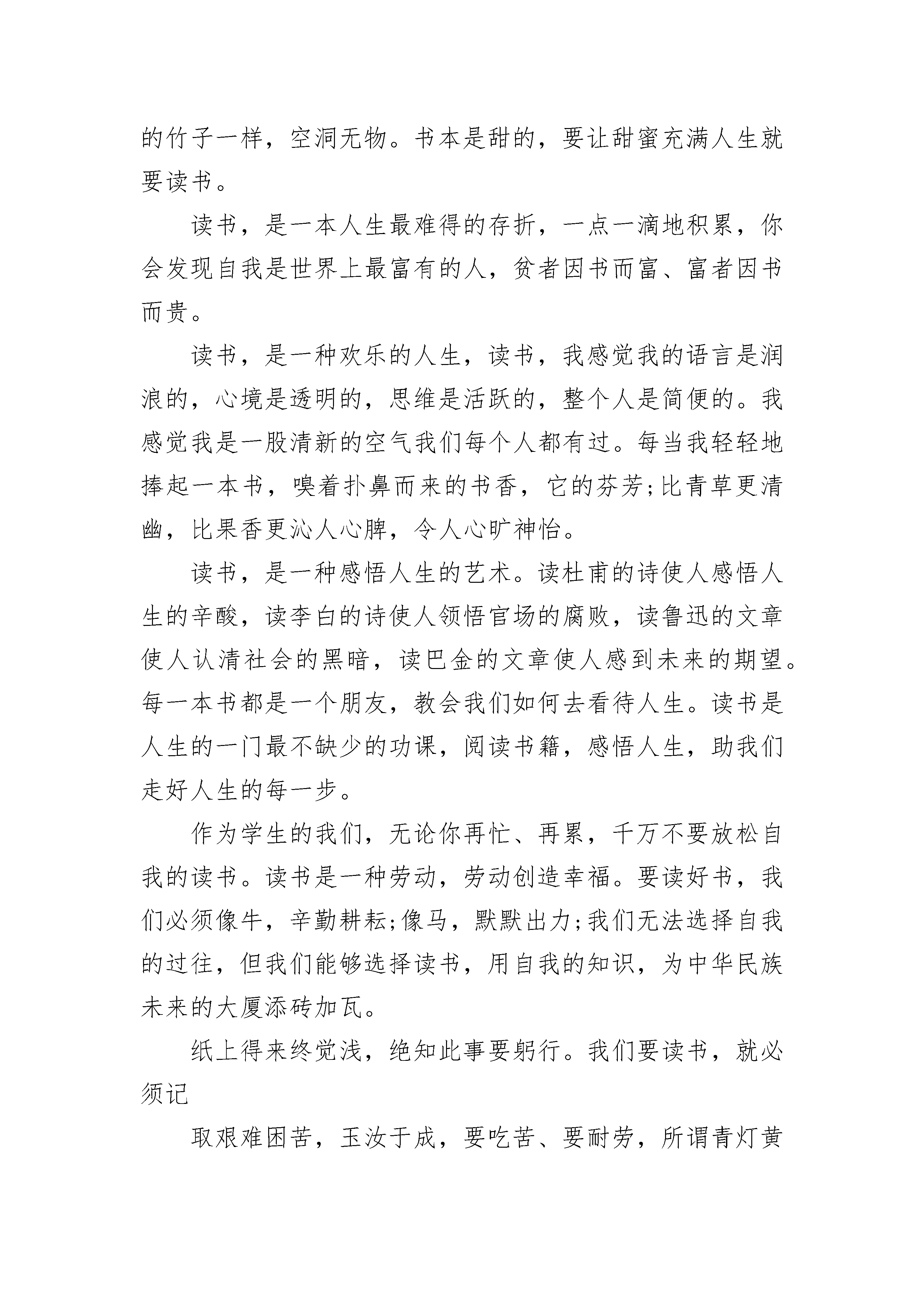 读书伴我行小学生优秀作文范文每个人都有自己的读书故事,我的读书故事就是从讨厌变成了爱不释手。一起来看一下我的读书故事吧。我自从认识了汉字后,不喜欢看书,只喜欢看一些漫画书和动画片。一天,妈妈从外面回来,手中竟捧着一本学校宣布的必读书,并且这个星期必须读完。我心想:“这么厚的一本书还不把我给看死。”妈妈一转身,我就想出了一个办法,在必读书中放一本漫画书,用必读书的皮挡住了漫画书,这样妈妈就以为我正在津津有味地看必读书呢。“我又因为下面一件事变成了一有时间就看书了”。最近,妈妈又买了一本《淘气包马小跳系列之四