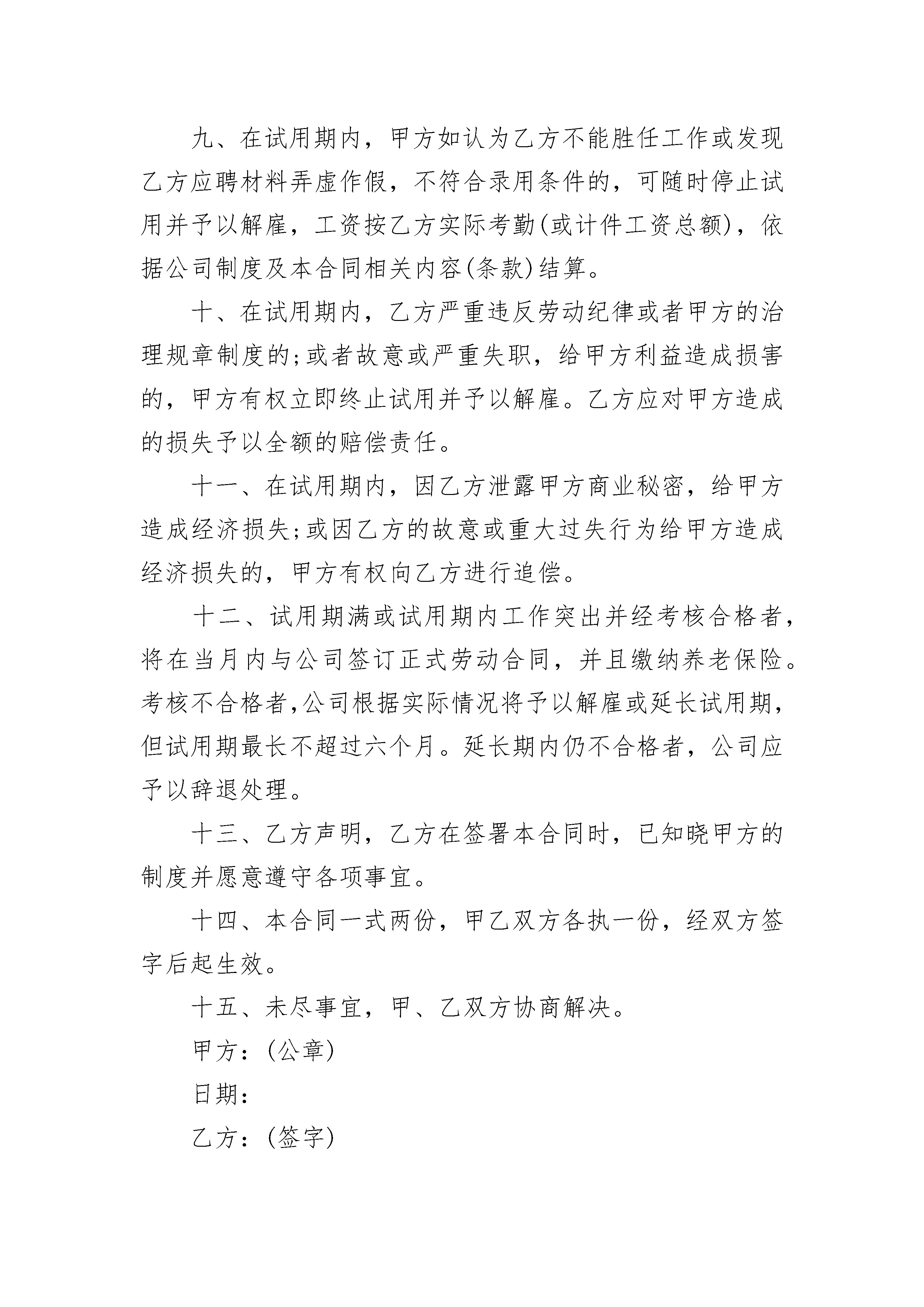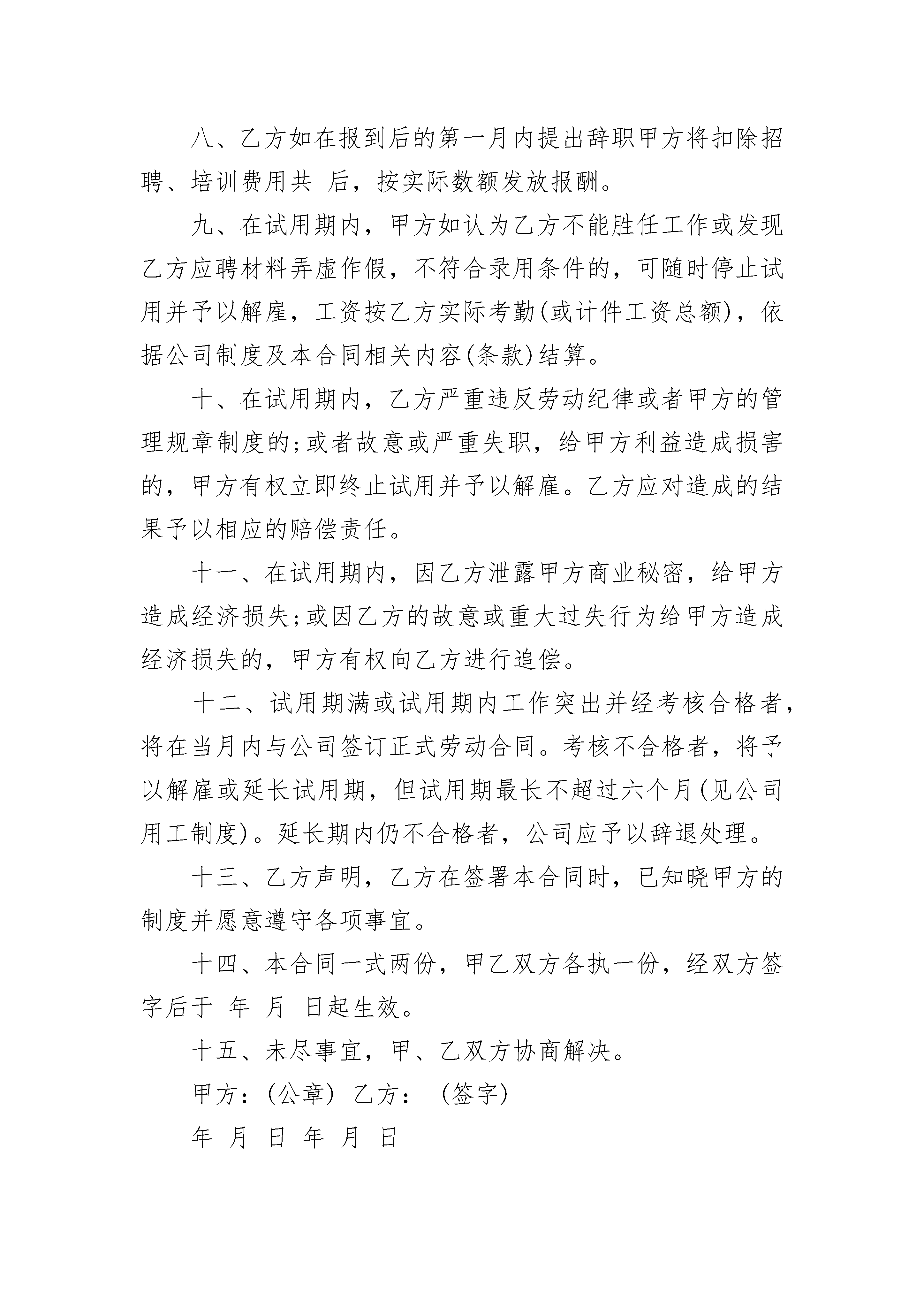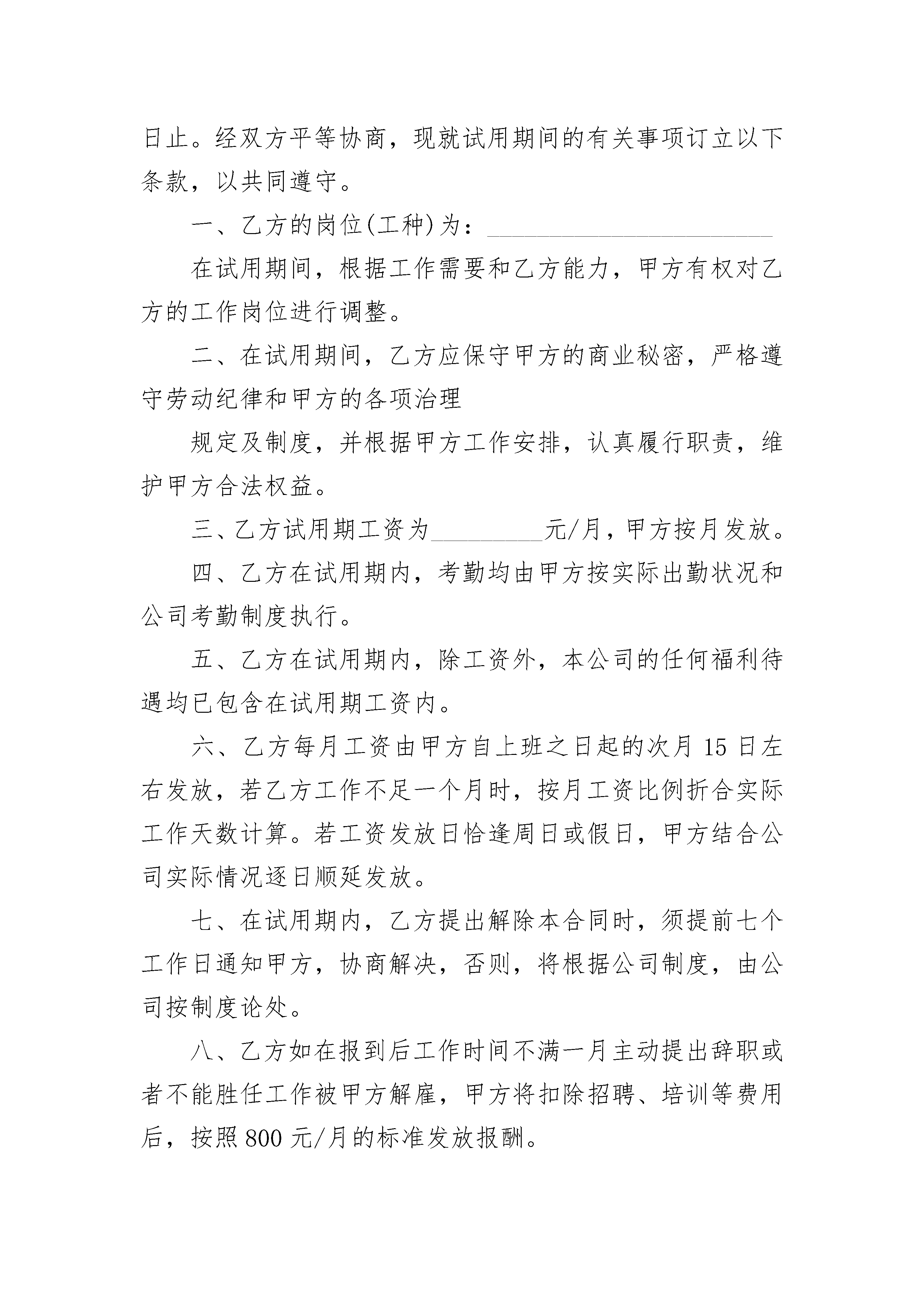 试用期员工劳动合同11篇-劳动合同试用期内辞退员工.docx