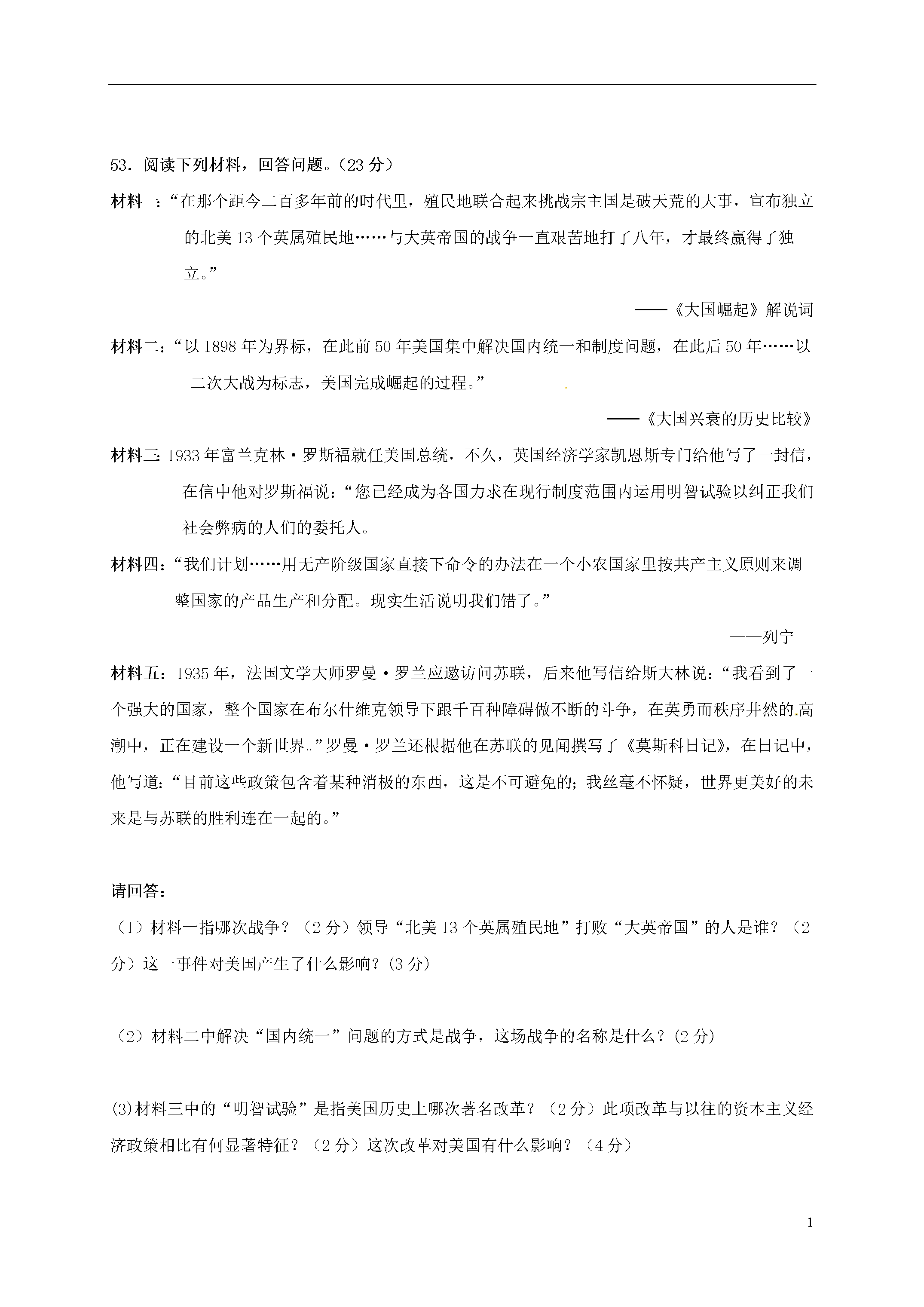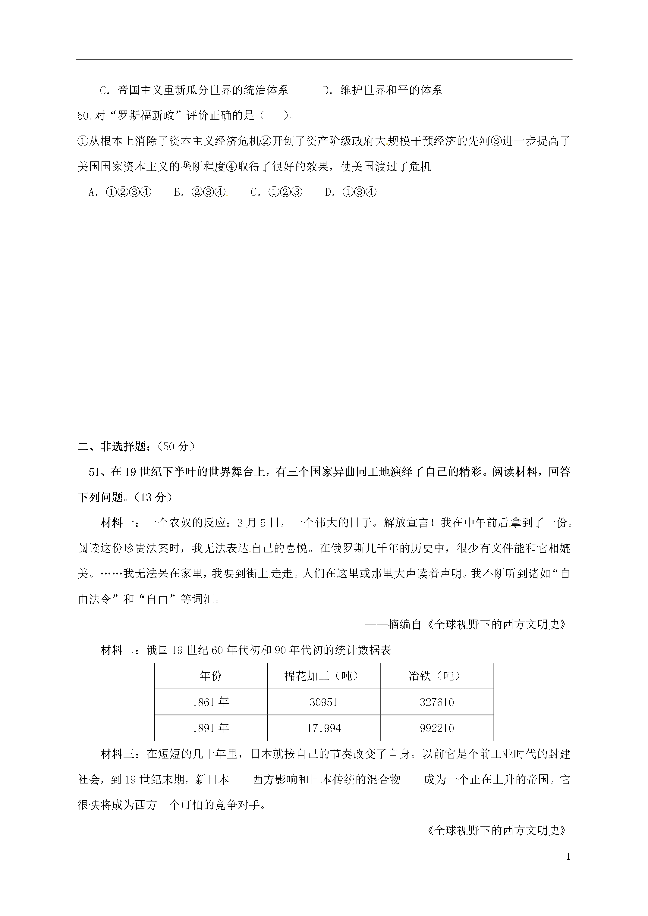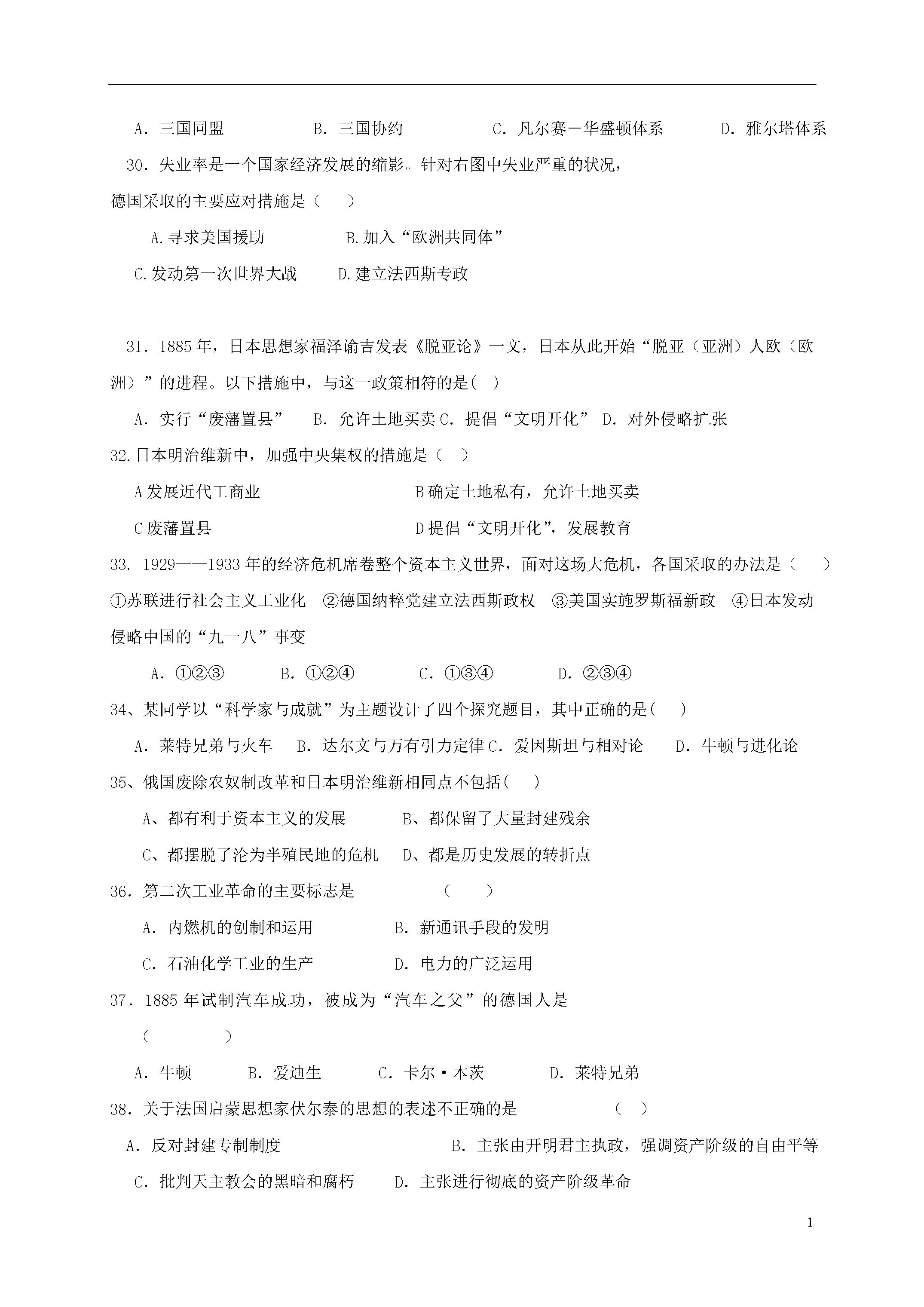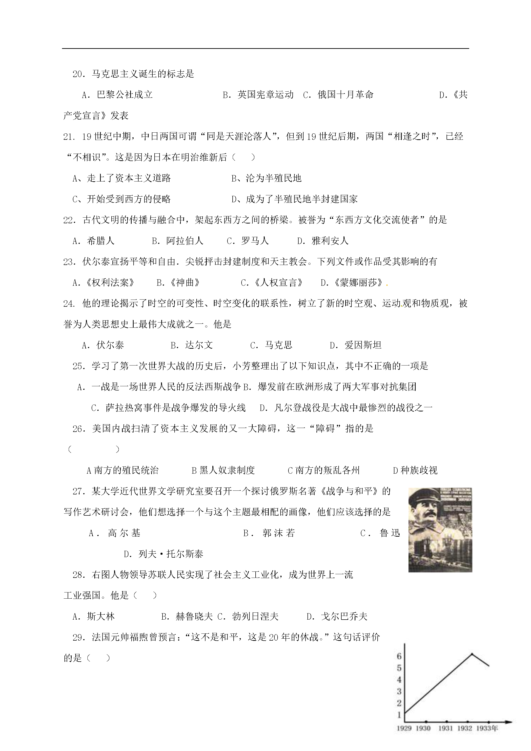 试题-山东-2016_山东省广饶县英才学校2017届九年级历史上学期期中试题(无答案) 鲁教版五四制.doc