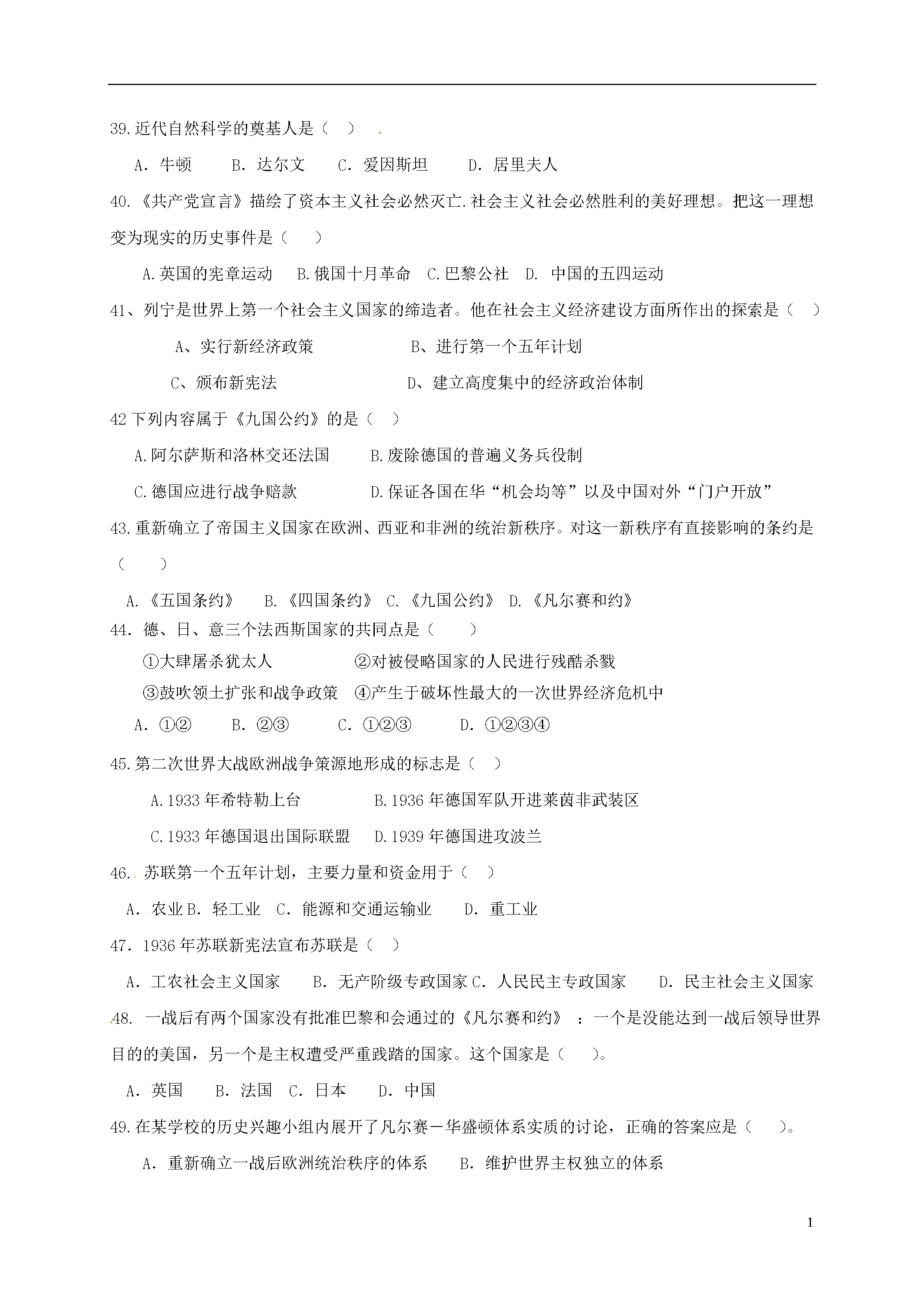 1英才学校2016—2017学年第一学期期中九年级历史检测题(考试时间:60分钟分值:100分)一、单项选择题(本大题共50小题,每小题1分,共50分。)下列关联不正确的是A、金字塔—最早文明古国B、汉谟拉比法典—古巴比伦C、刹帝利—商人D.母系氏族—只知其母不知其父2.这里是西方文明的发源地,也是奥林匹克运动的摇篮,这里是指:A、古埃及B、古希腊C、古巴比伦D、古罗马3.伊斯兰教历元年与下列哪个历史事件相关?A.穆罕默德出家隐修B.穆罕默德带领信徒出走麦地那C穆罕默德兵临麦加城下D.穆罕默德逝世。4